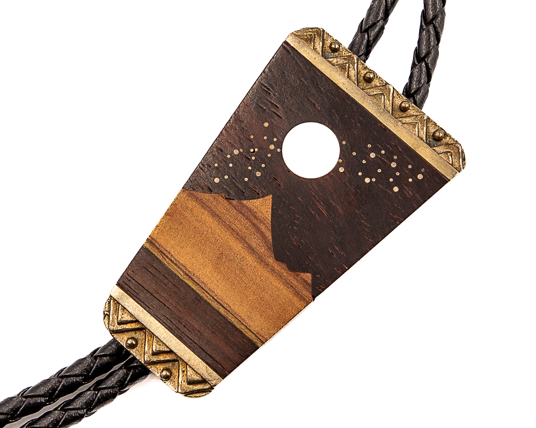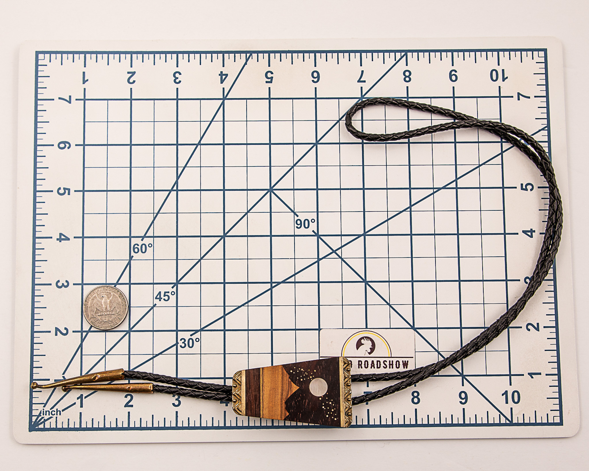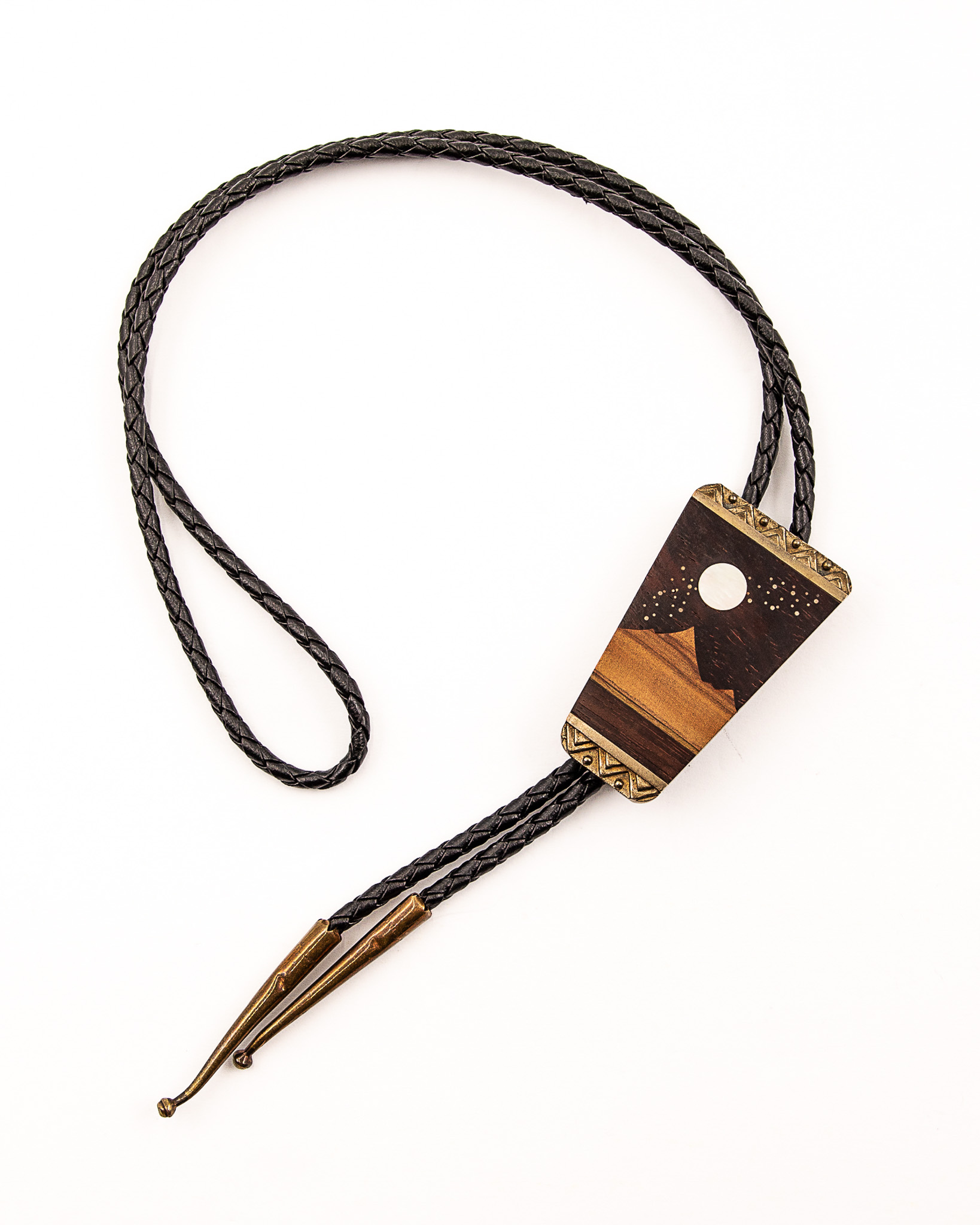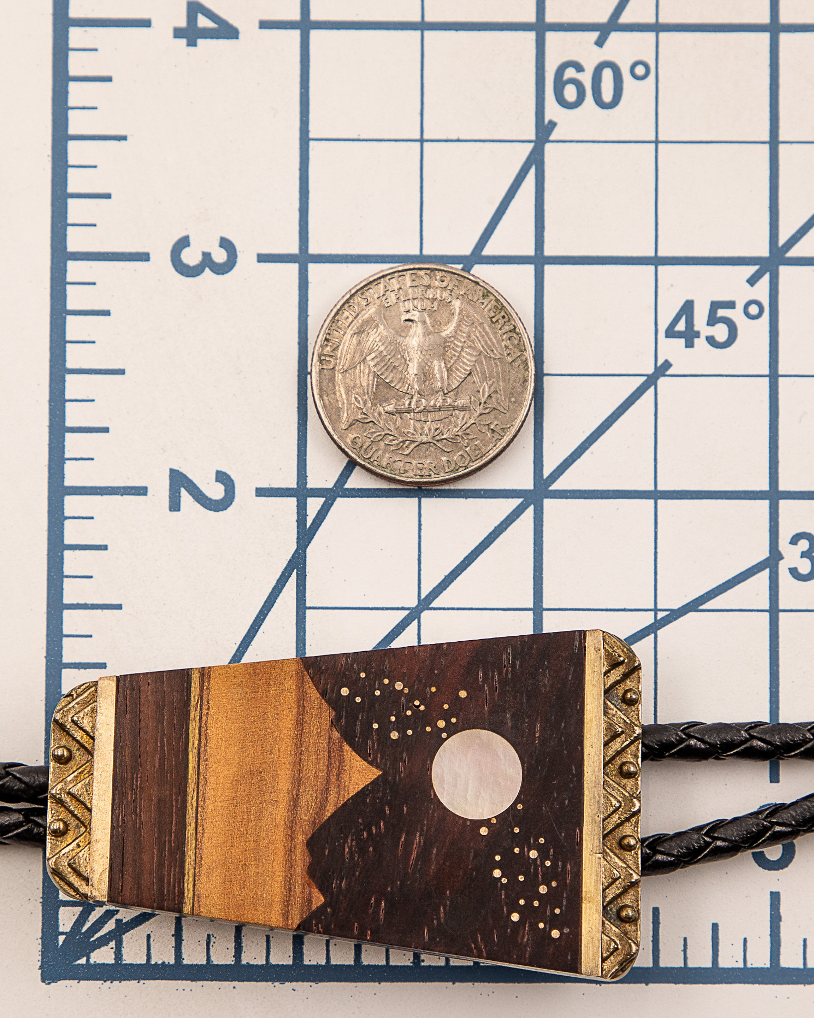 Southwest Mother Of Pearl Wood Inlay Bolo Tie -Mixed Metal