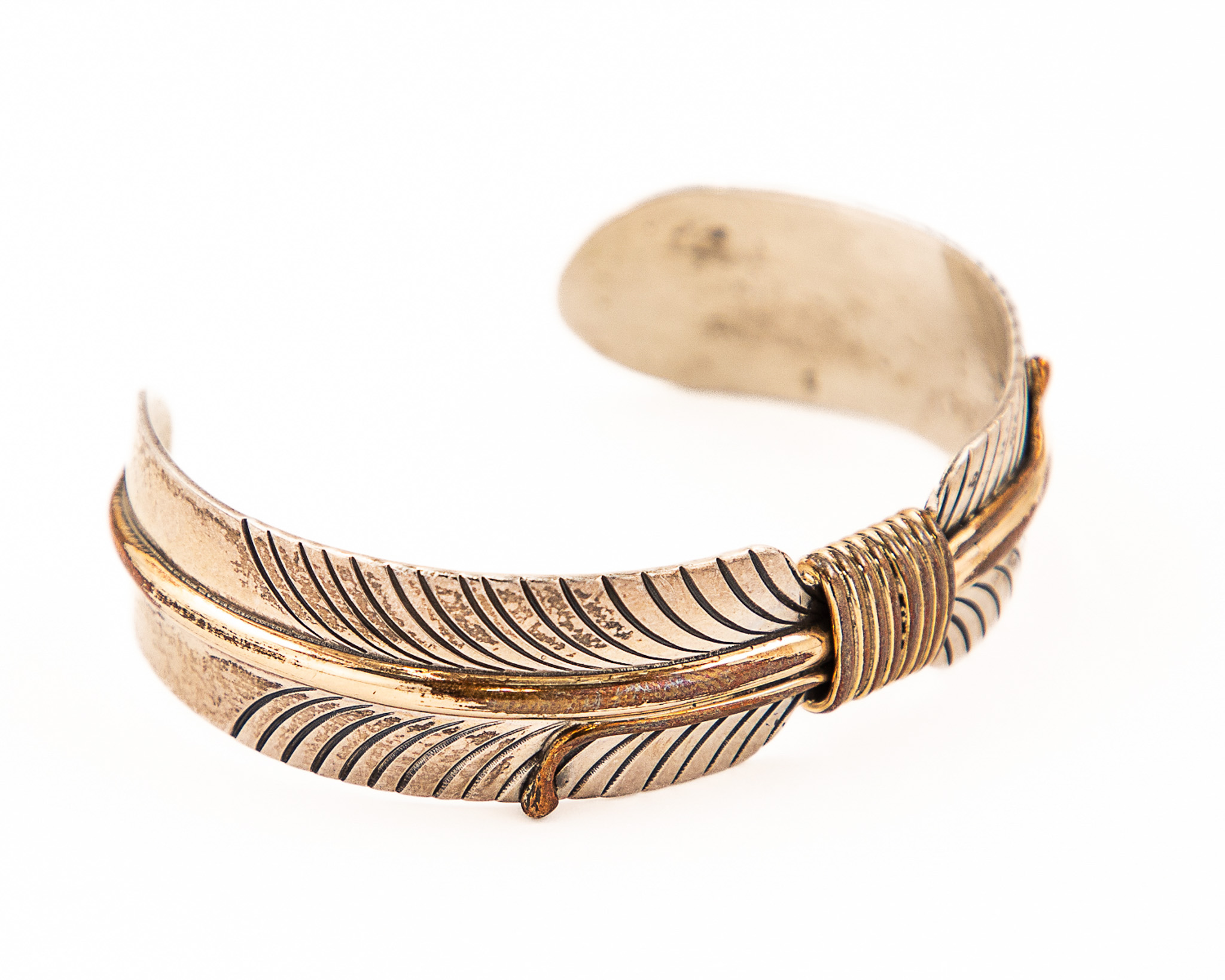 Lee Bennet 12K Gold Fill Sterling Feather Cuff Bracelet 30.5g