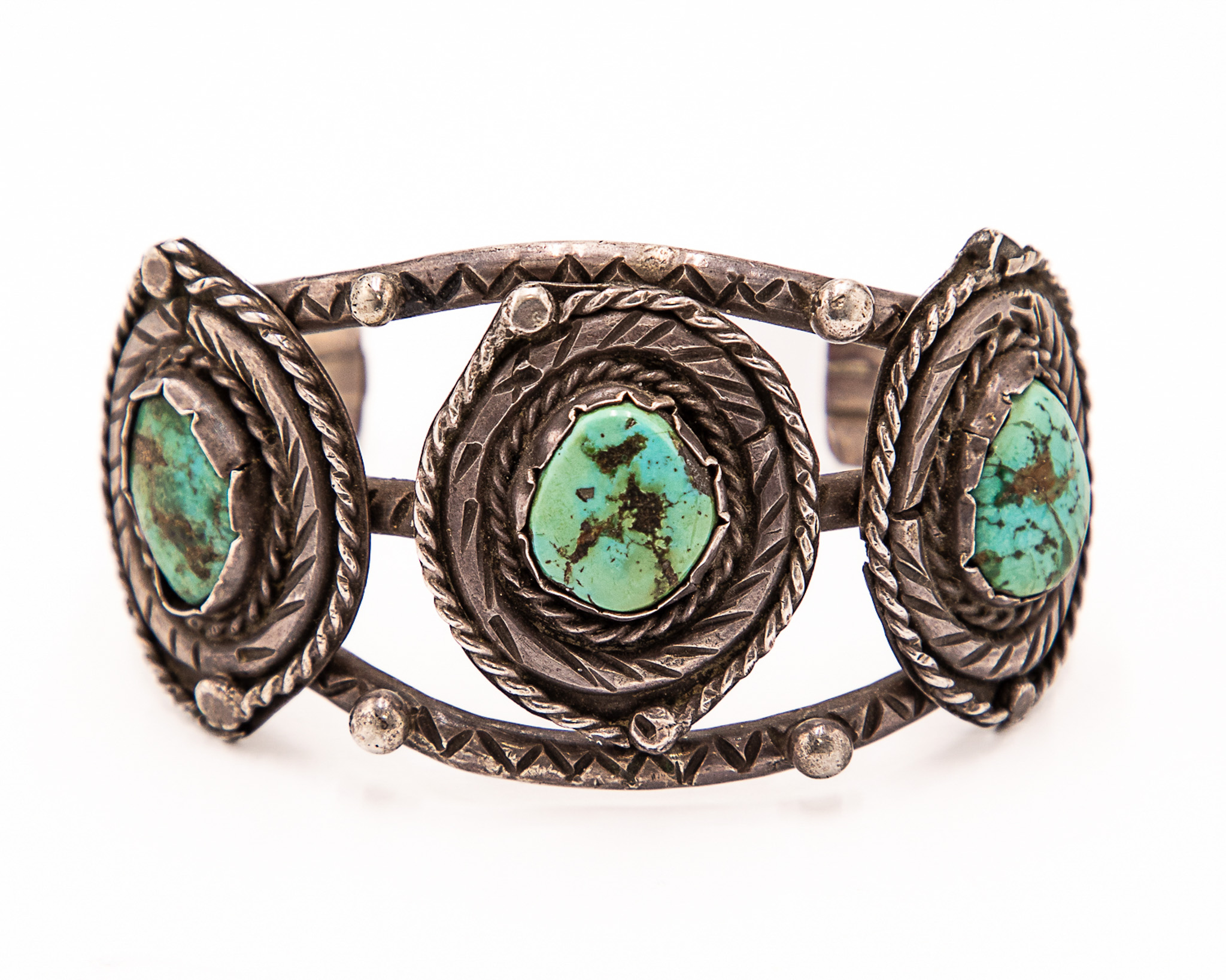 Vintage Navajo Sterling Turquoise Cuff Bracelet As Is