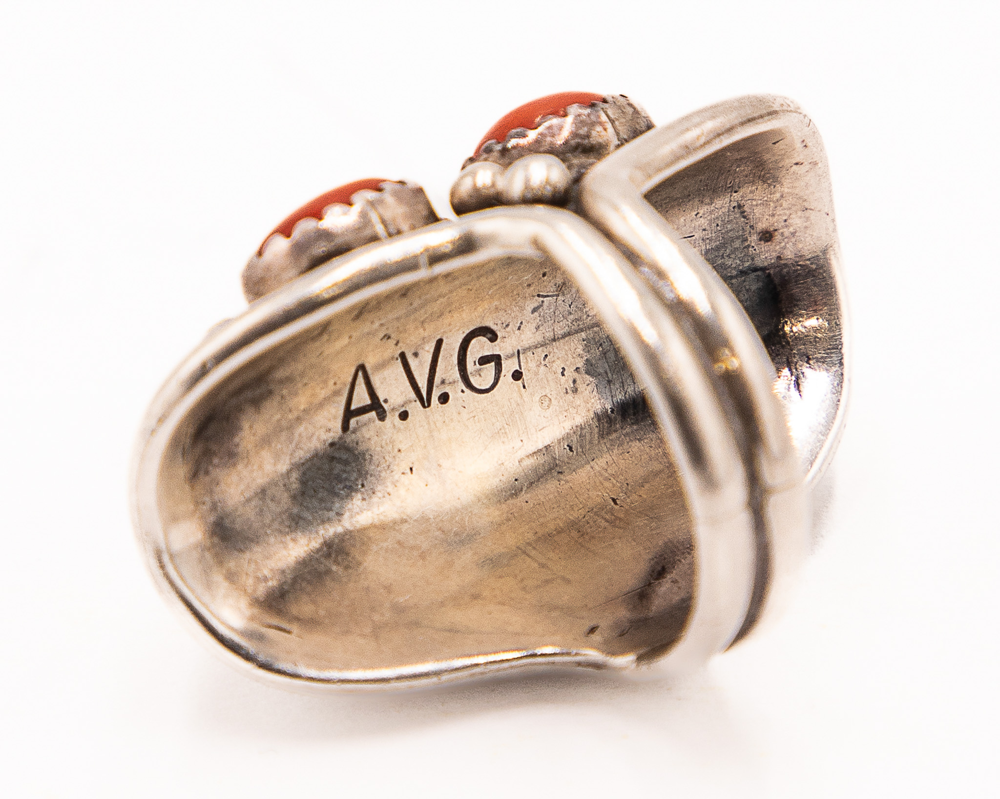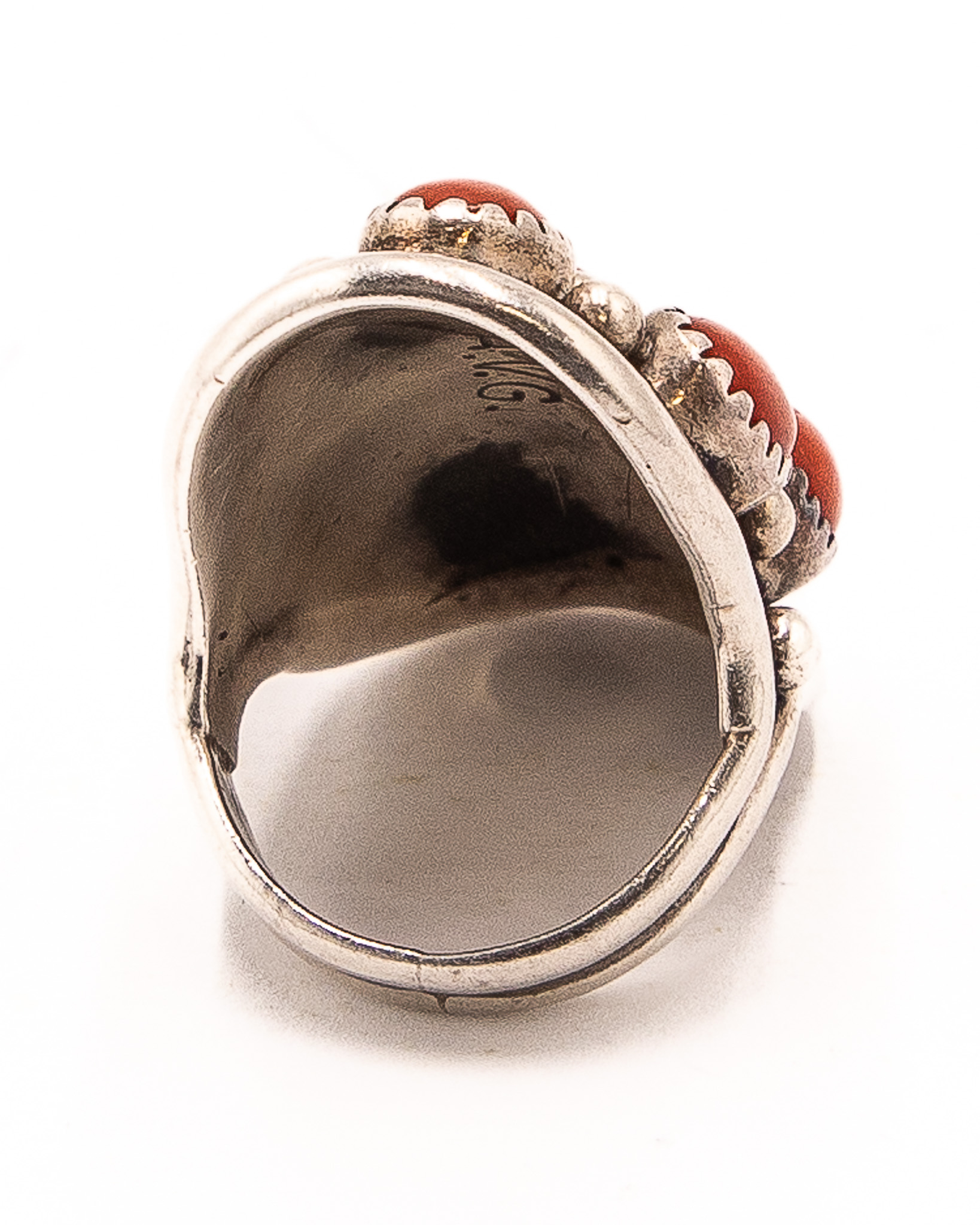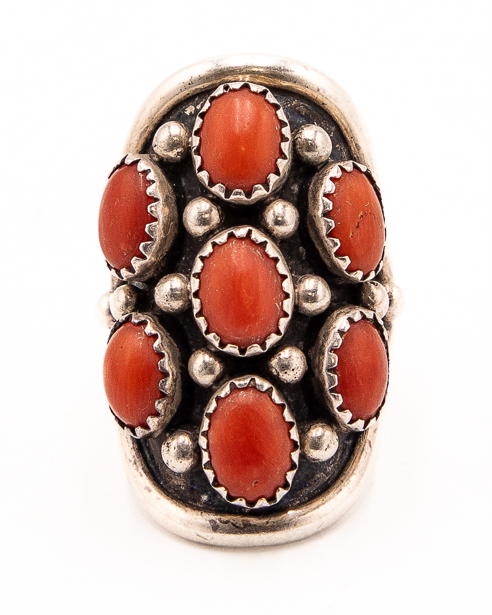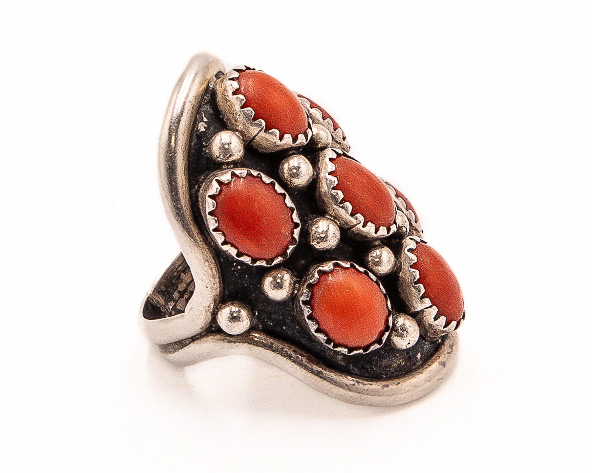 Signed AVG Sterling Red Coral Cluster RIng Sz. 6.75, 12.5g