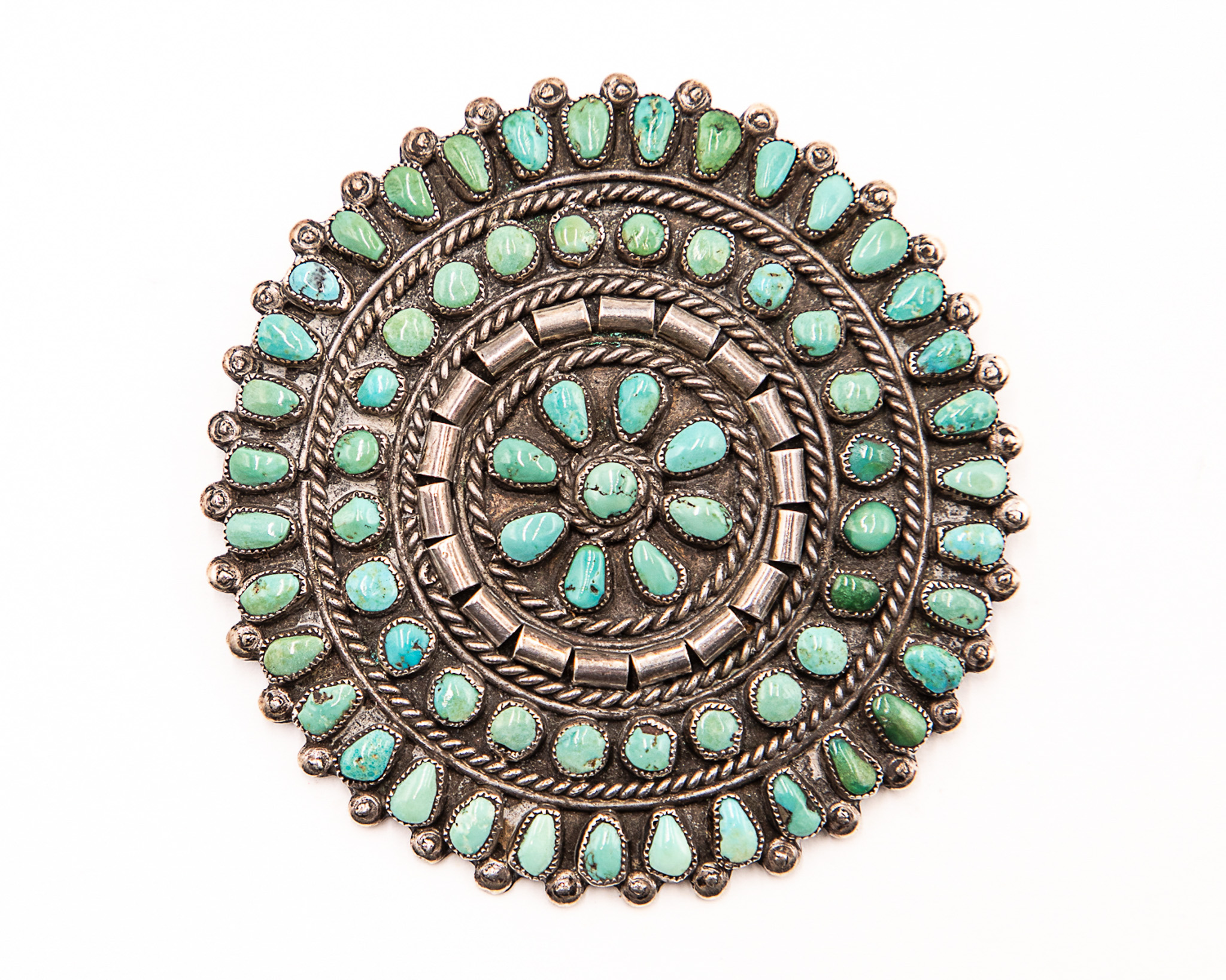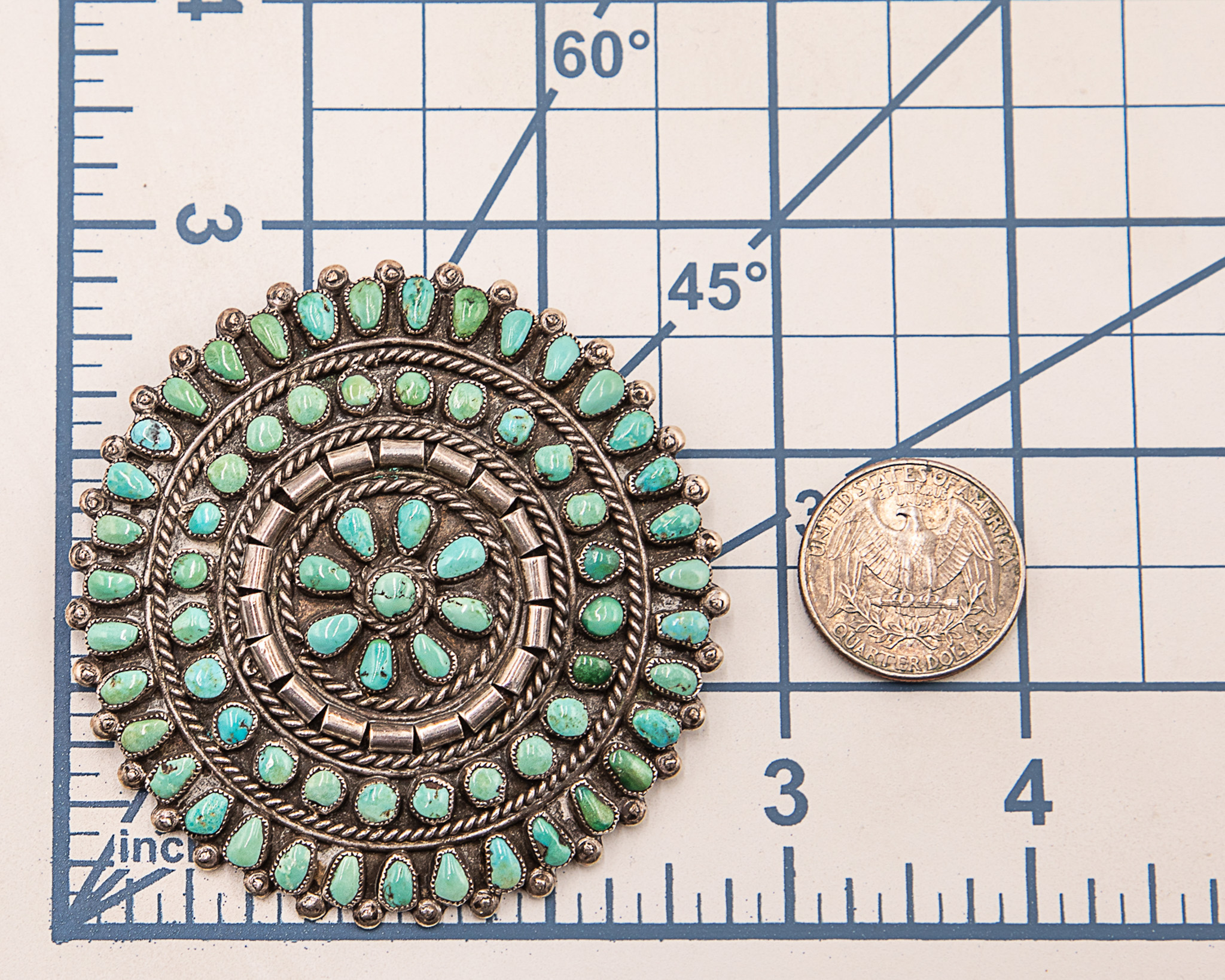 Vintage Navajo Cluster Round Turquoise Sterling Brooch Pin 37g