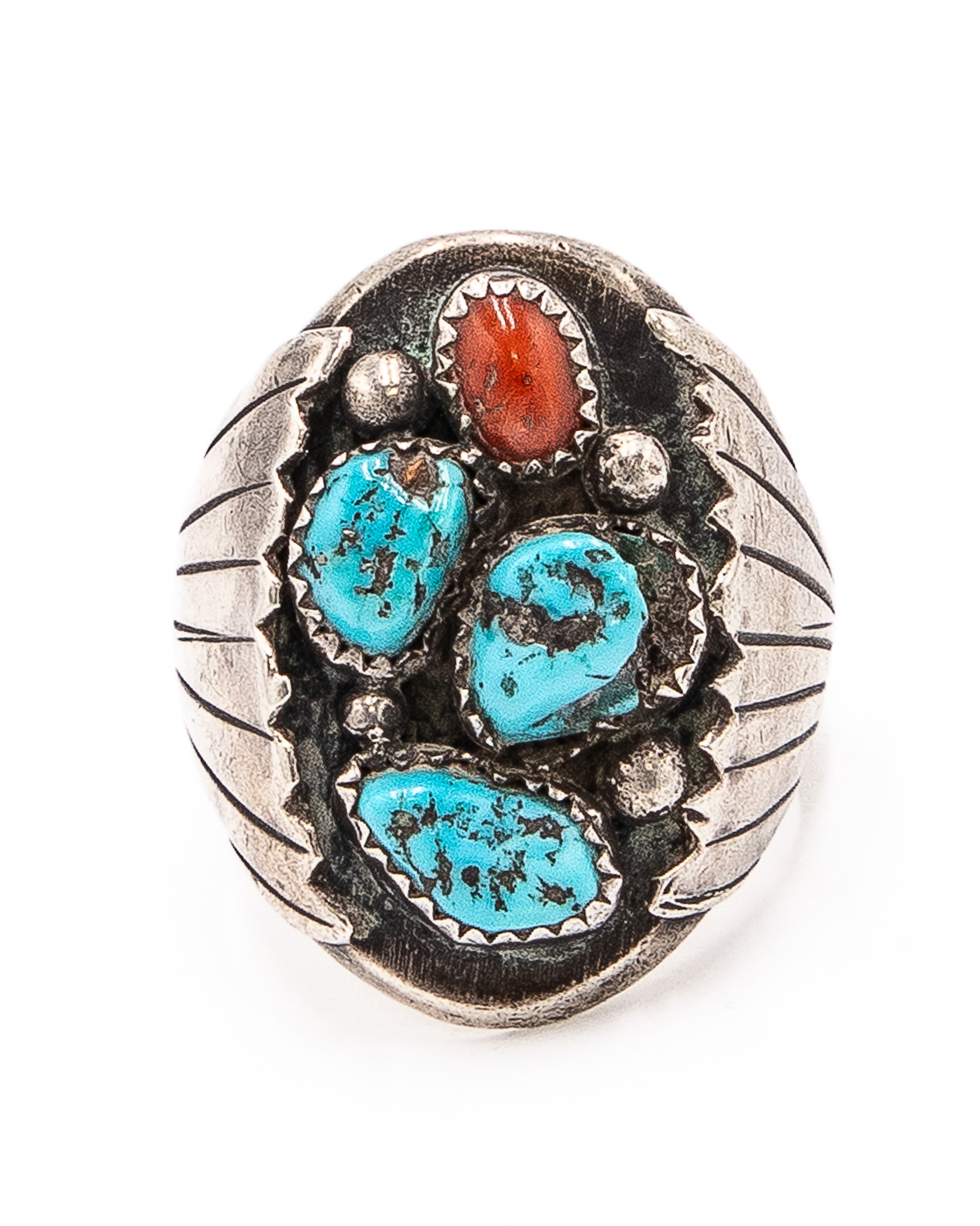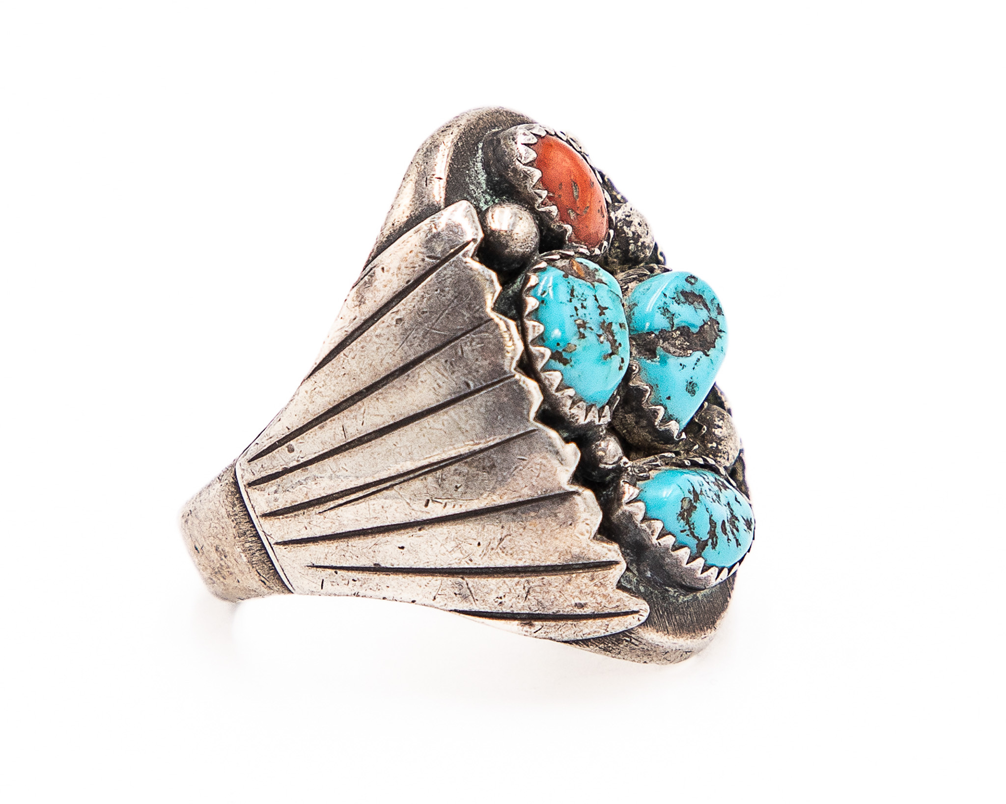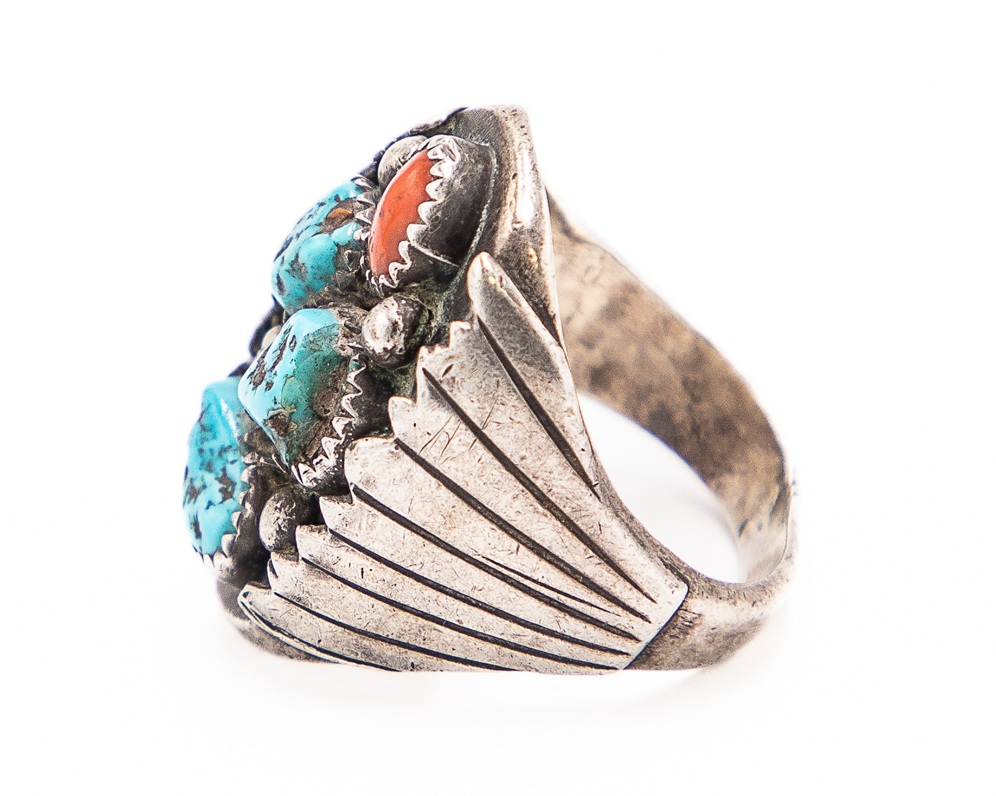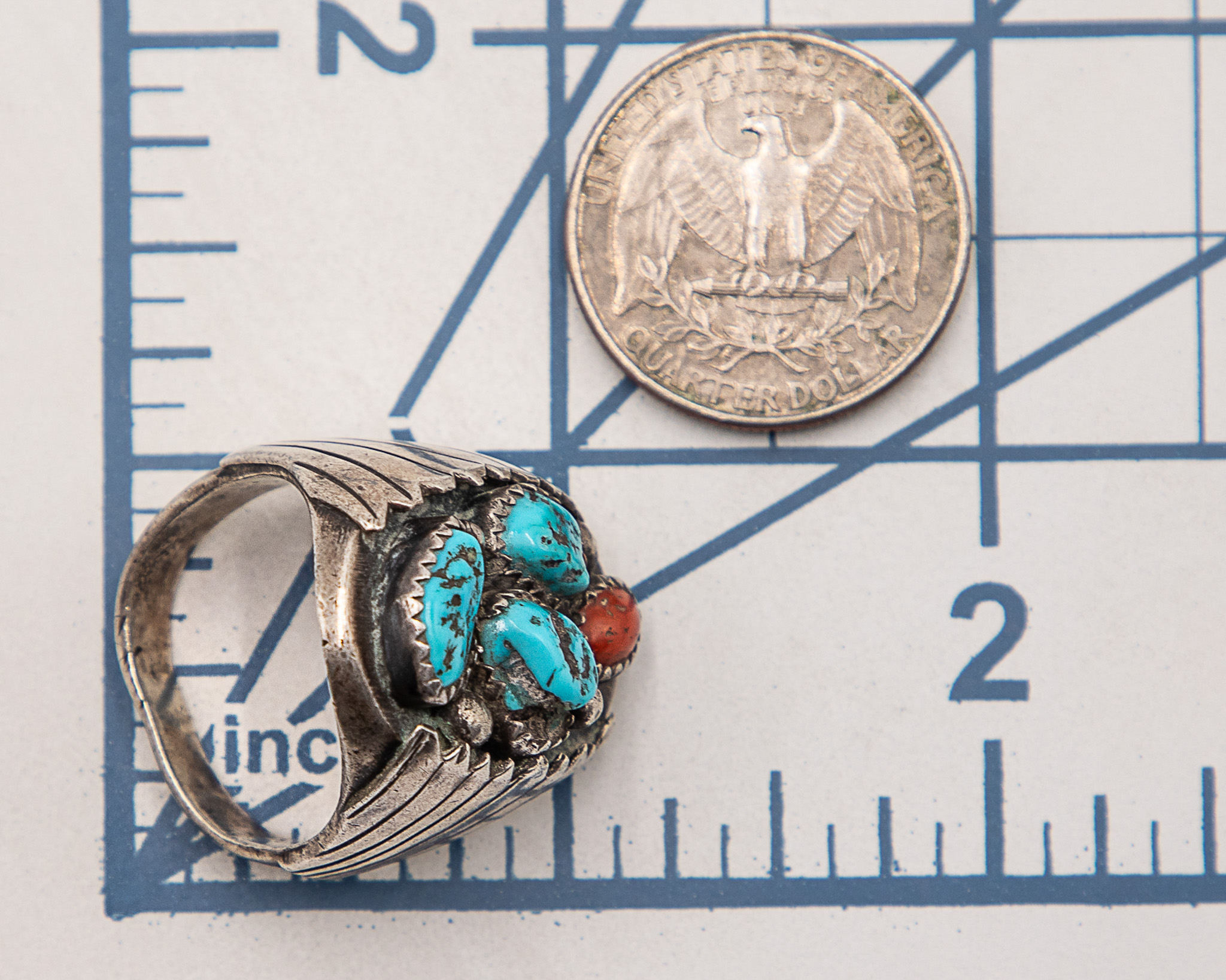 Vintage Navajo Sterling Turquoise Coral Stone Ring Sz. 12 As Is 26g