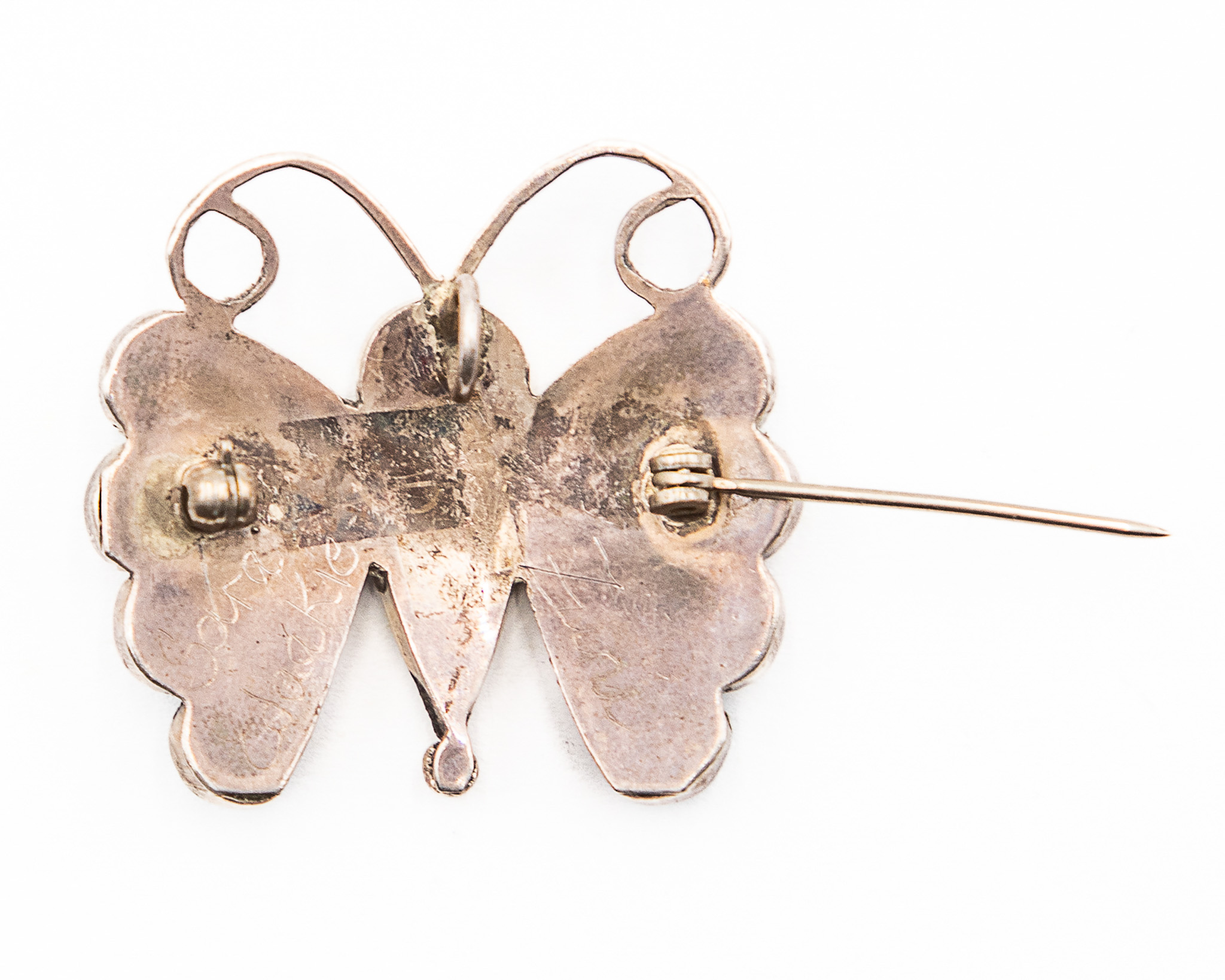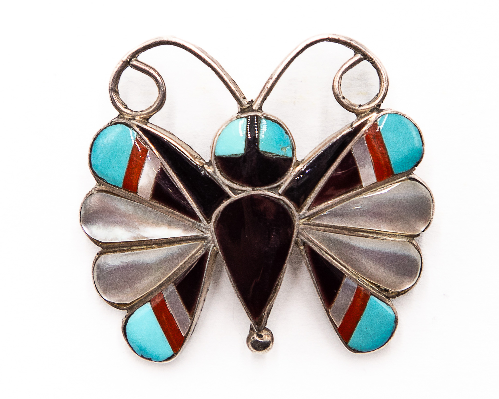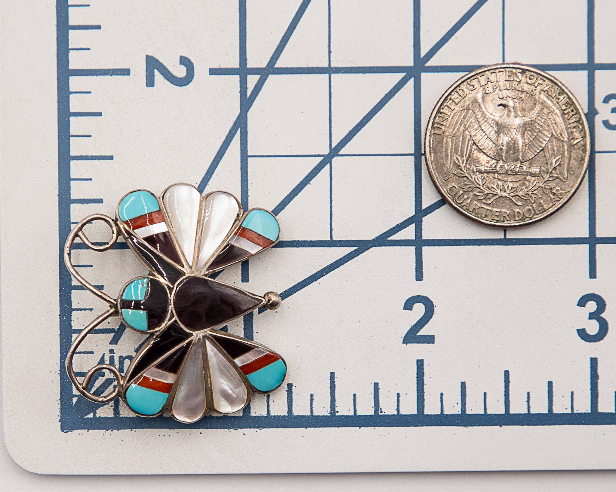 Sara Edaakie Zuni Multi Stone Inlay Butterfly Brooch Pin 8g-Jet, mother of pearl, spiny oyster, turquoise