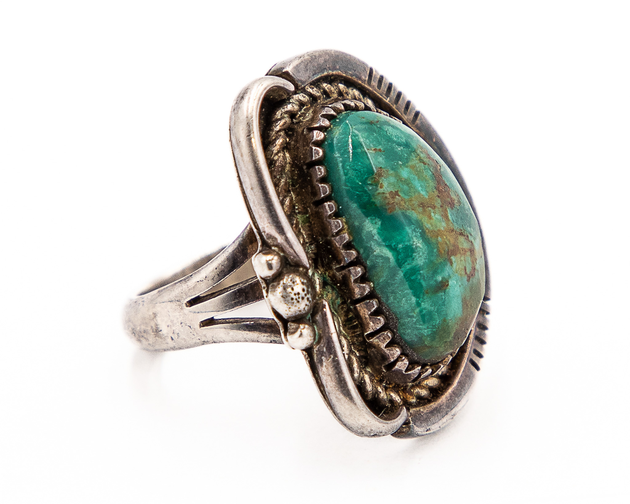 C. Draper Navajo SterlingGreen Tinted Turquoise Ring Sz. 7.5, 13g