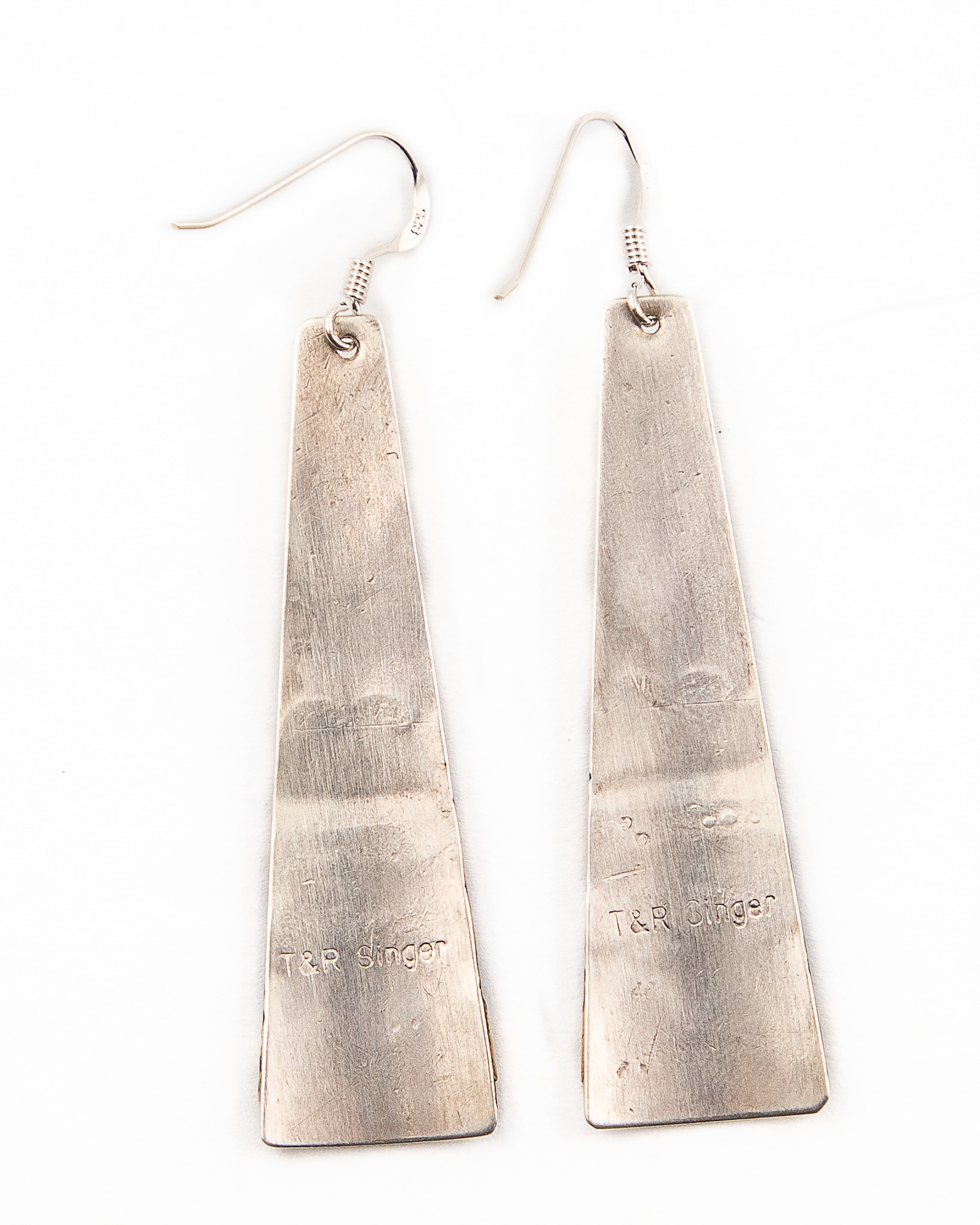 T&R Singer Navajo Sterling Overlay Turquoise Earrings 8g