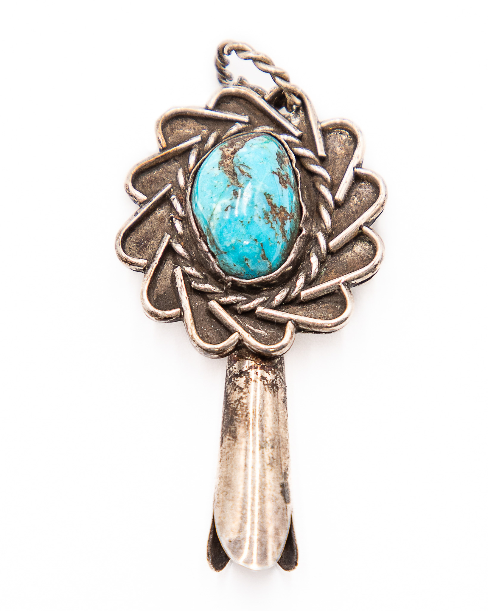 Vintage Navajo Turquoise Squash Blossom Pendant 9g