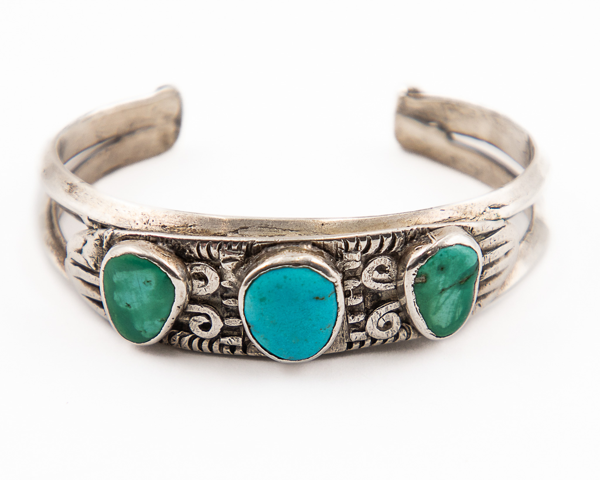 Vintage Navajo Sterling Green Blue Turquoise Cuff Bracelet 36g