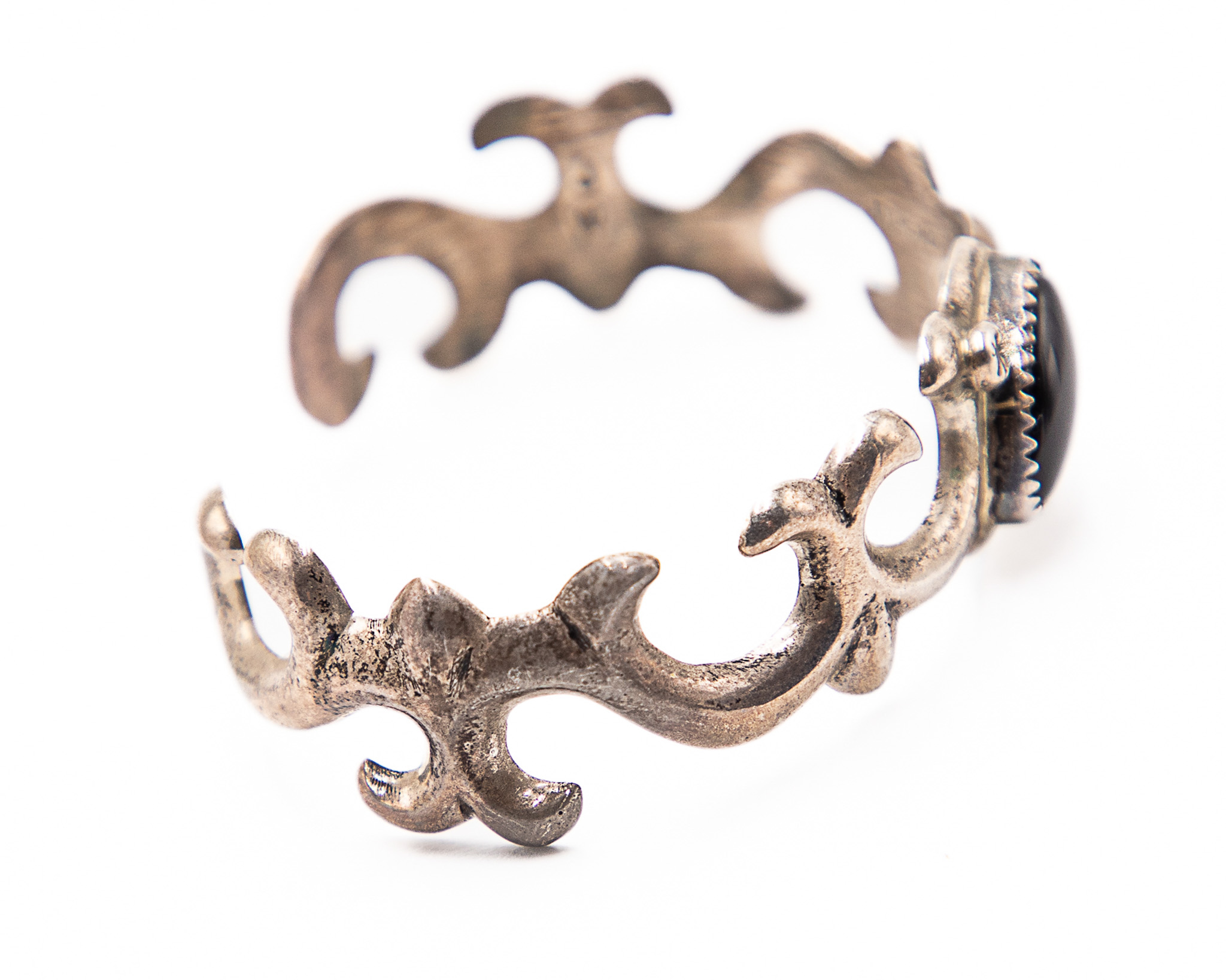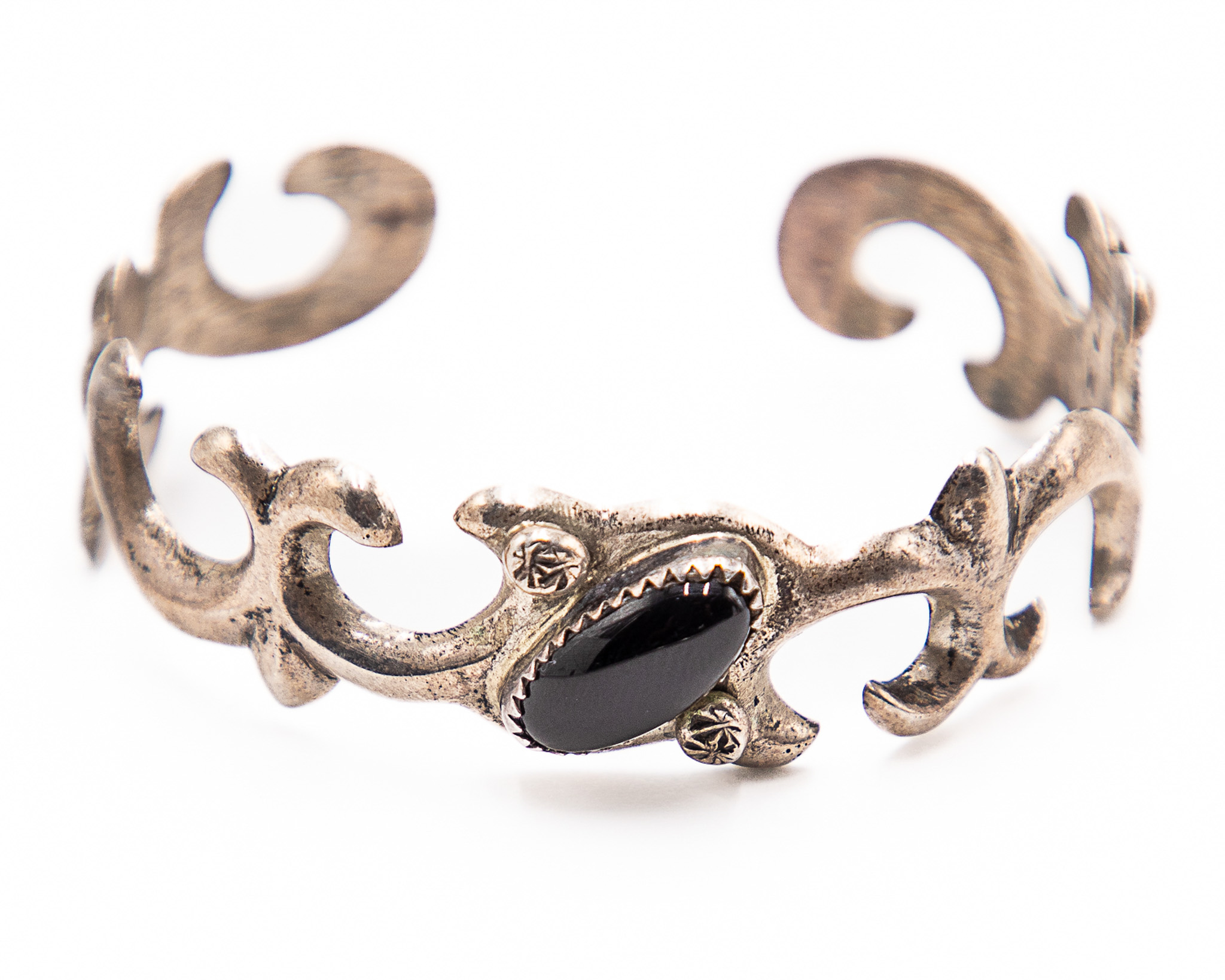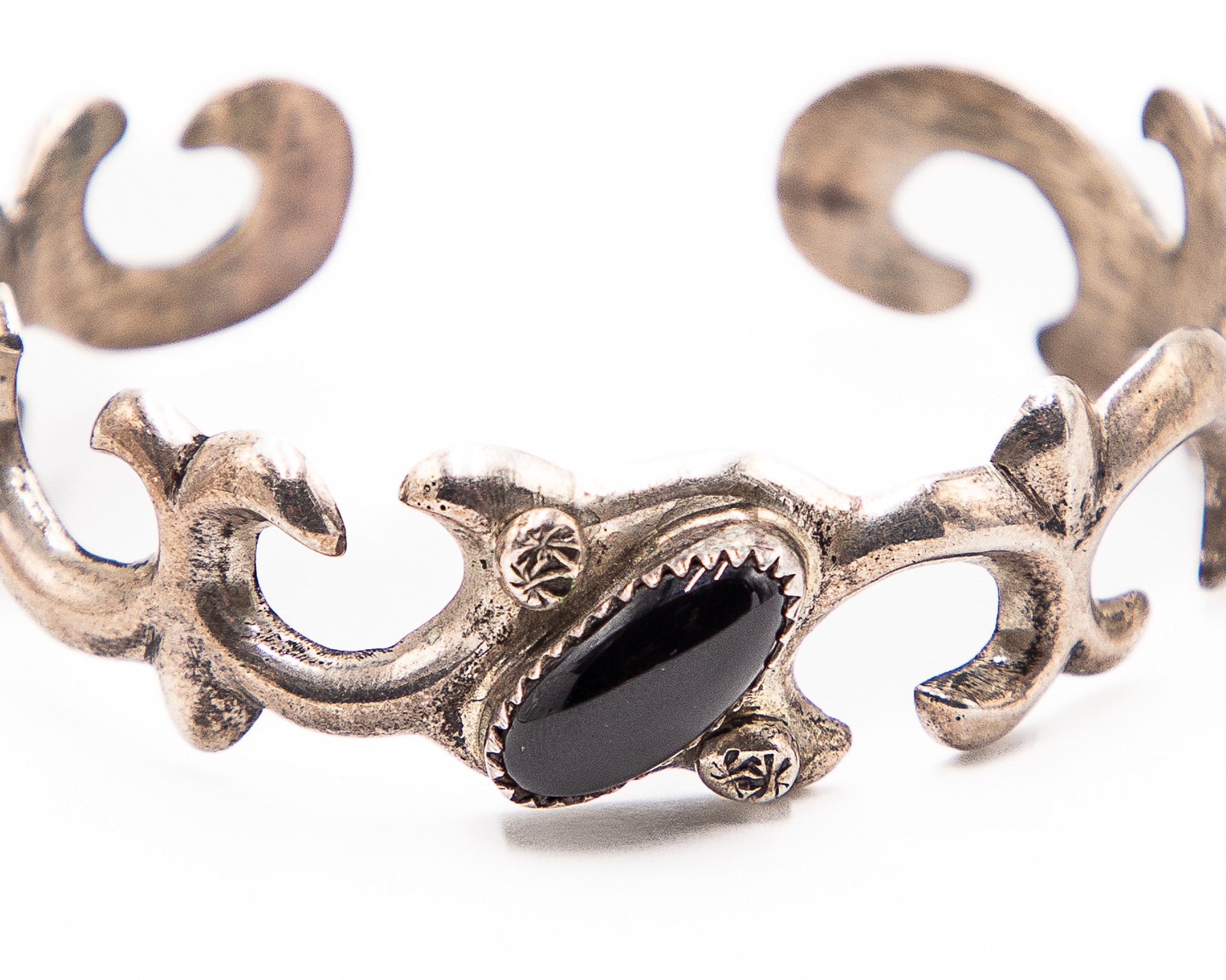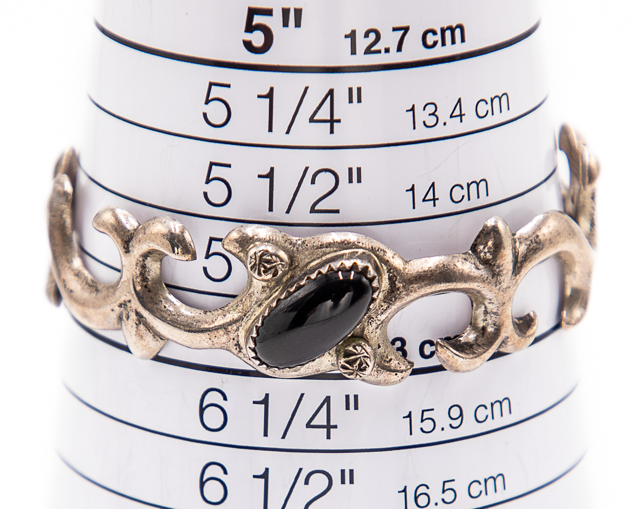 Signed JW Sterling Sandcast Onyx Stone Bracelet 26.5g