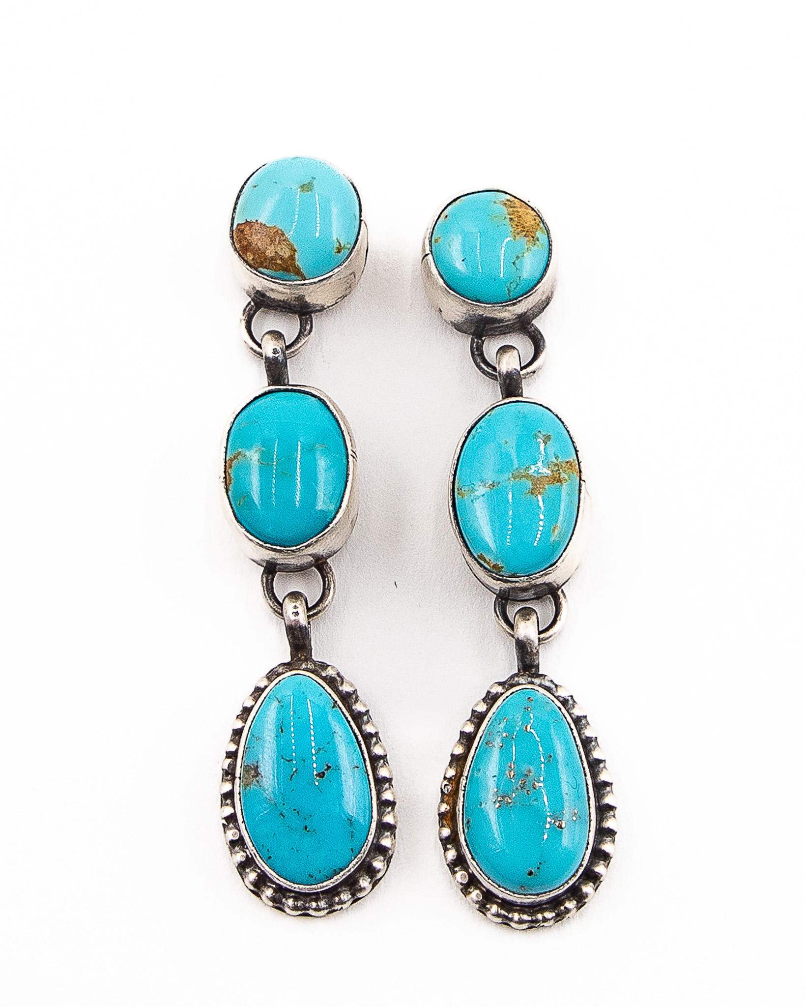 Signed T Zuni Sterling Turquoise Earrings 15g