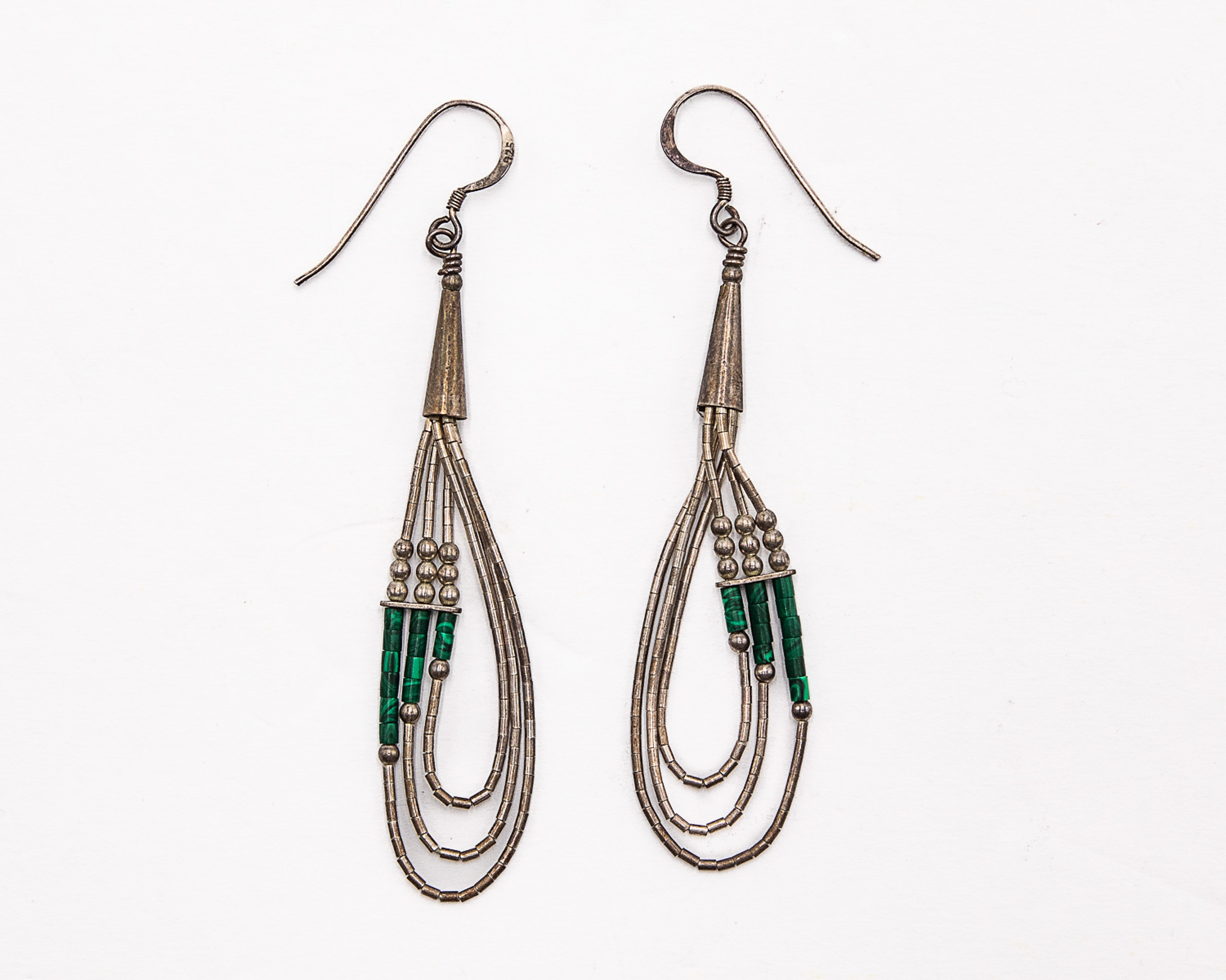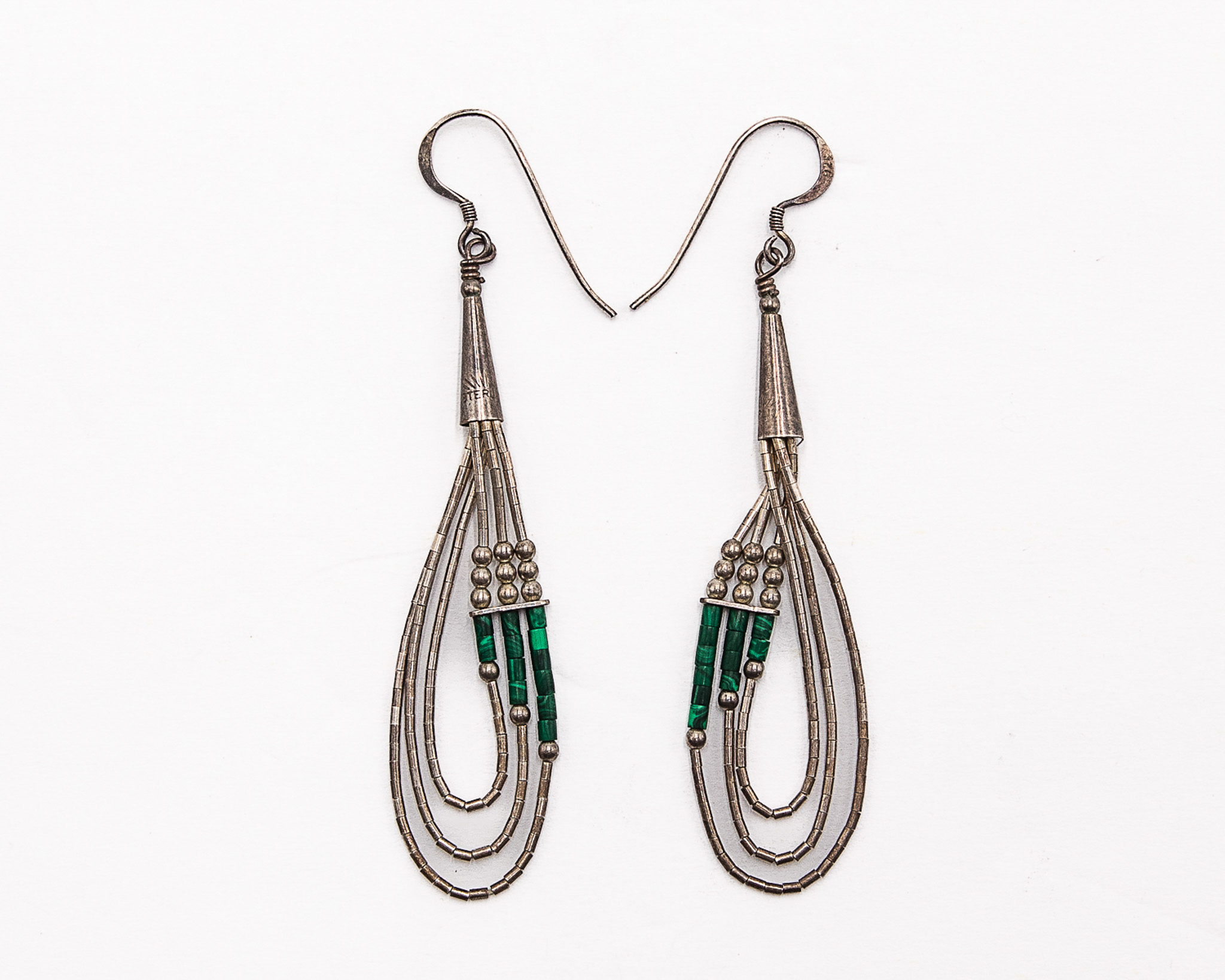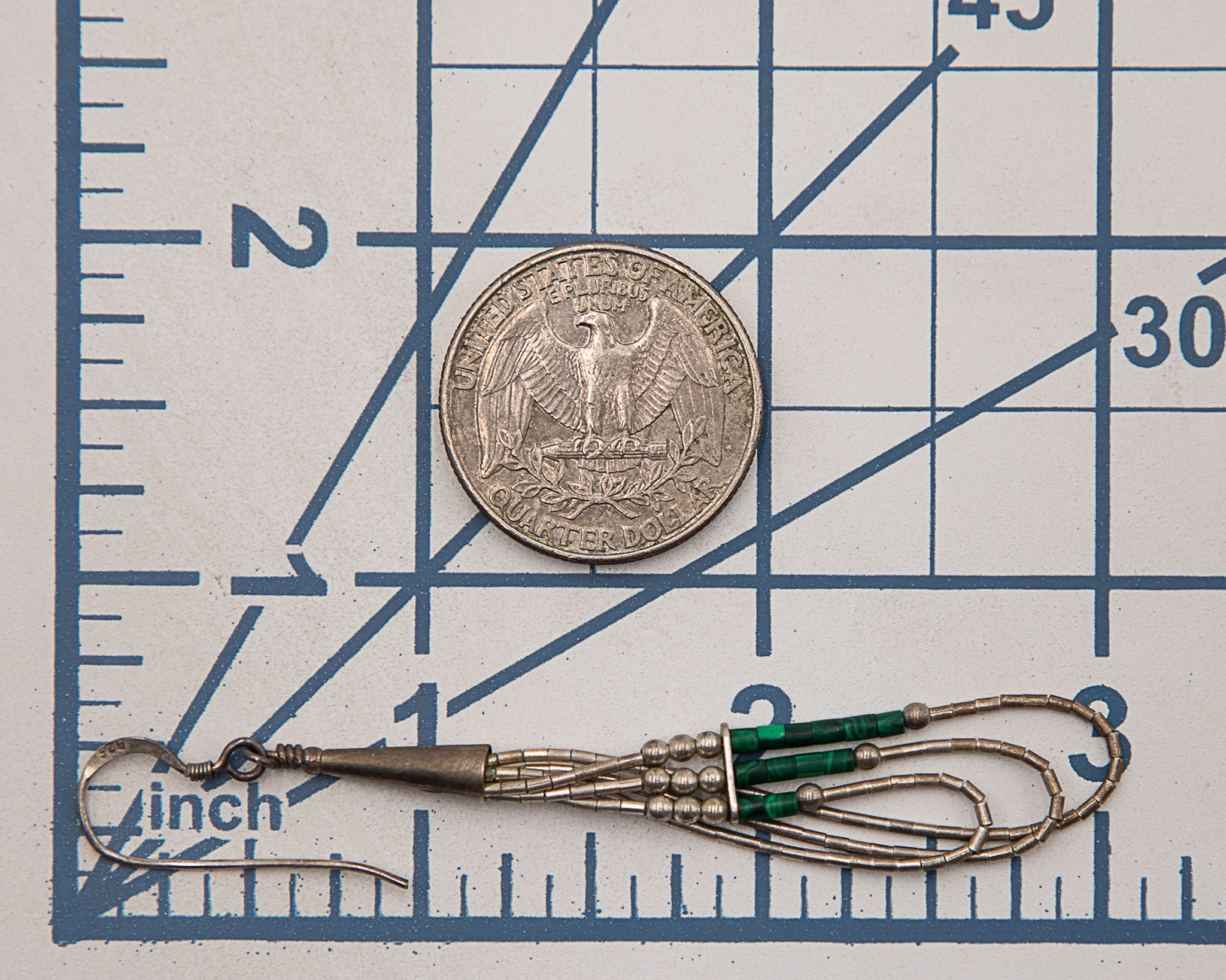 Signed Zuni Sterling Malachite Liquid Silver Hook Earrings 4g-Pictograph signature