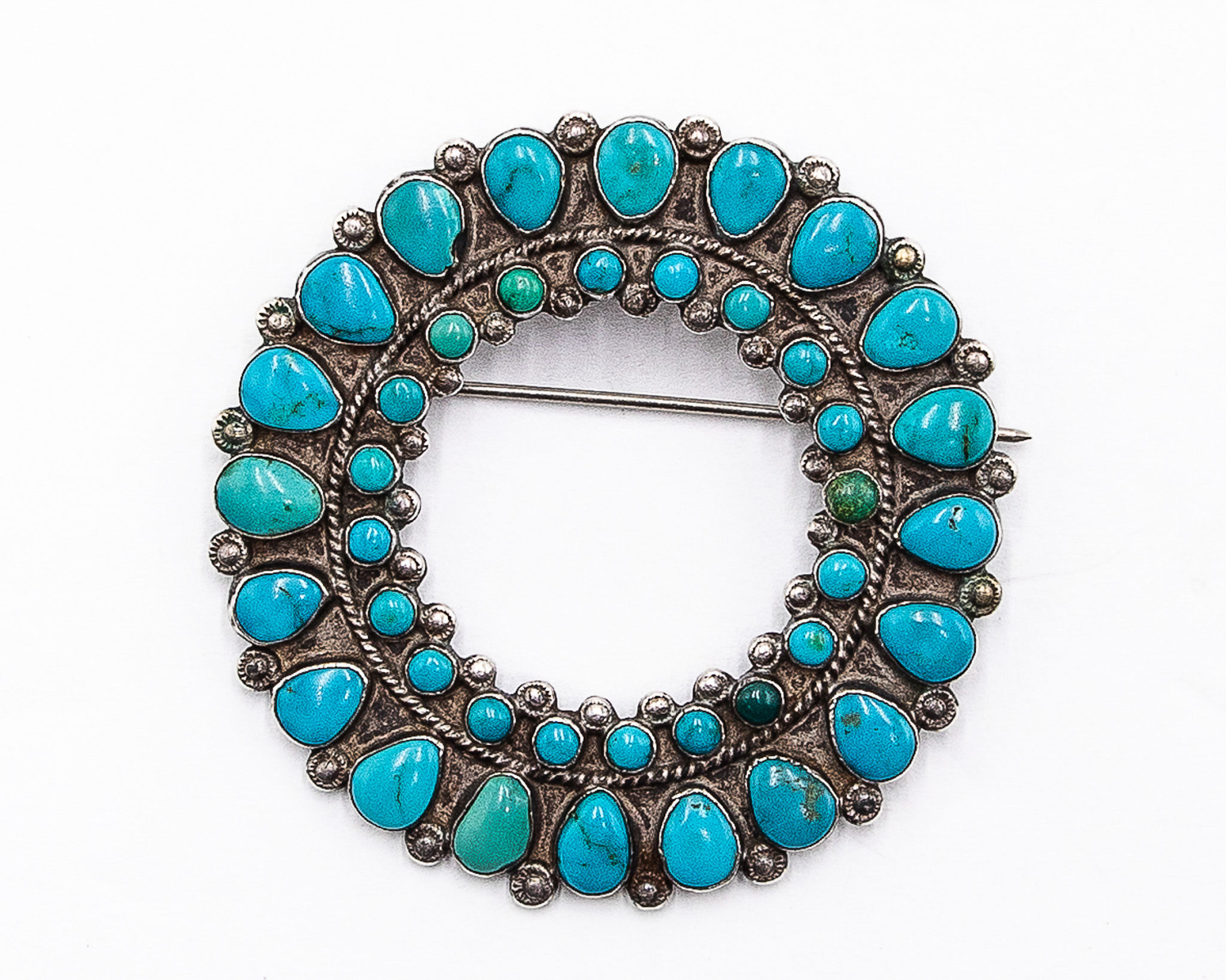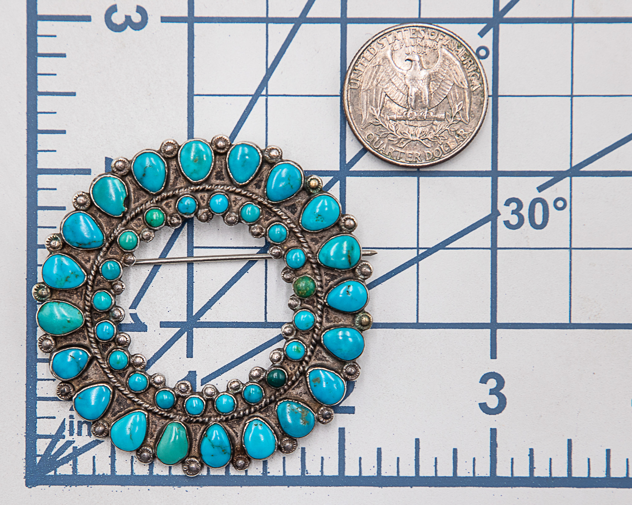 Vintage Navajo Sterling Turquoise Cluster Brooch Pin 21.5g-Chip in stone may be from when created