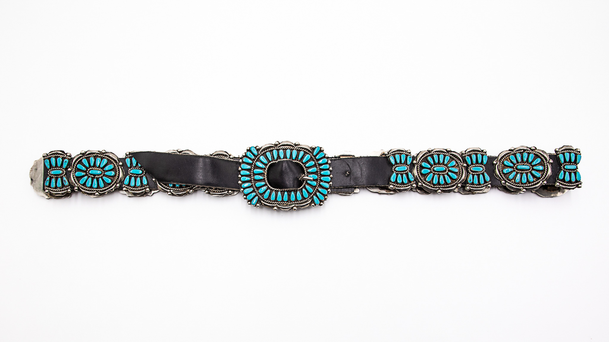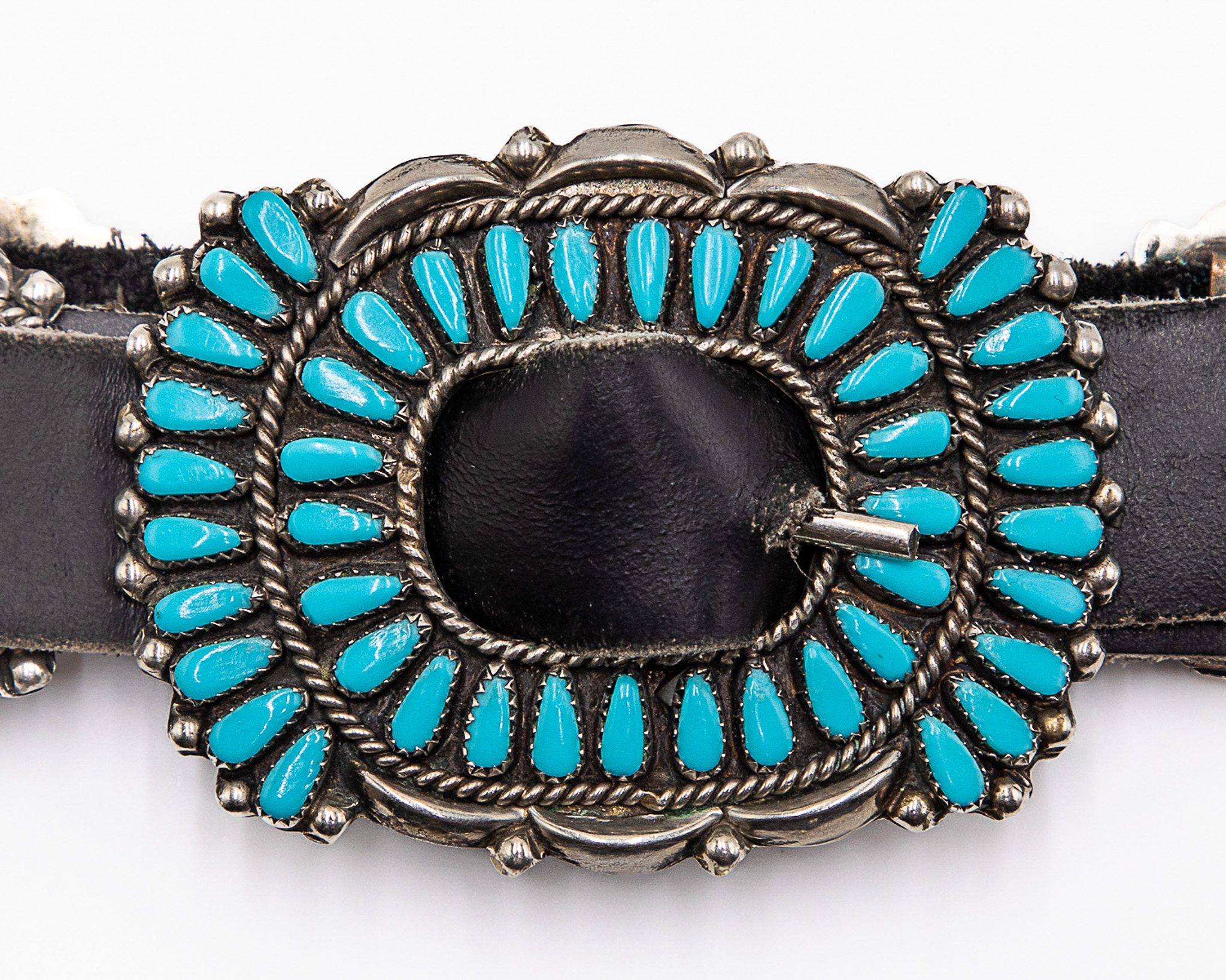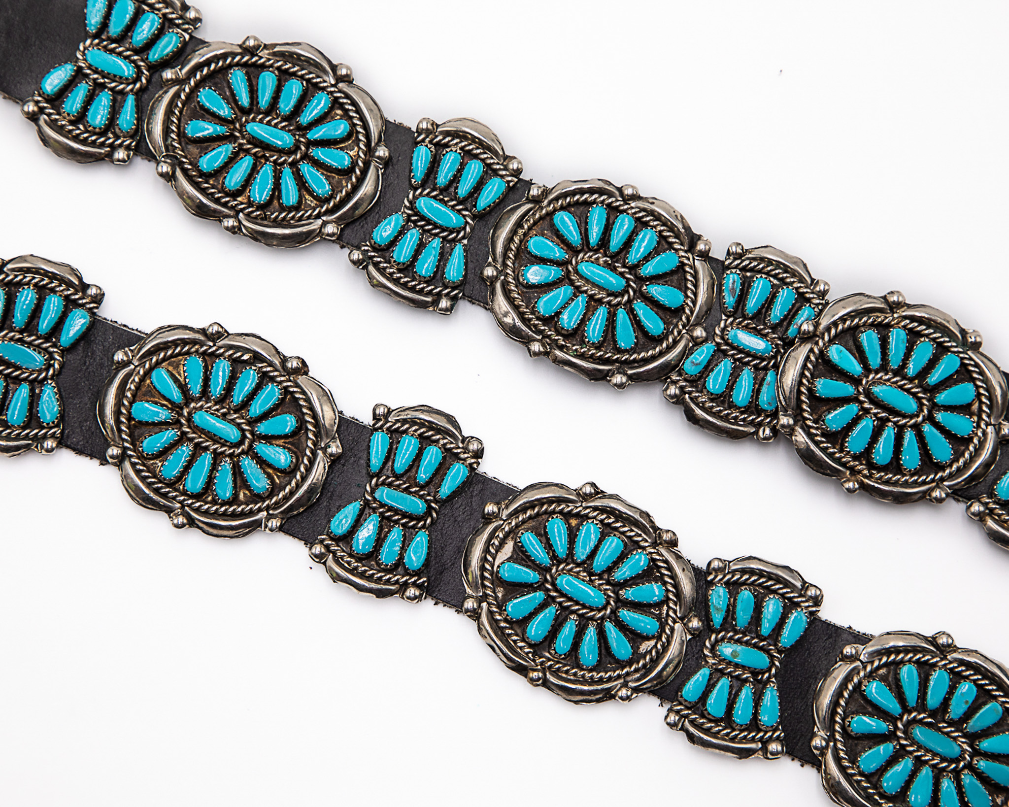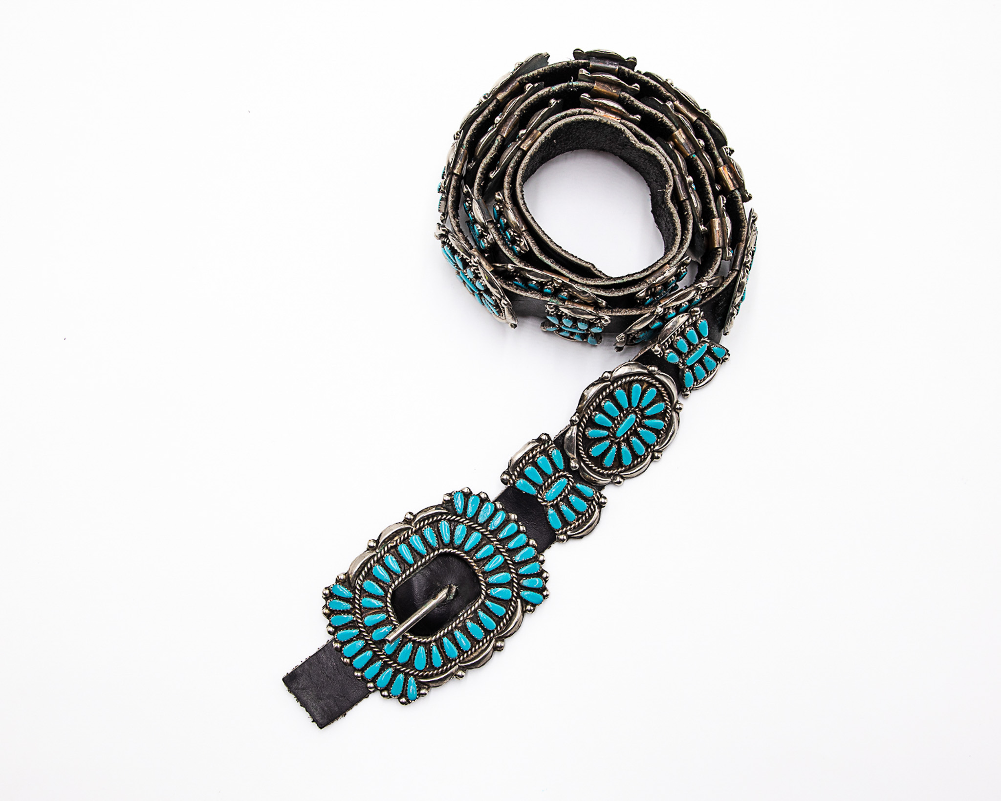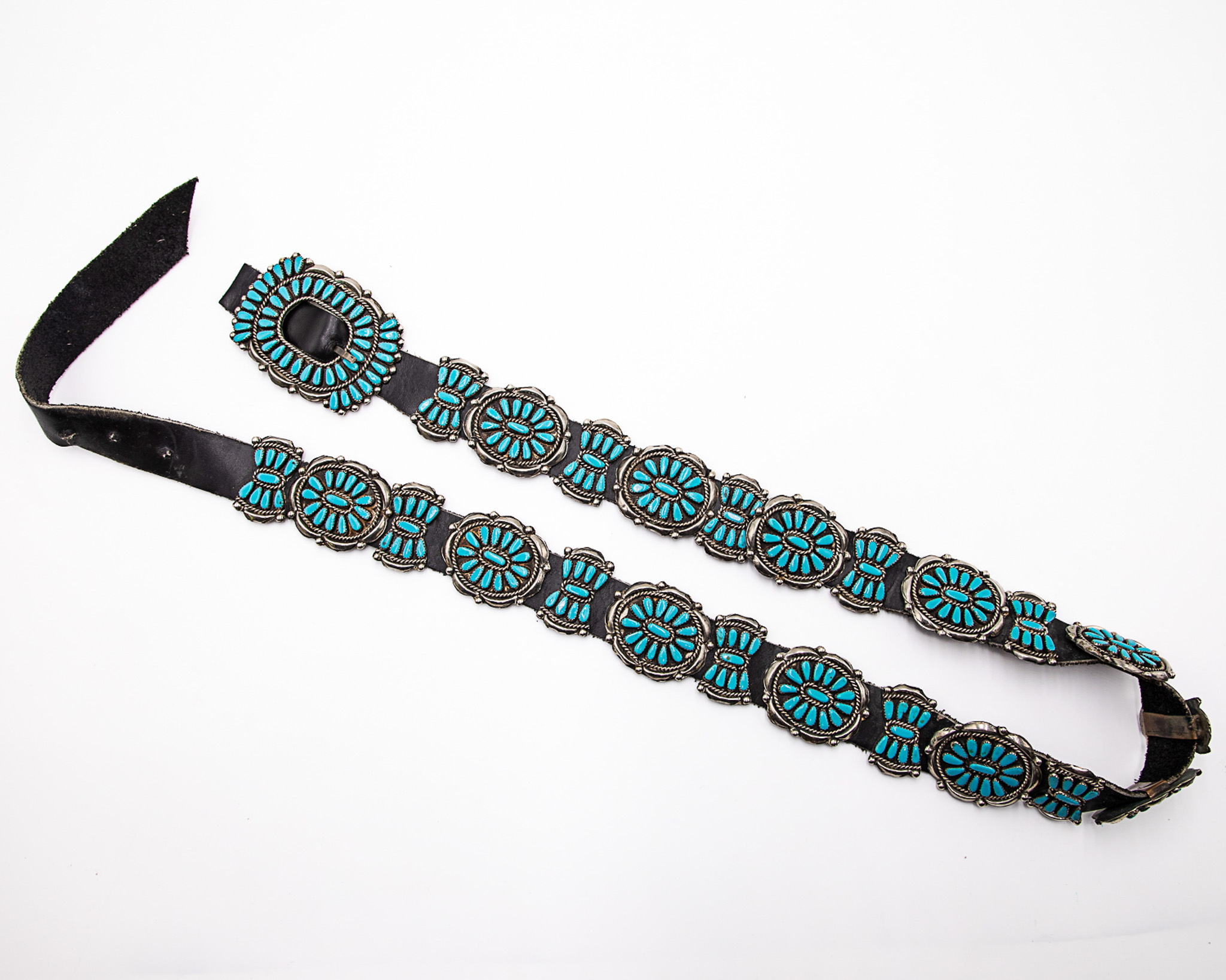 Vintage Zuni Petit Point Oval Turquoise Custer Belt 364g