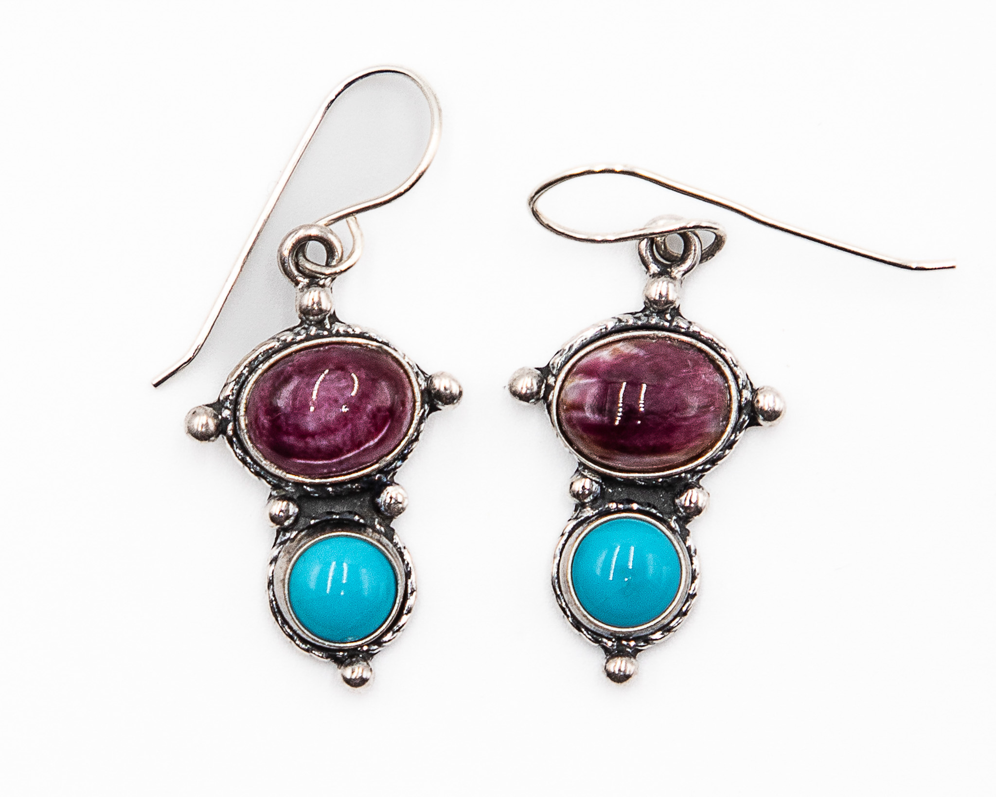 Navajo Sterling Turquoise Purple Spiny Oyster Hook Earrings 5g