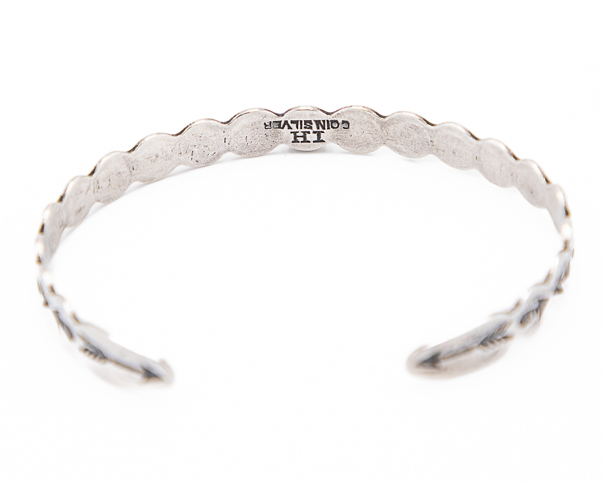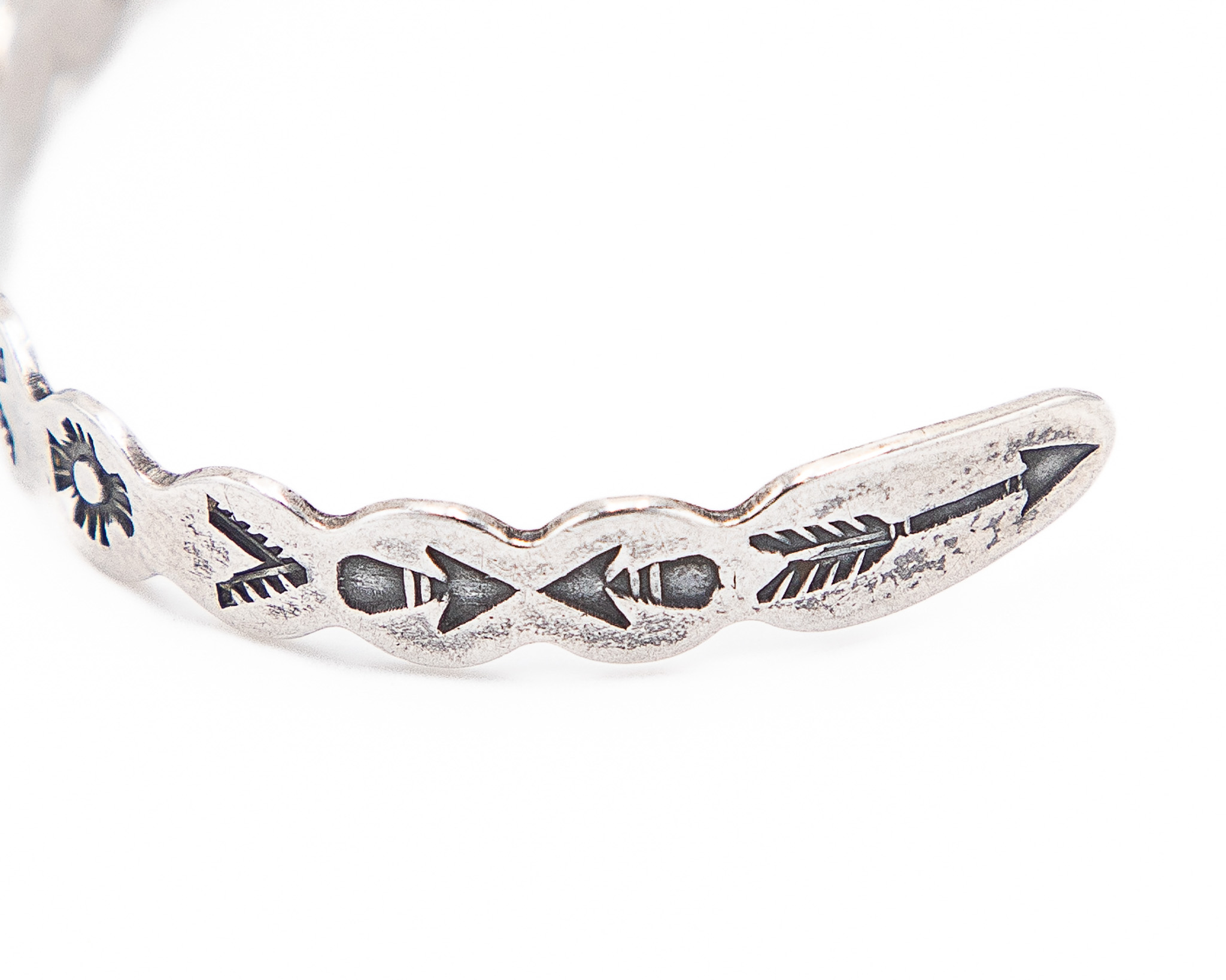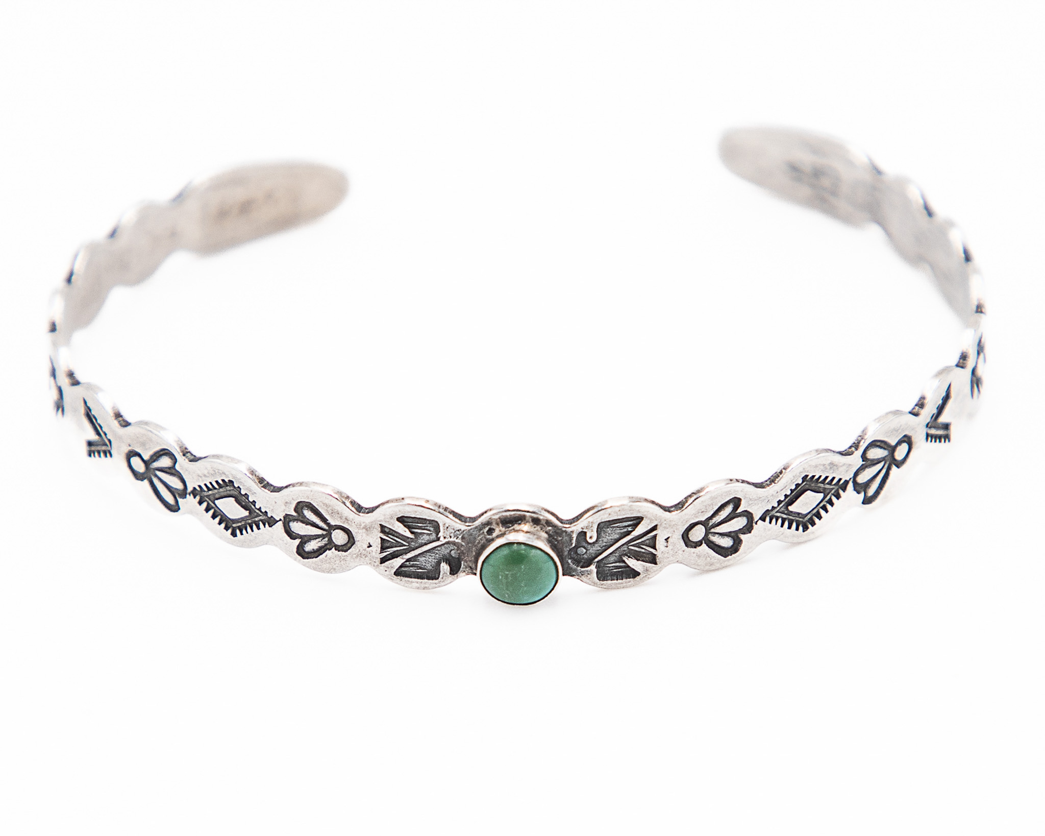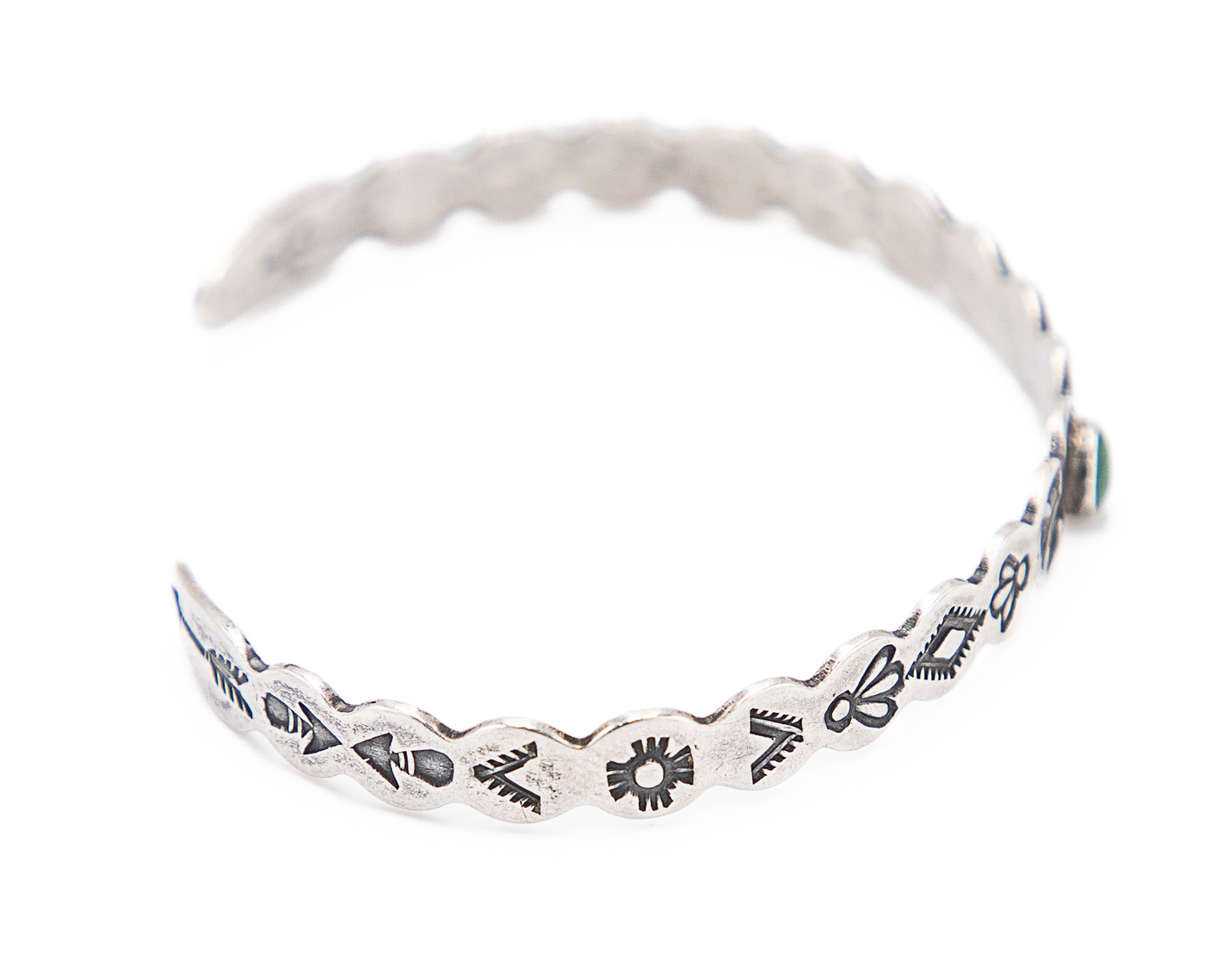 Indian Handcrafts Coin Silver Green Stone Cuff Bracelet 8g