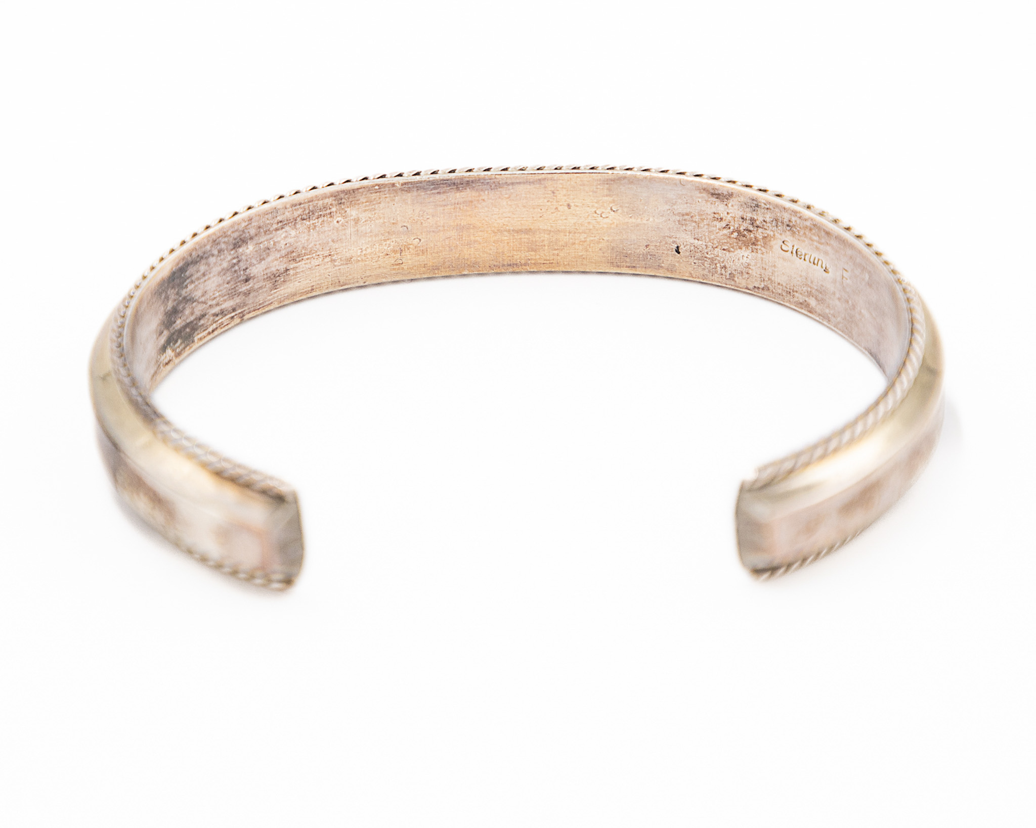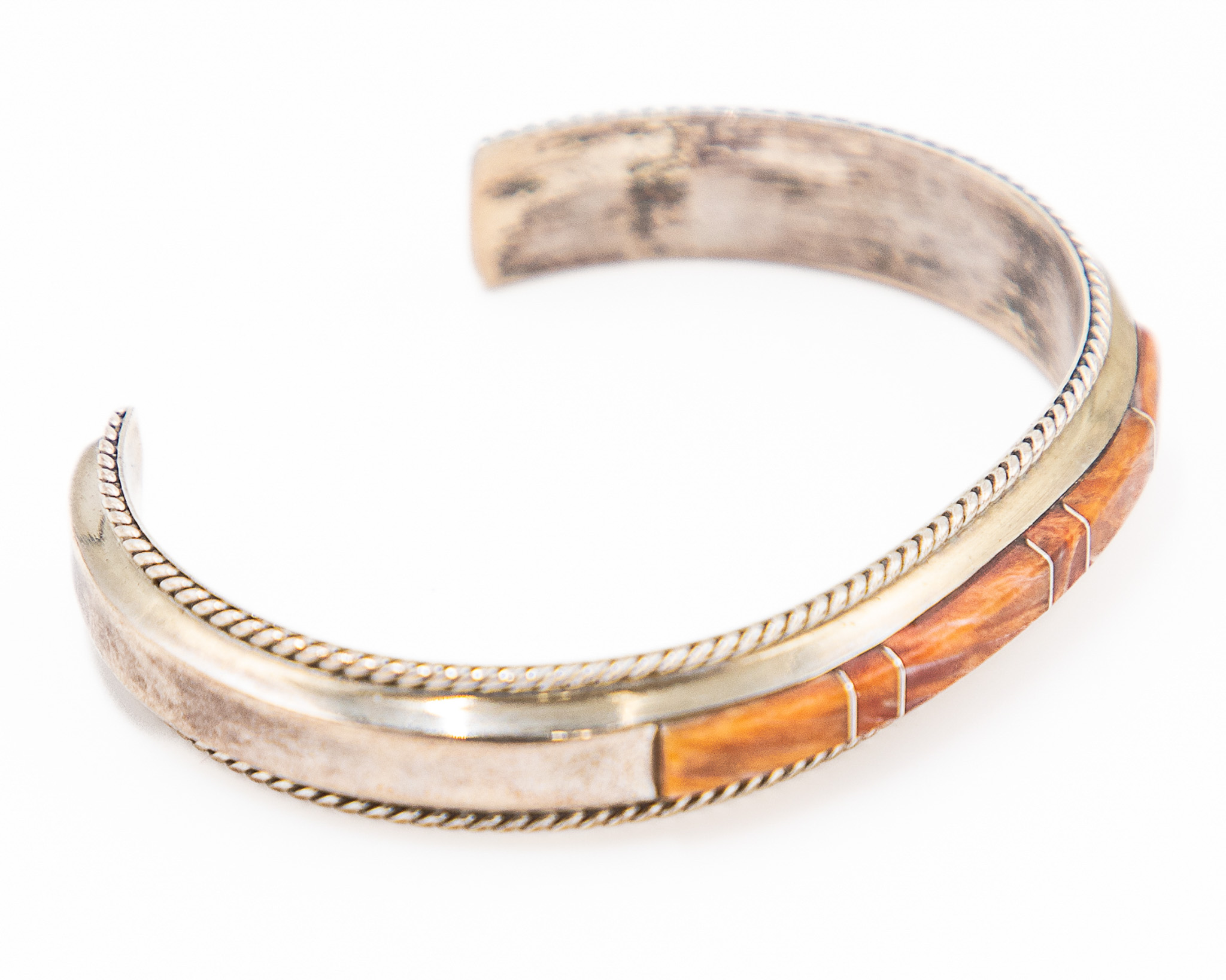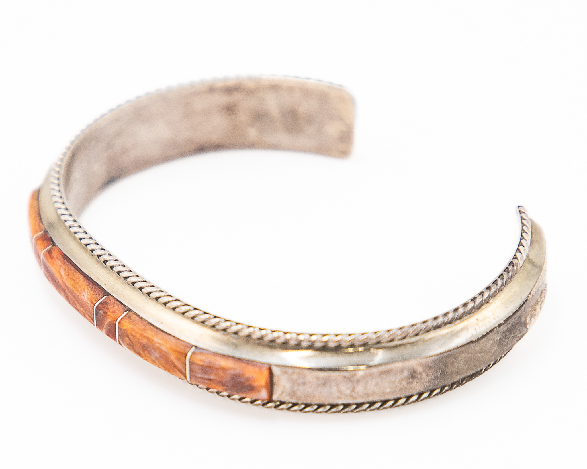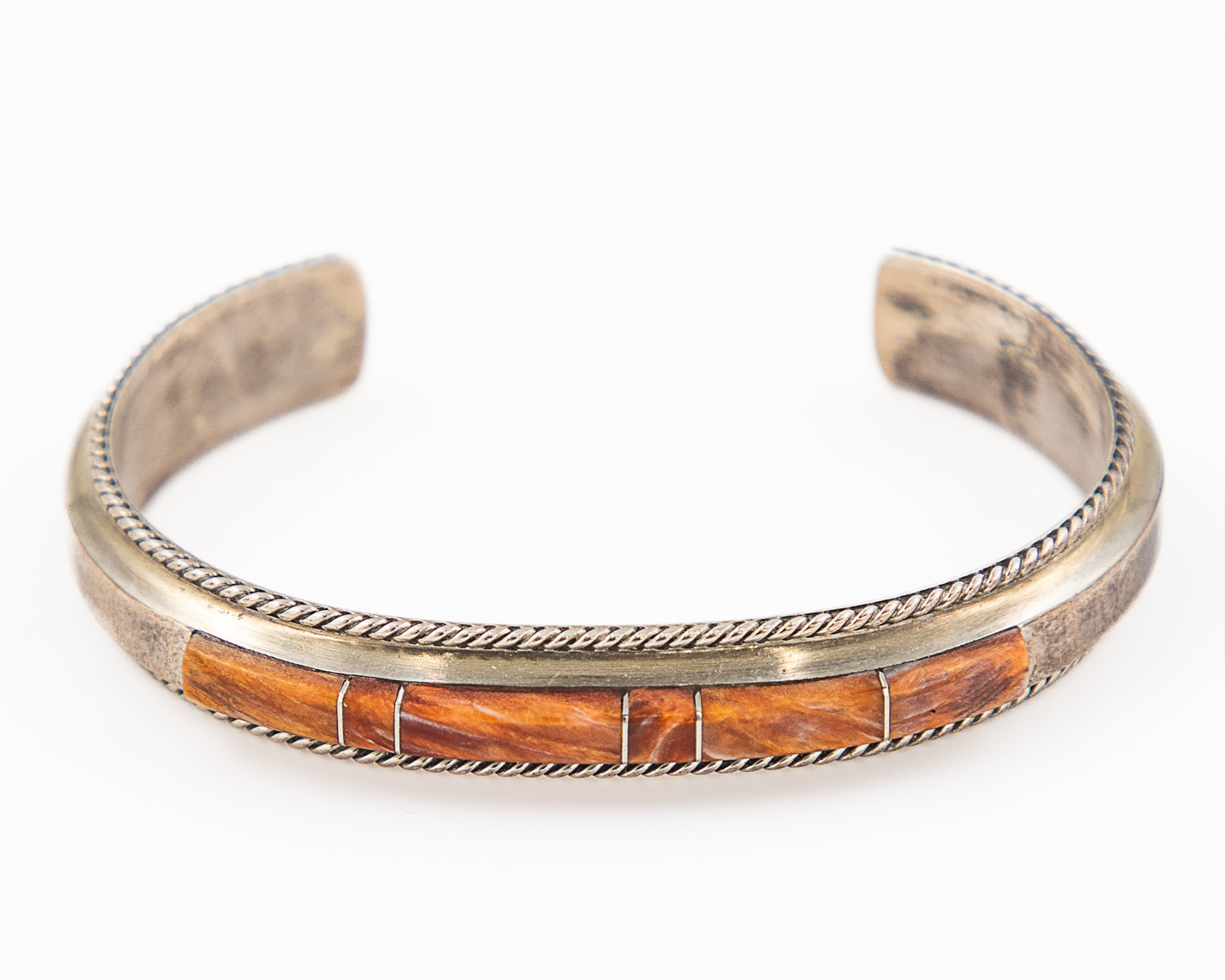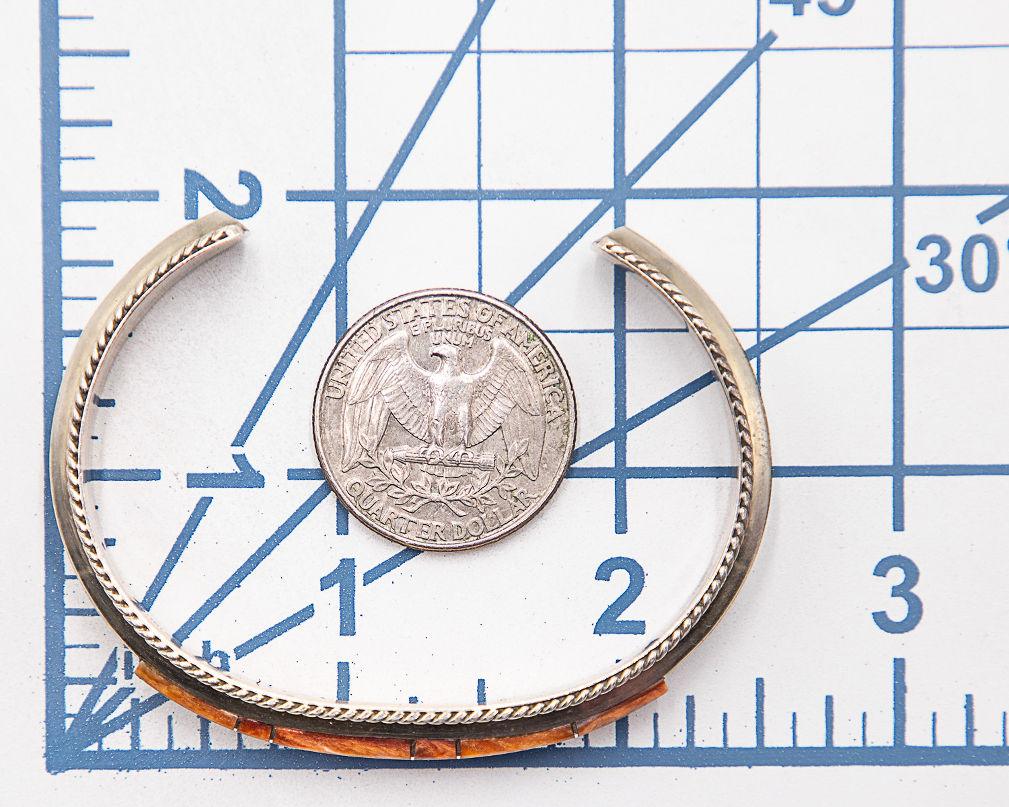 Singed F Sterling Spiny oyster Raised Inlay Cuff Bracelet 22g