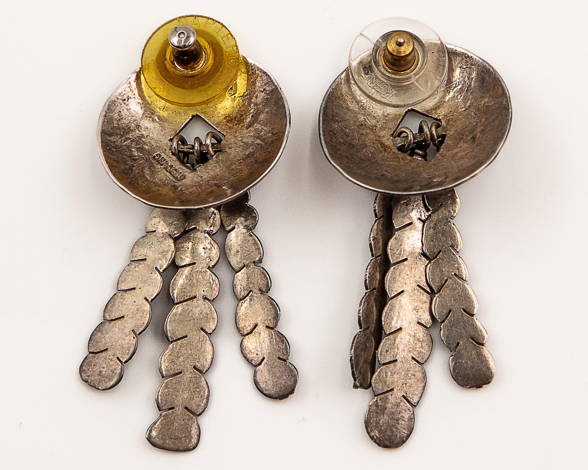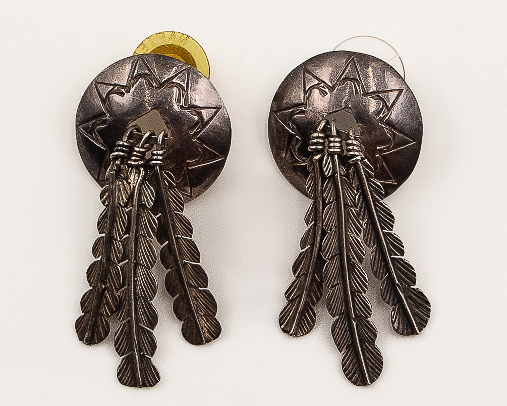 Vintage Navajo Sterling Concho Feather Earrings 14g