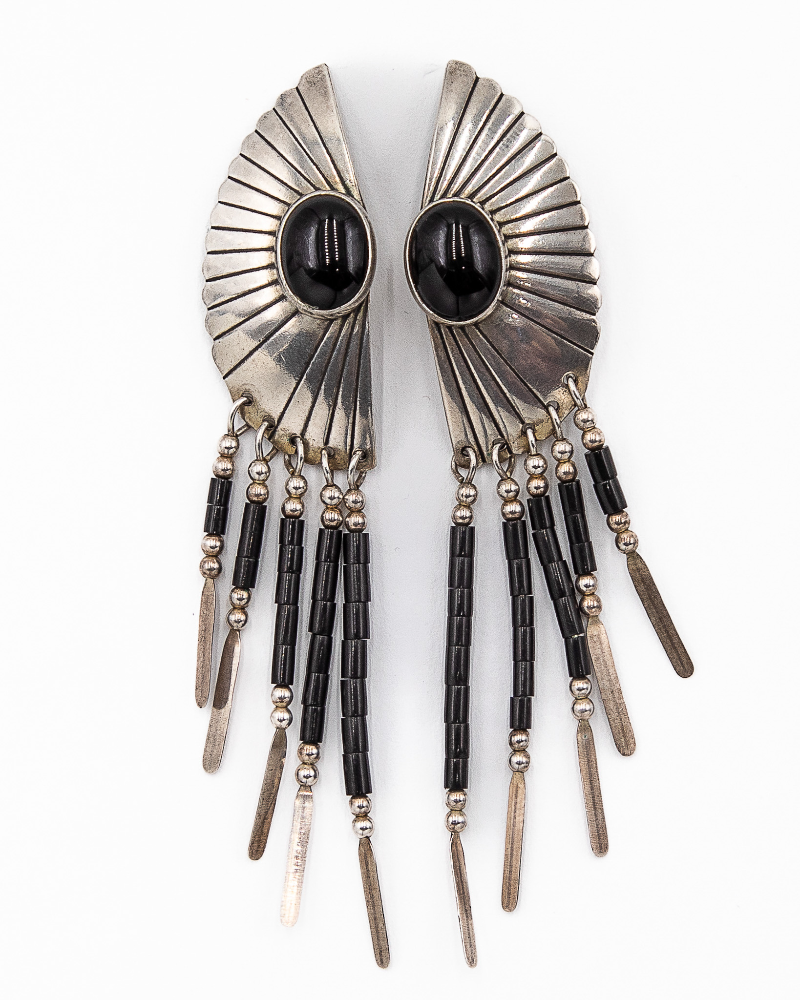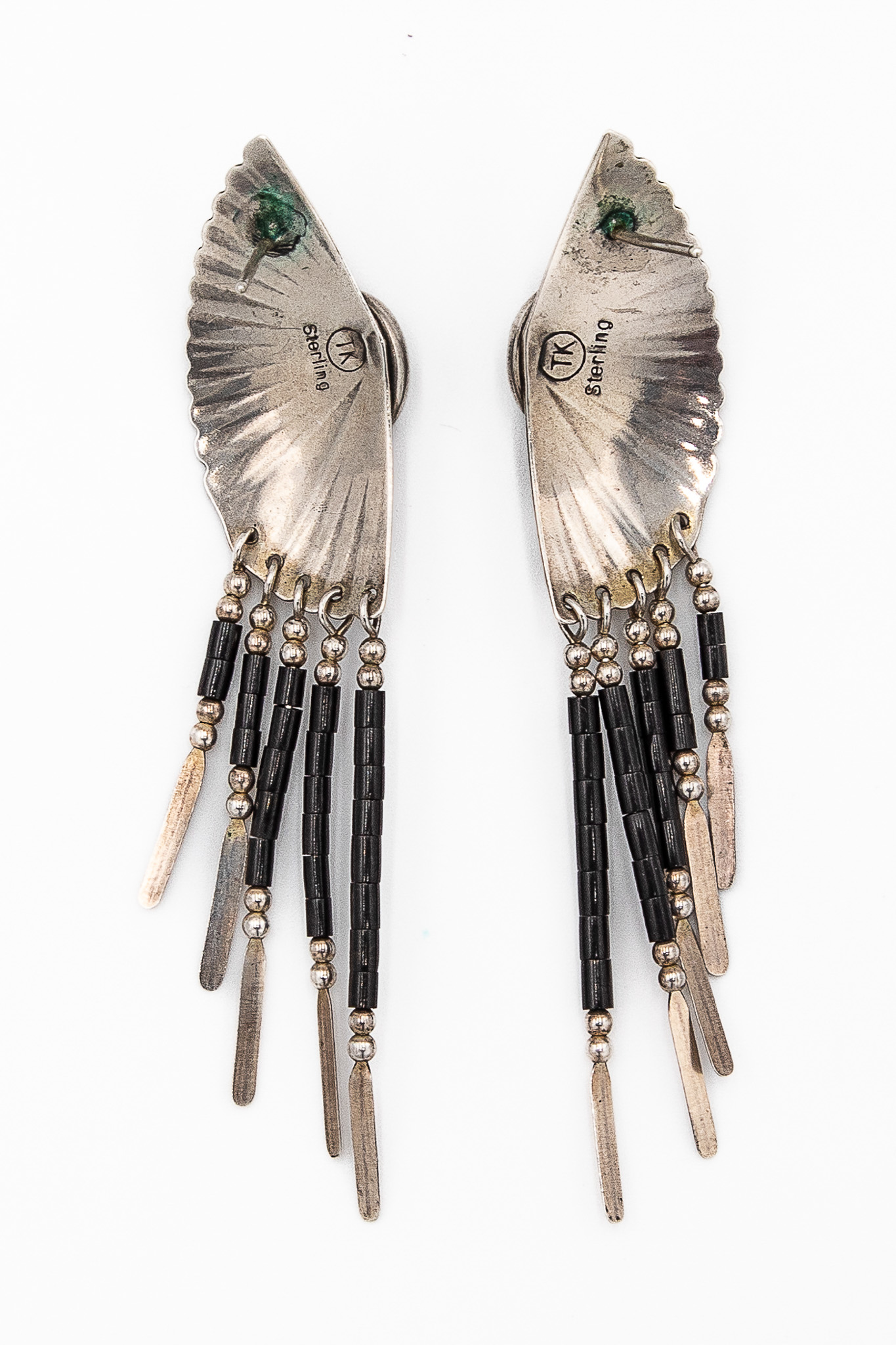 Signed TK Emerson Navajo Sterling Jet Dangle Earrings 8g