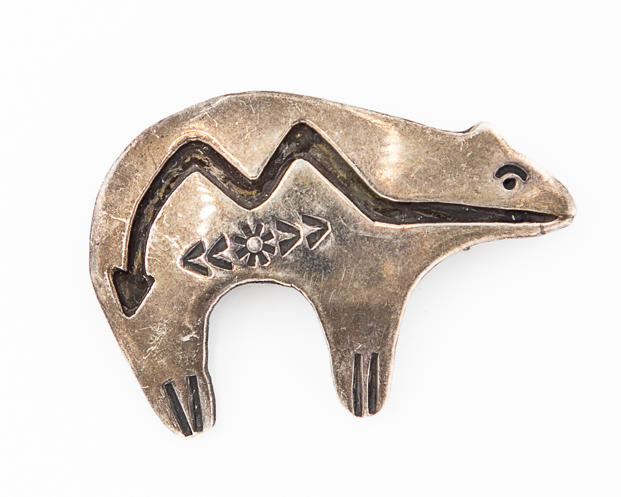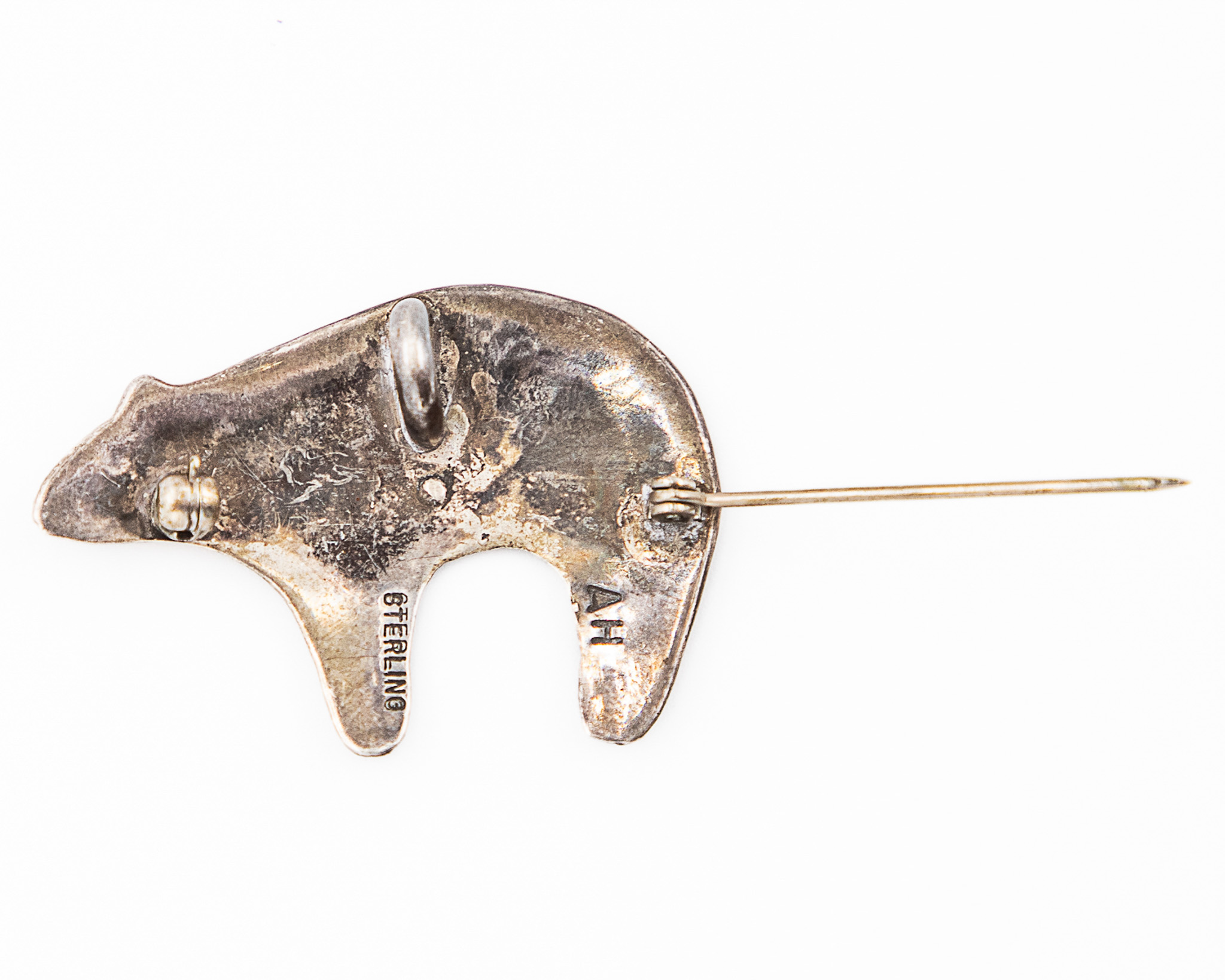 Signed AH Navajo Sterling Heartline Bear Brooch Pendant 7g