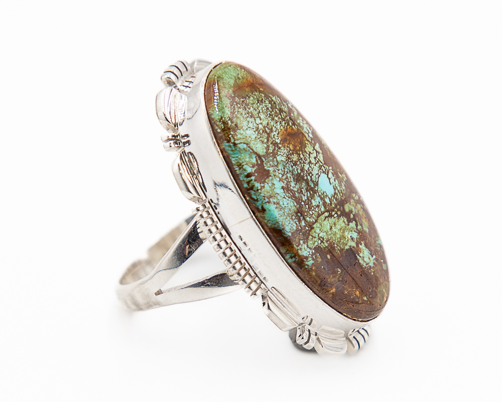 Larry Moses Yazzie Navajo Sterling Turquoise Ring Sz. 9, 12.5g