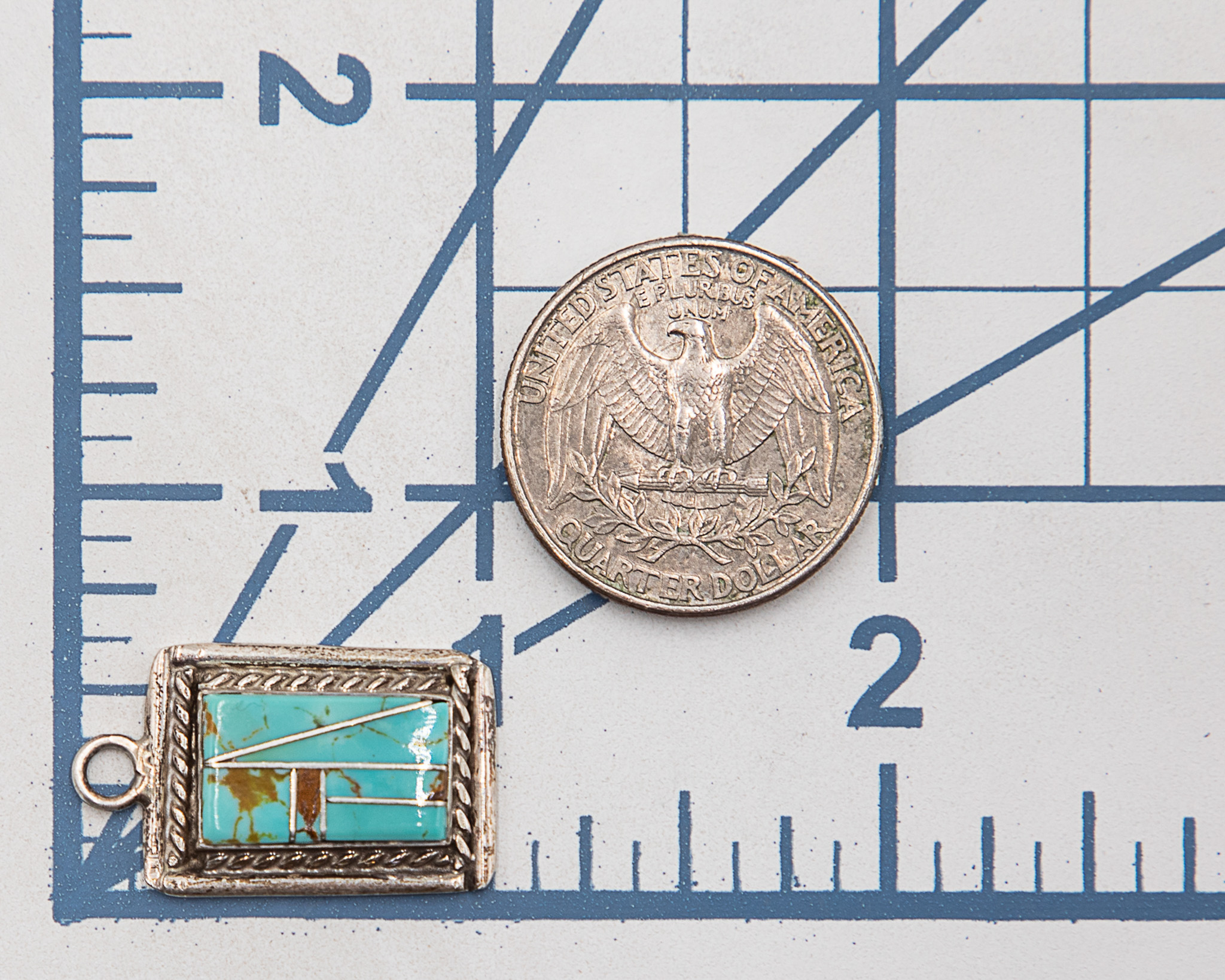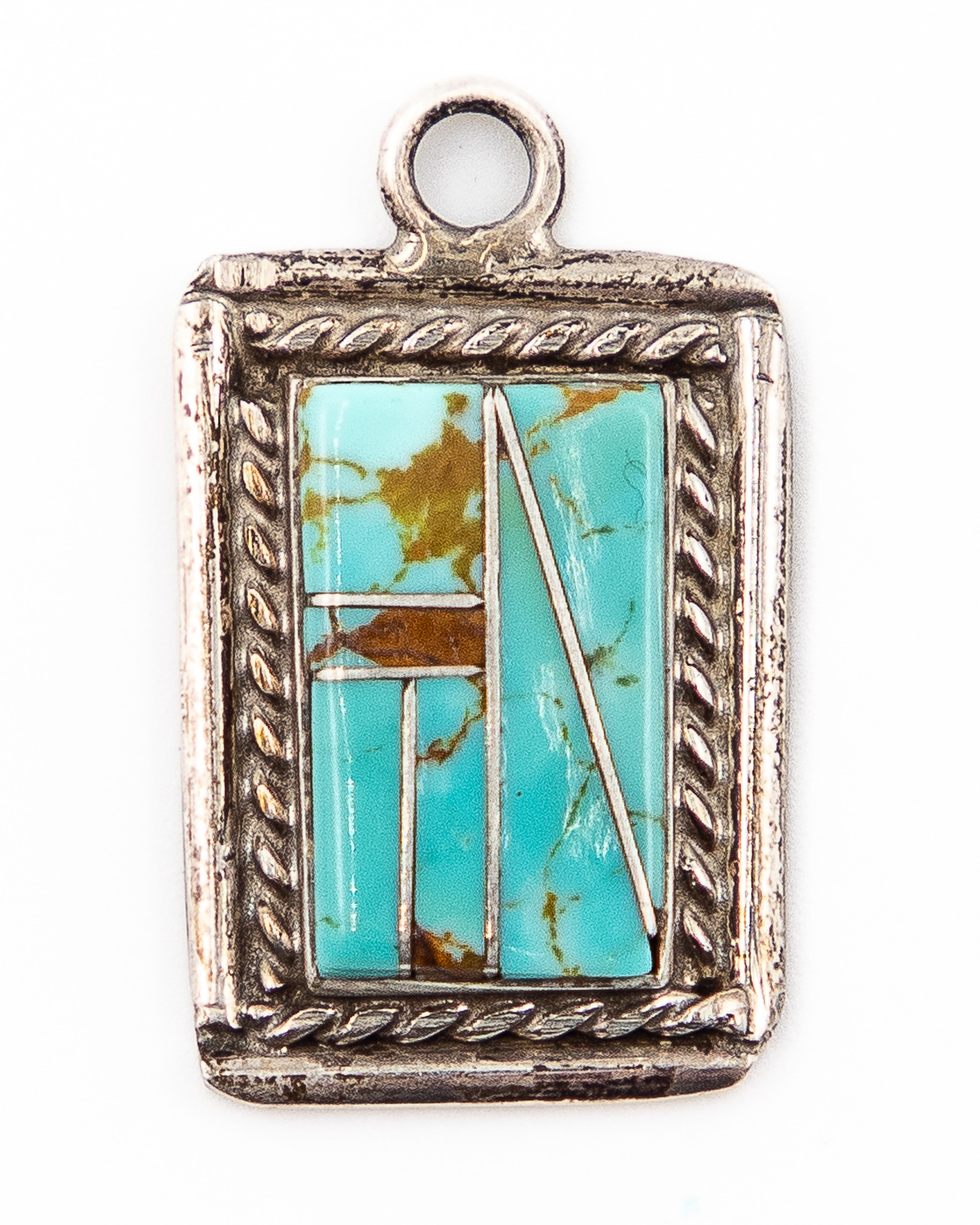 Signed W Zuni Turquoise Sterling Inlay Pendant 5g