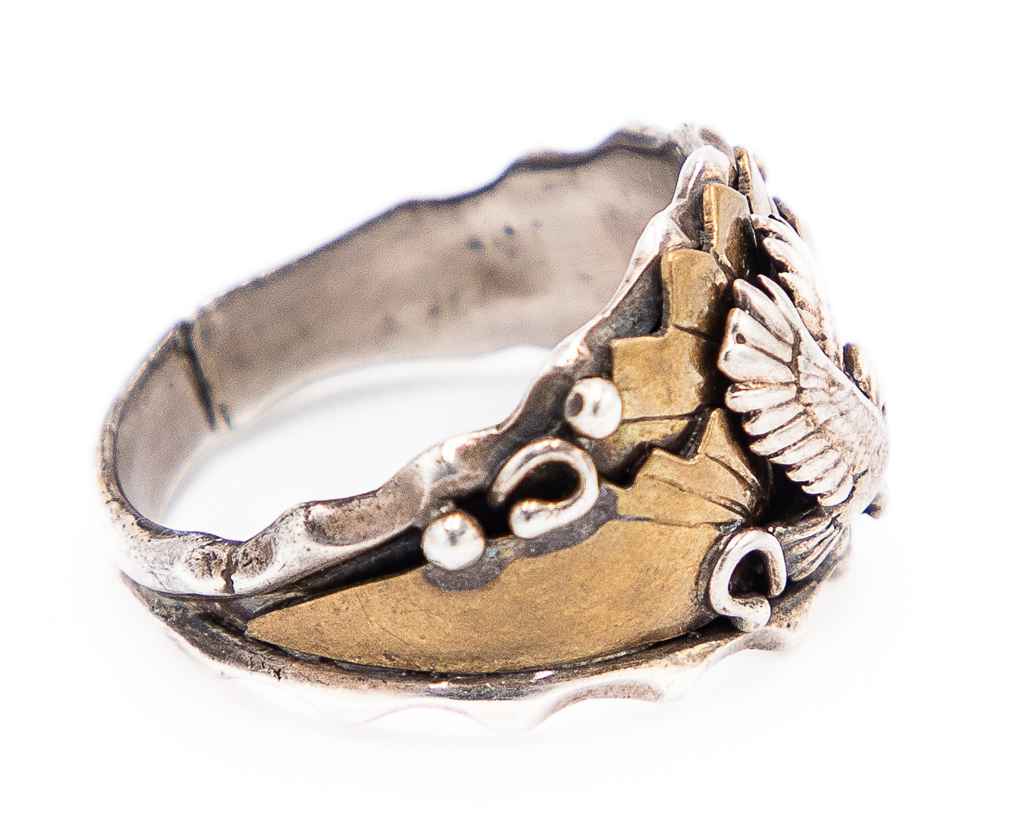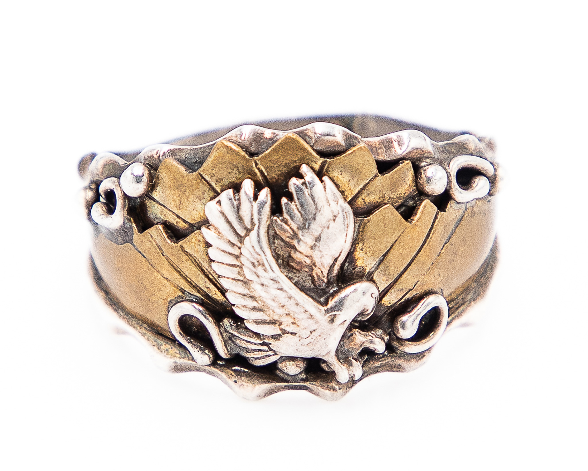 Running Bear Sterling Eagle Overlay Mens Ring Sz. 14, 11g