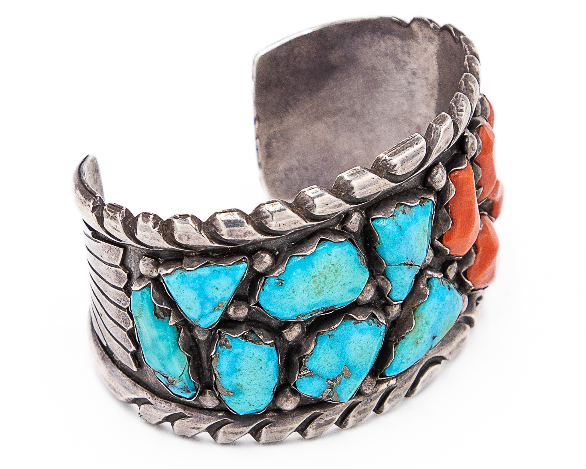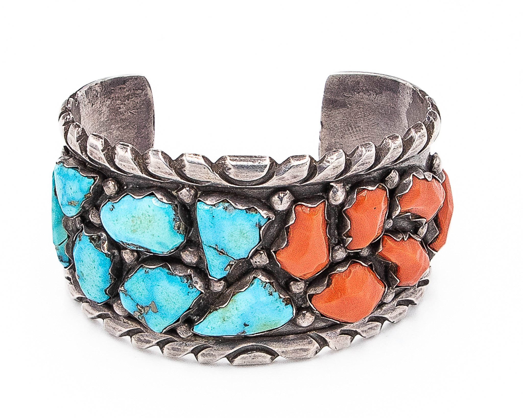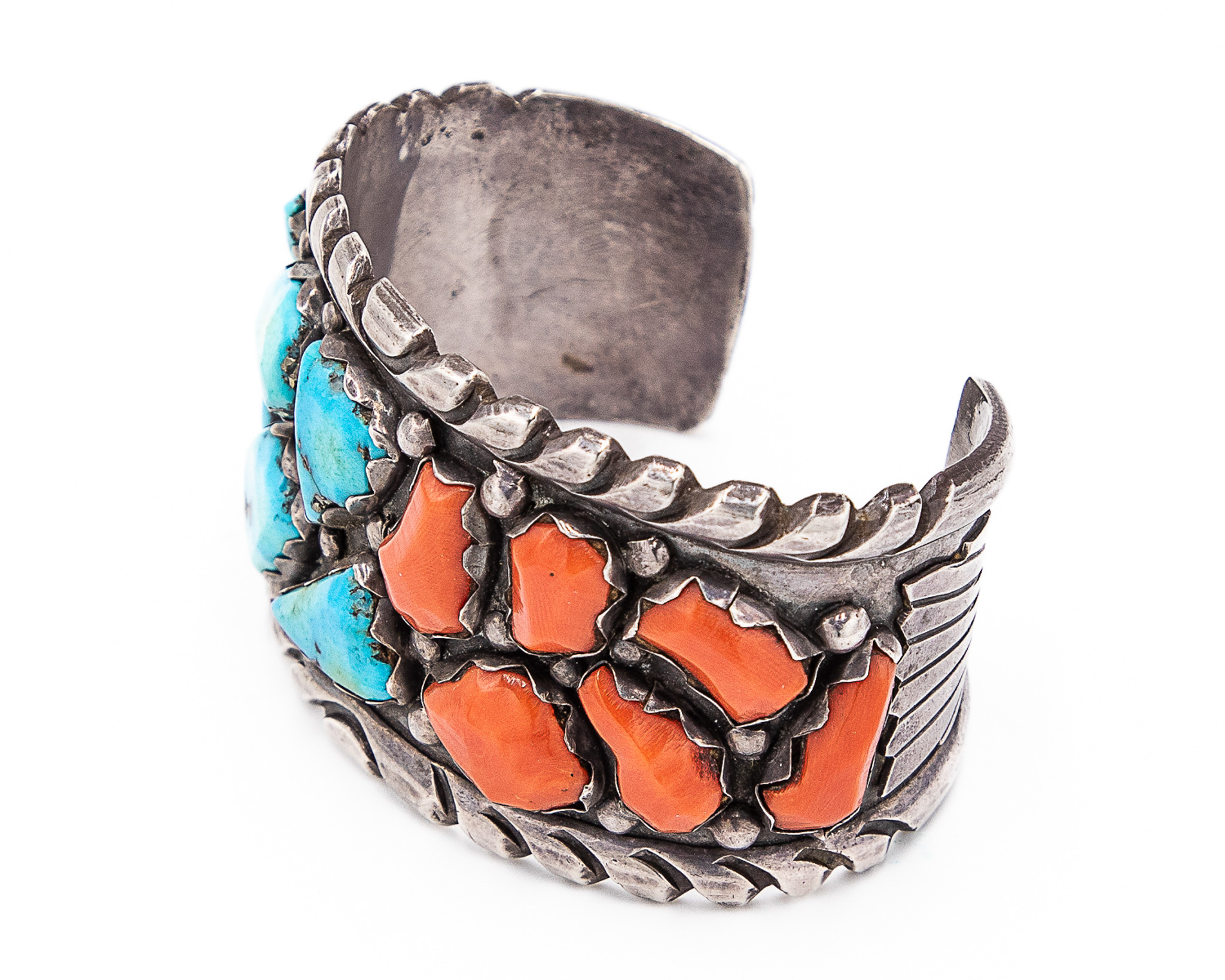Wayne Cheama Zuni Turquoise Coral Cuff Bracelet 101g