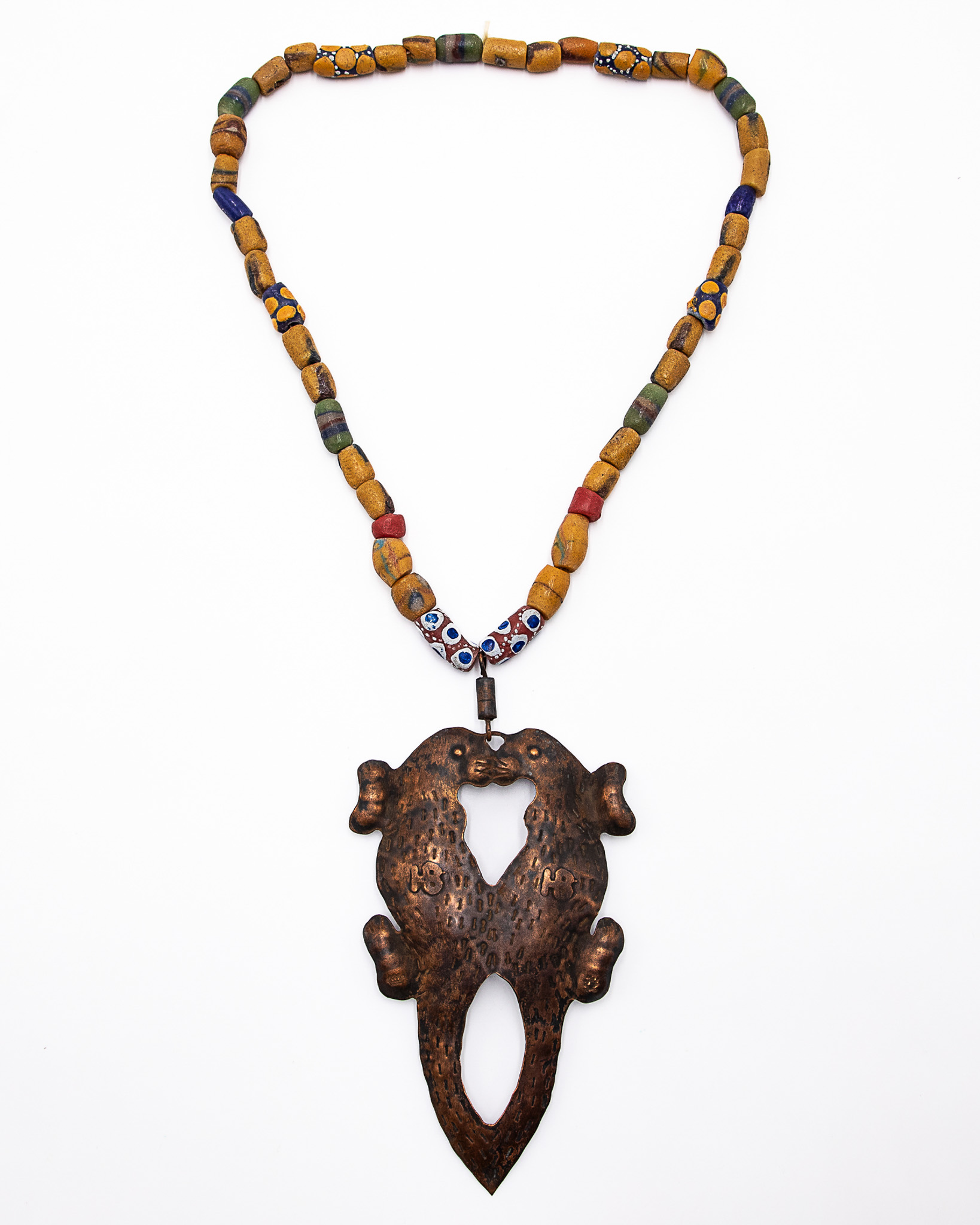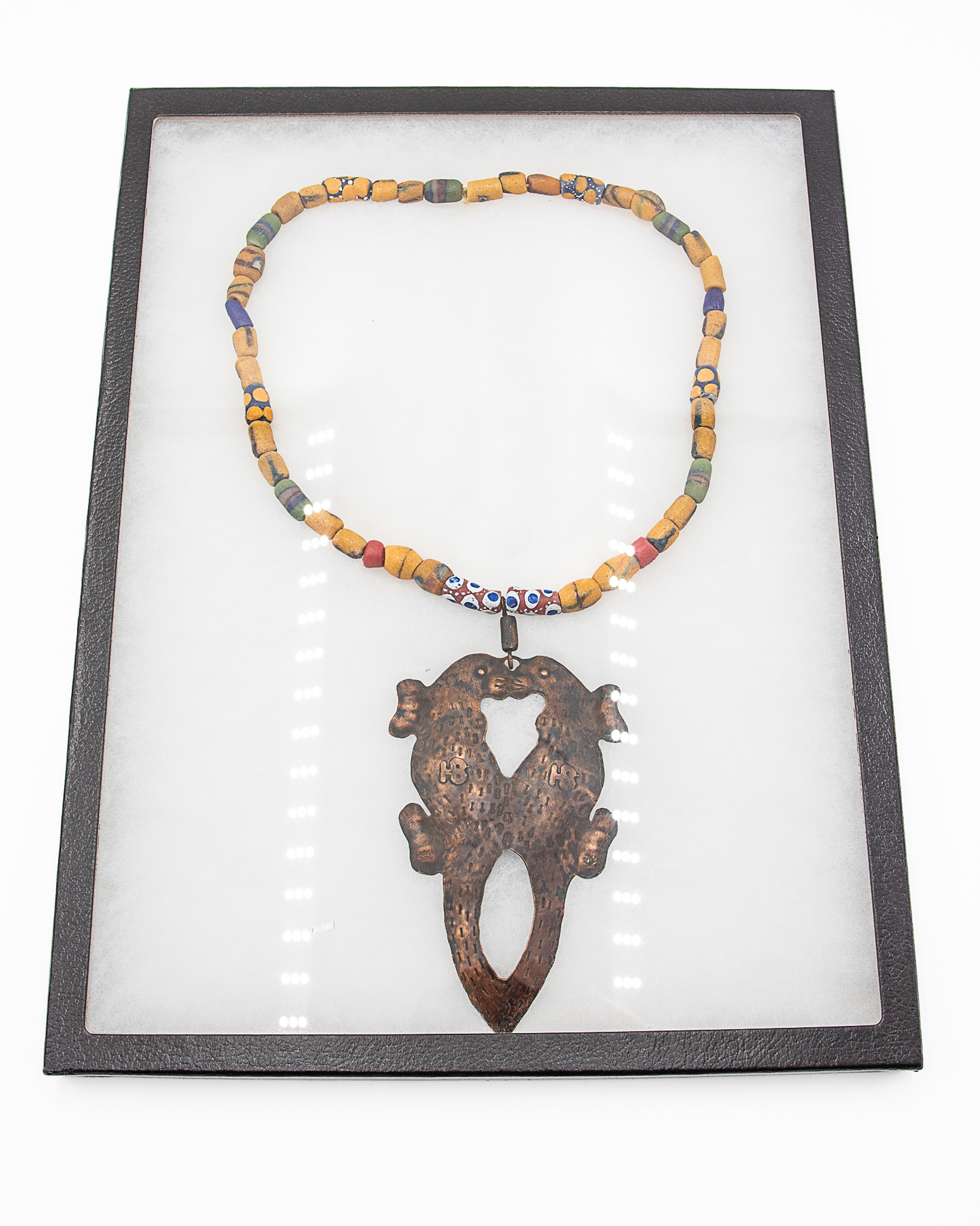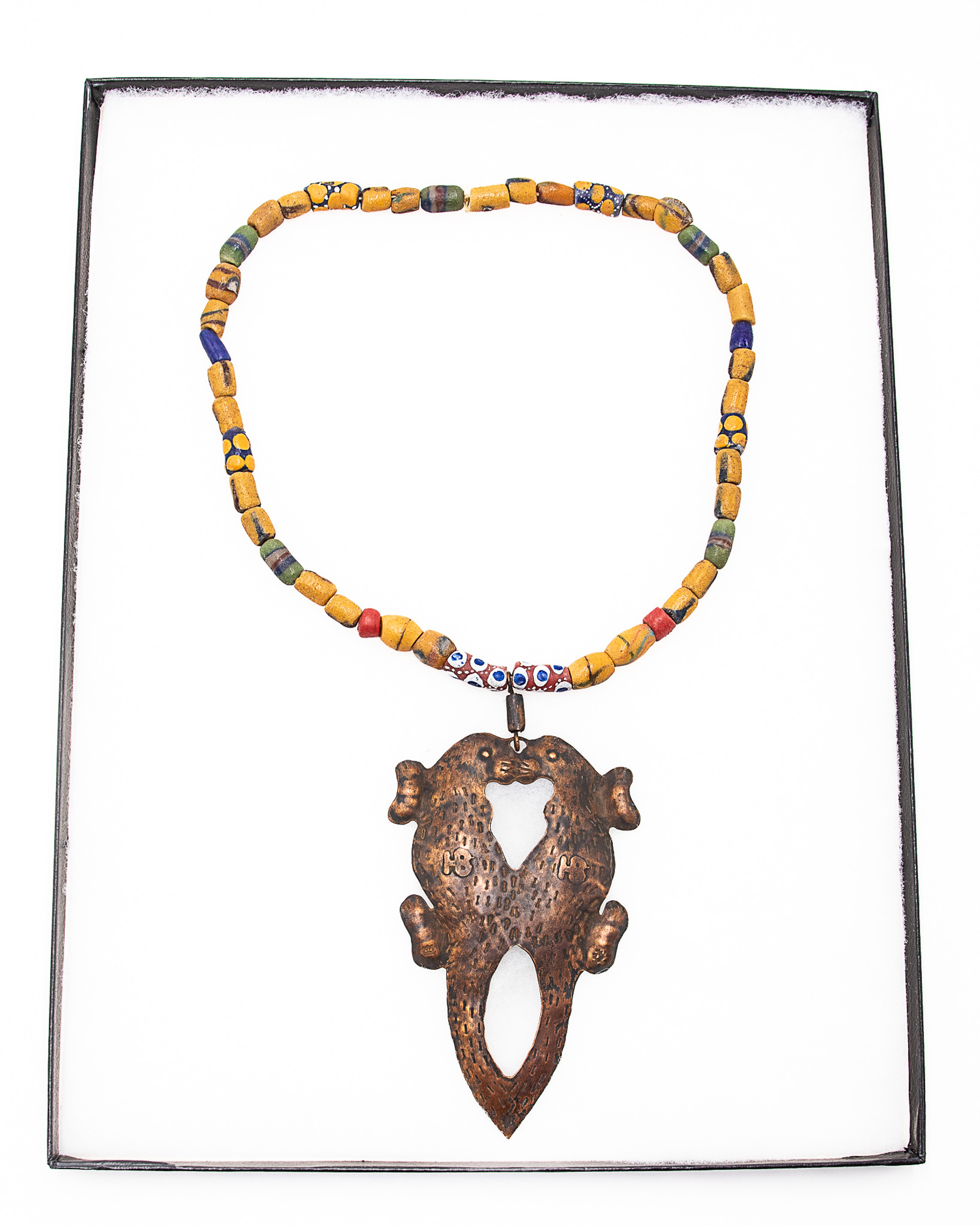 Antique Hudson Bay Native American Otter Effigy Fur Trade Bead Necklace. Hallmarked Hudson Bay.