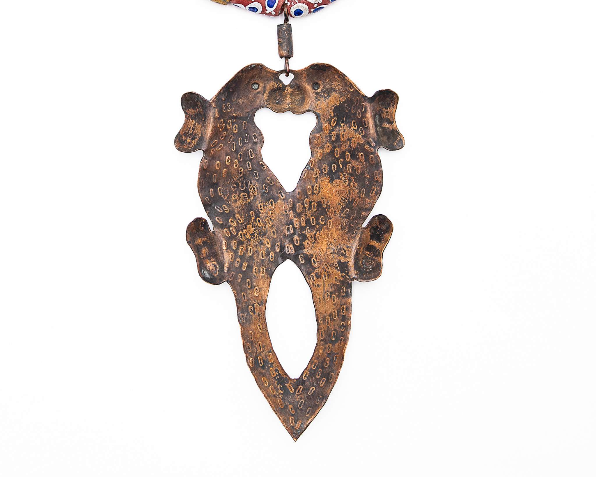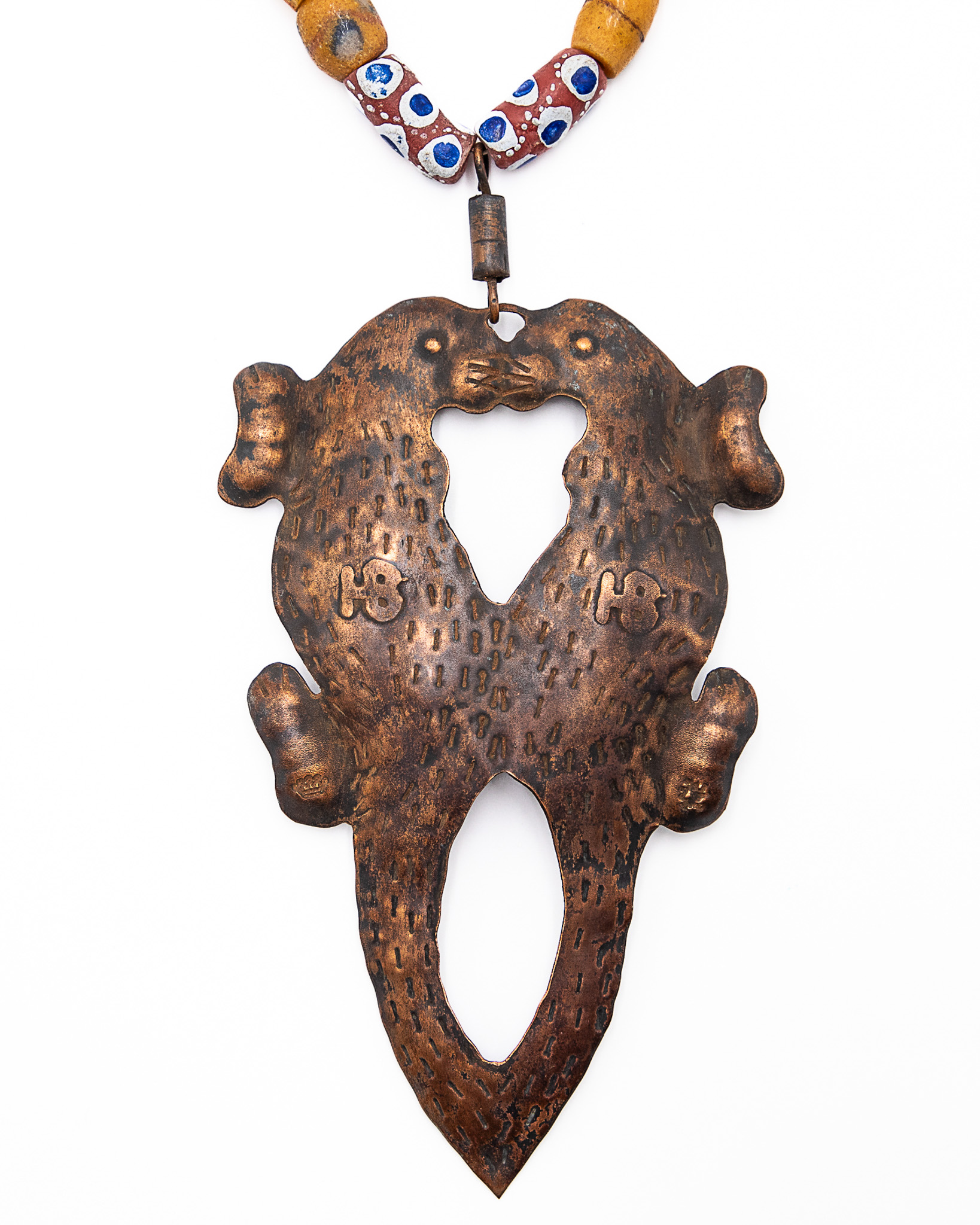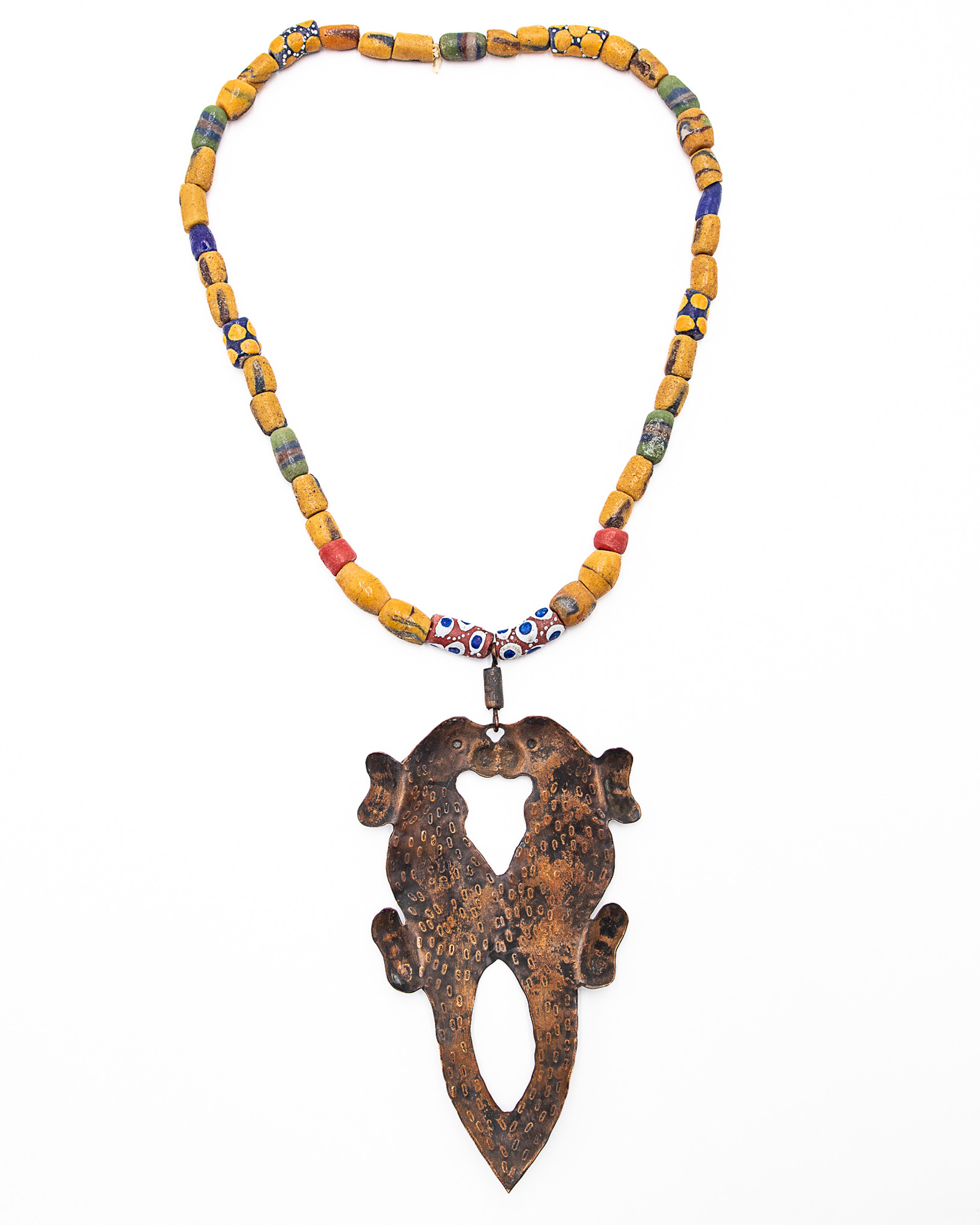 Antique Hudson Bay Native American Otter Effigy Fur Trade Bead Necklace. Hallmarked Hudson Bay.