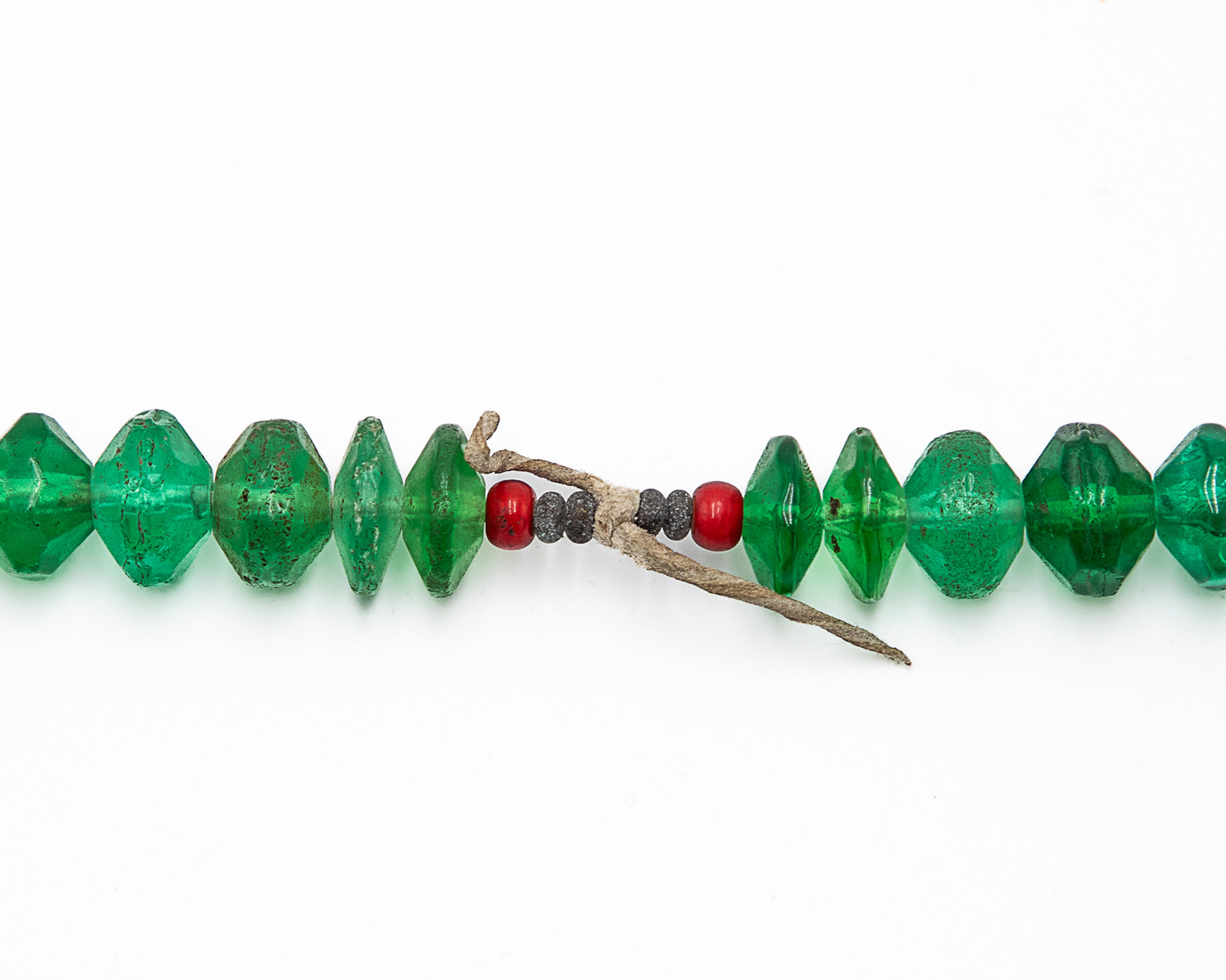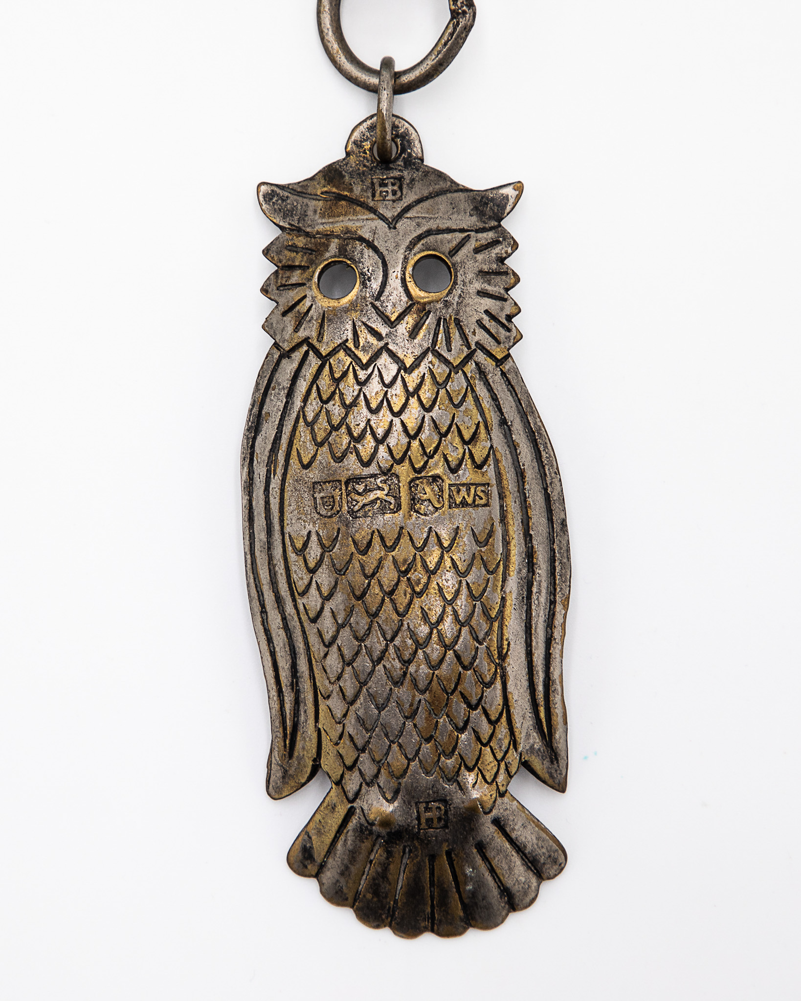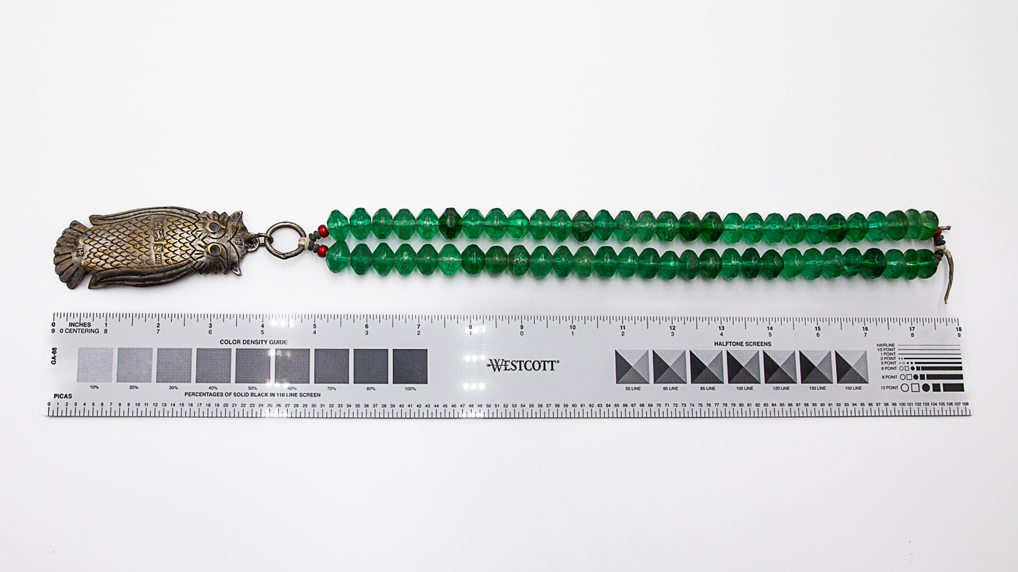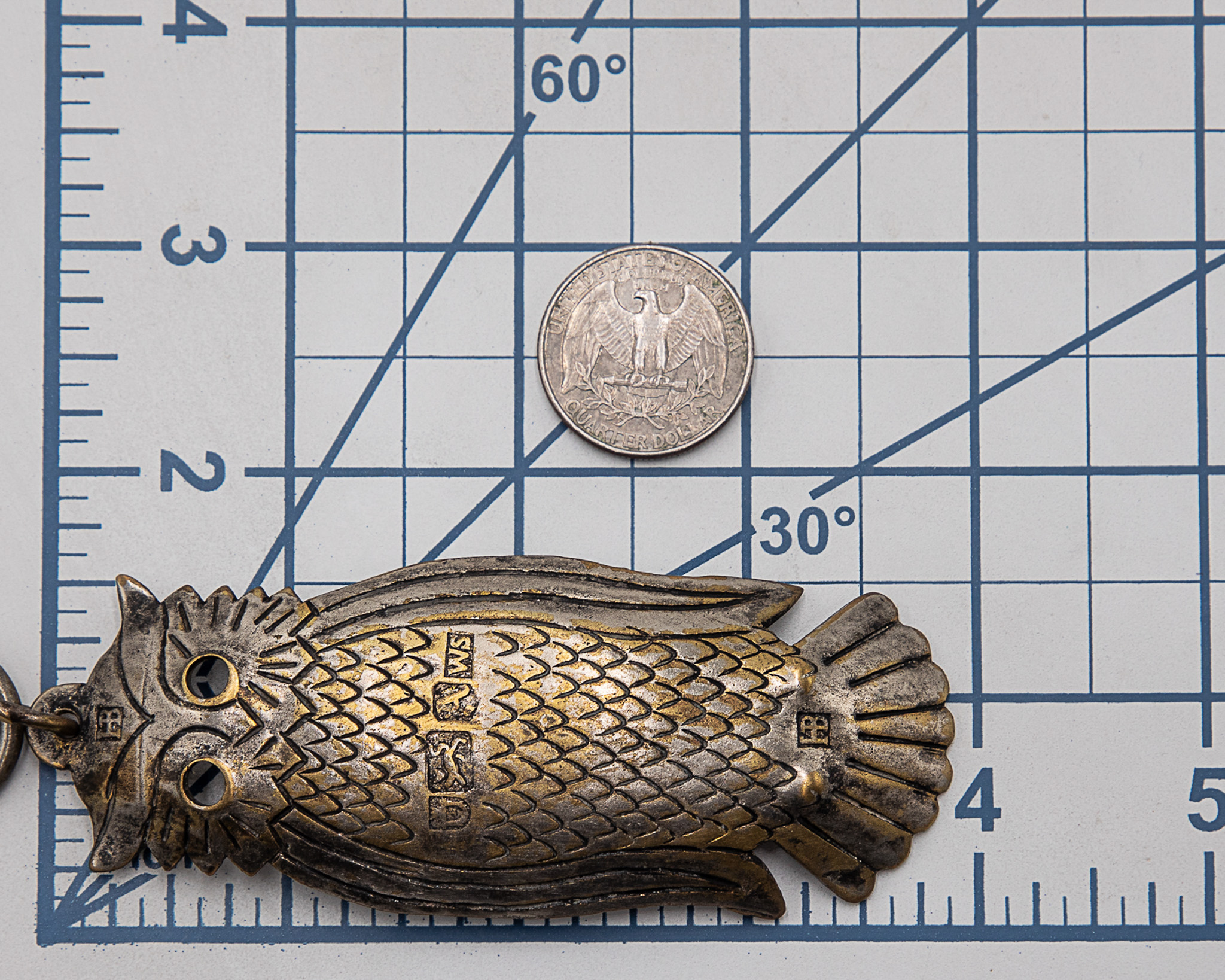 Antique Indian Fur Trade Sterling Owl Effigy Pendant Old Green Venetian Trade Beads