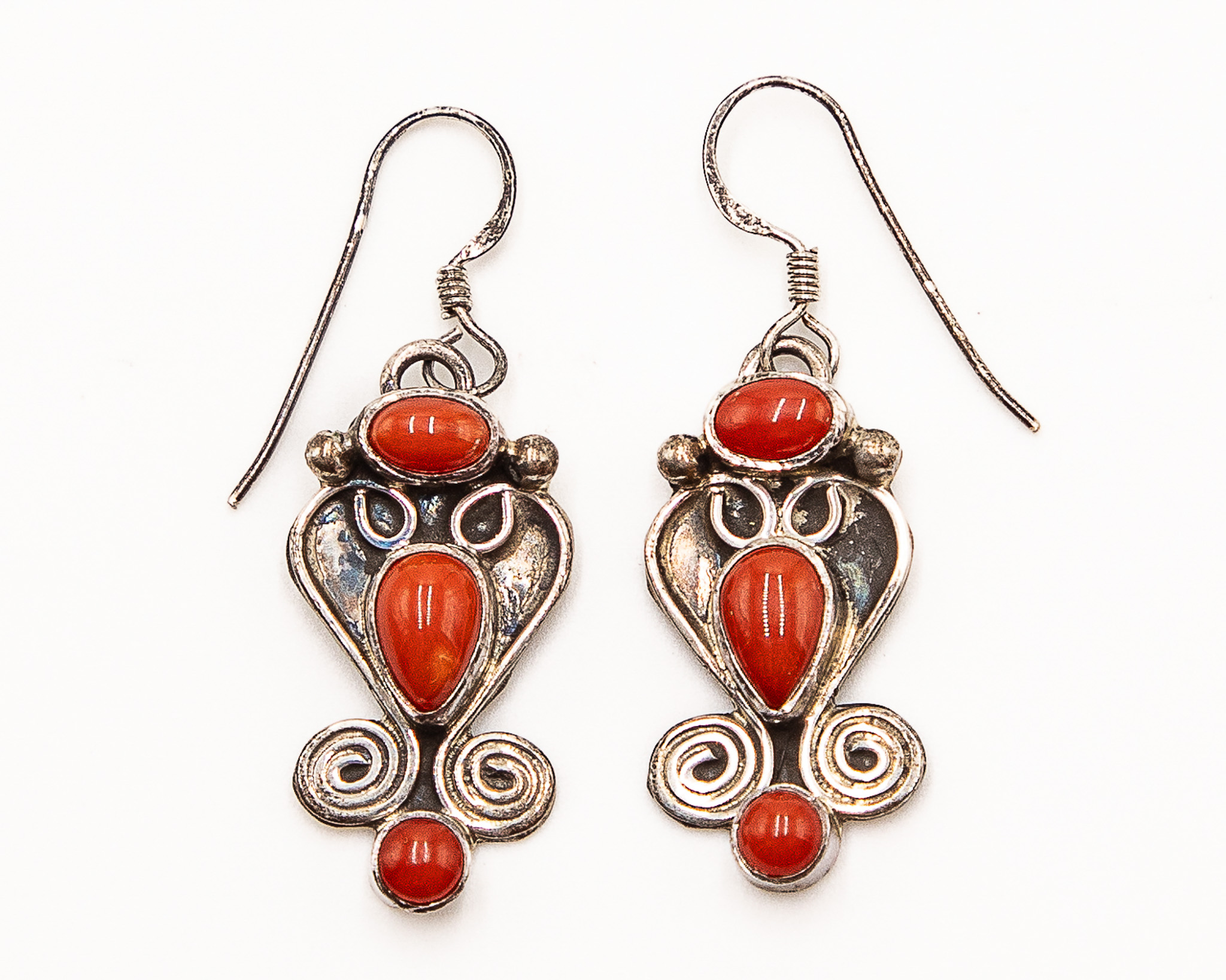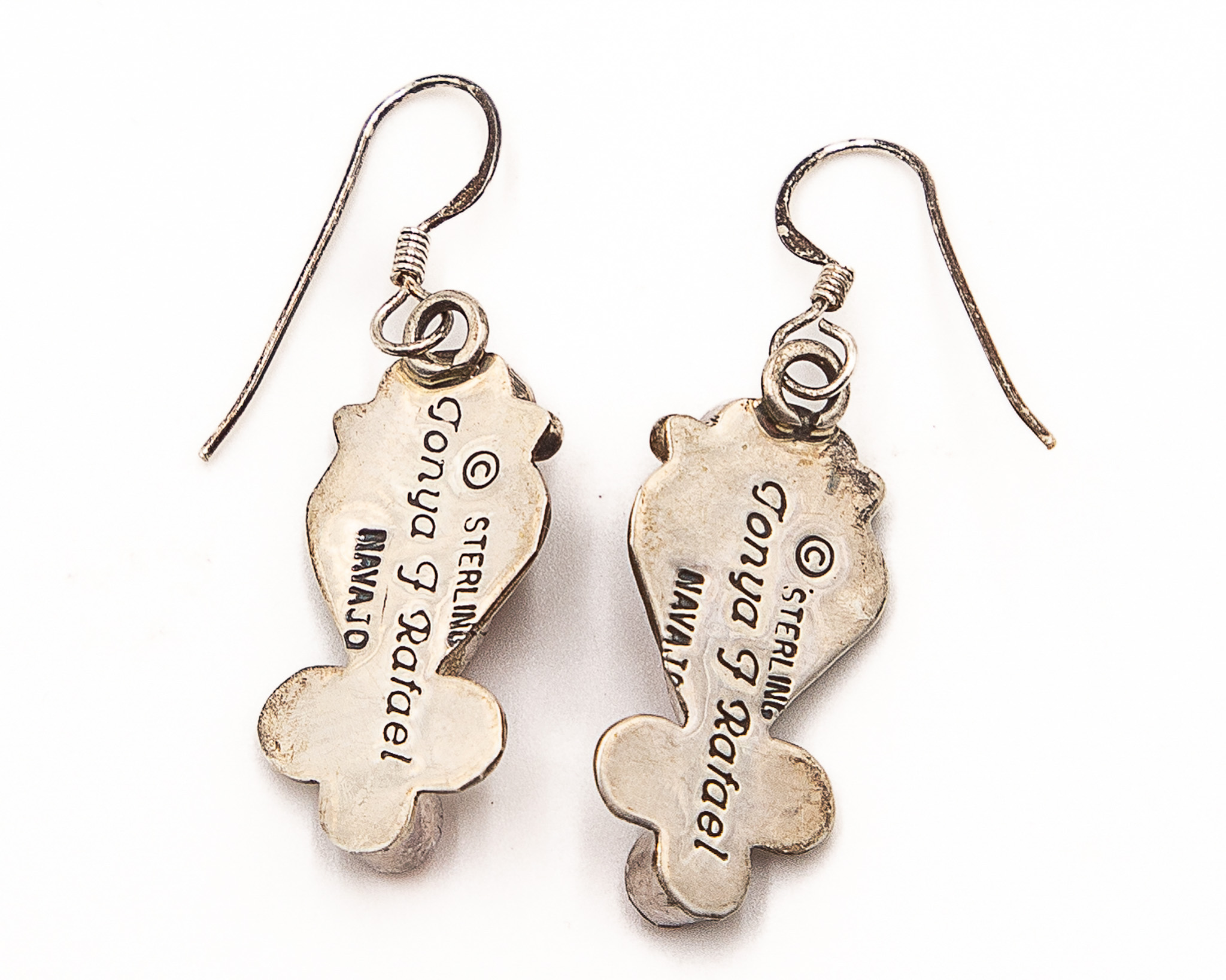 Tonya June Rafael Navajo Sterling Coral Stone Earrings 6g