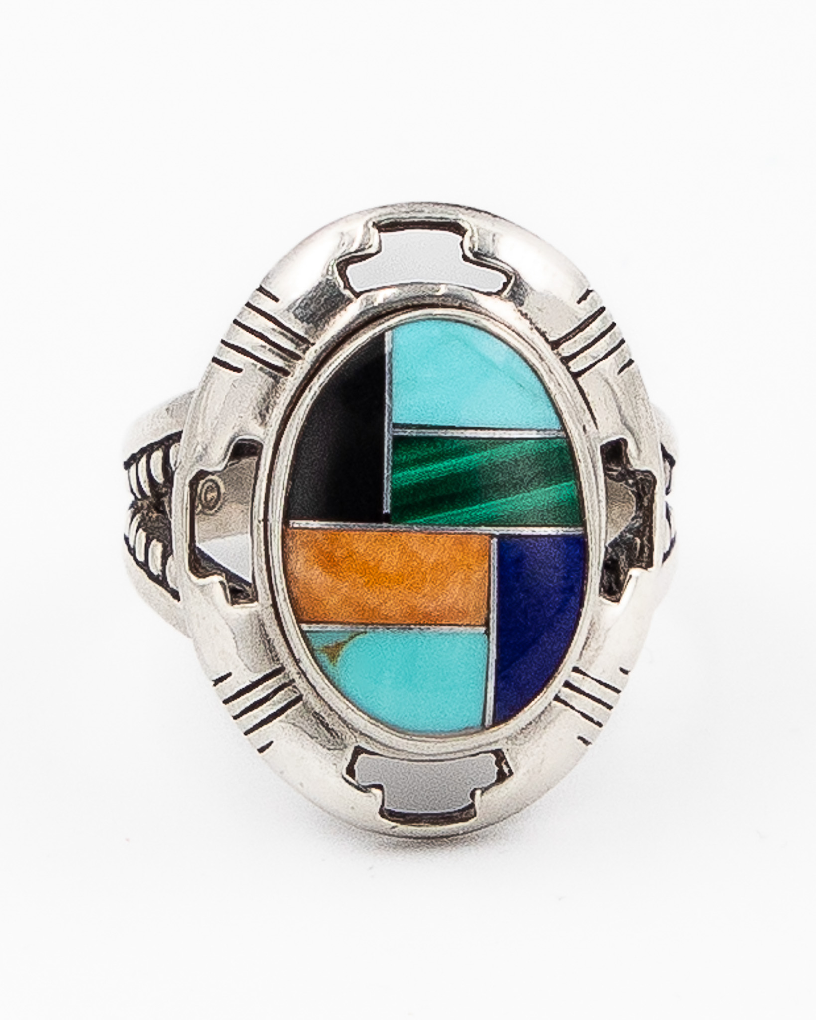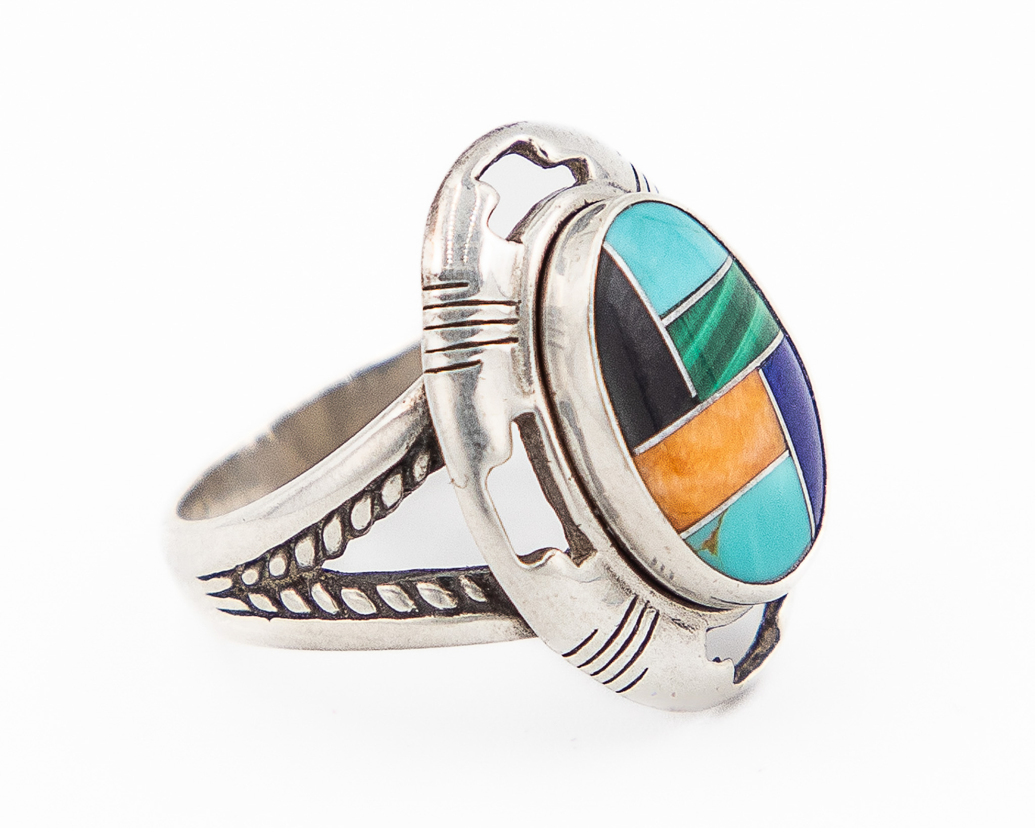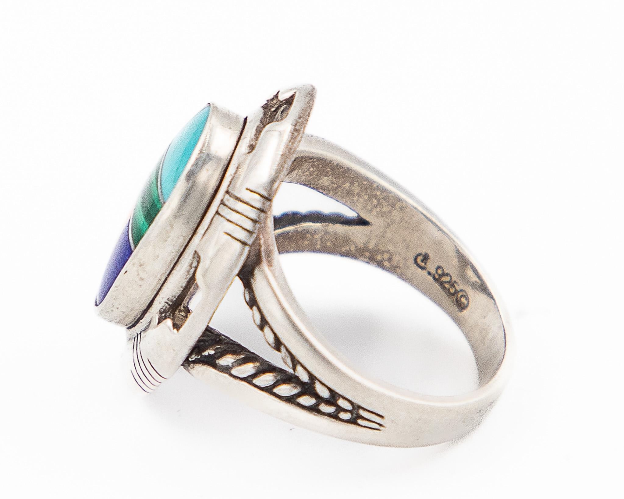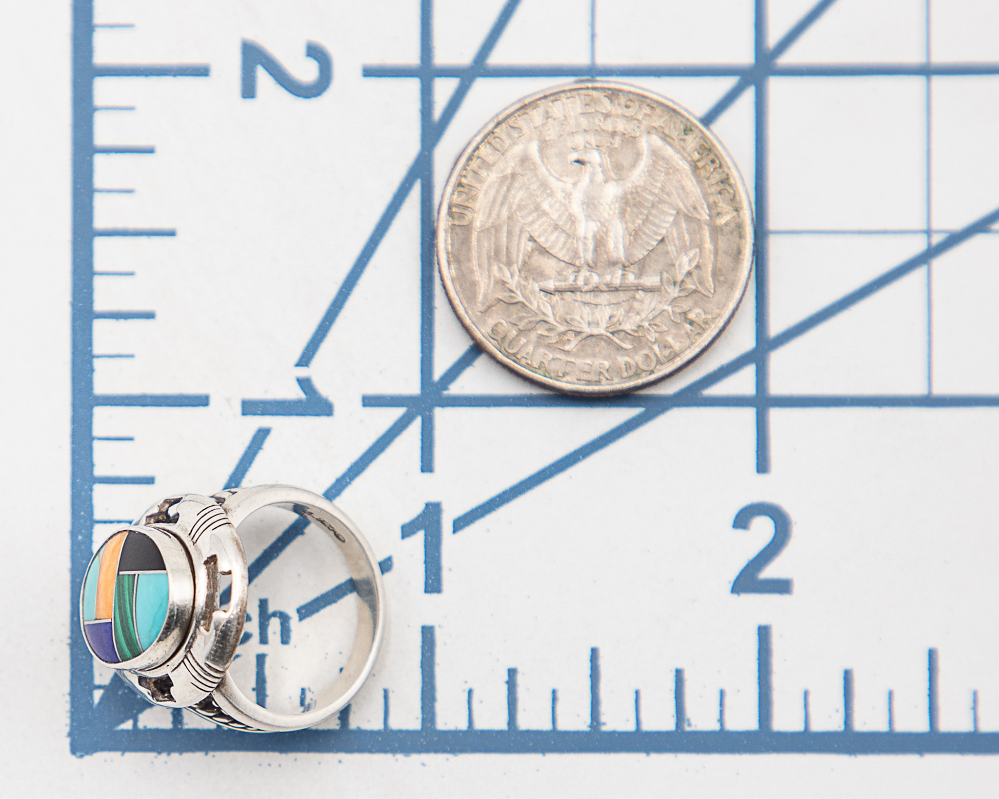 Relios Jewelry Sterling Turquoise Jet Malachite Lapis Inlay Ring Sz. 5.5, 7g
