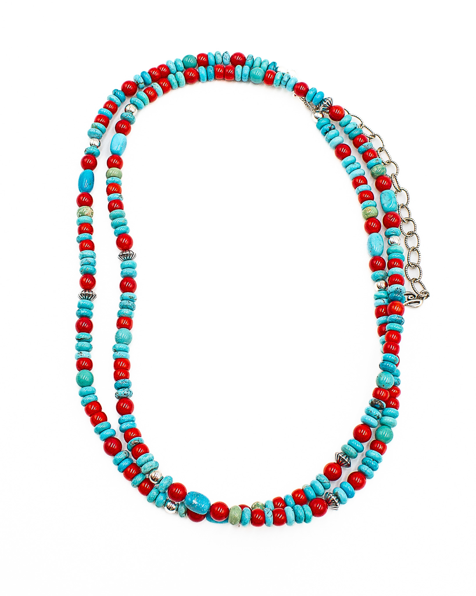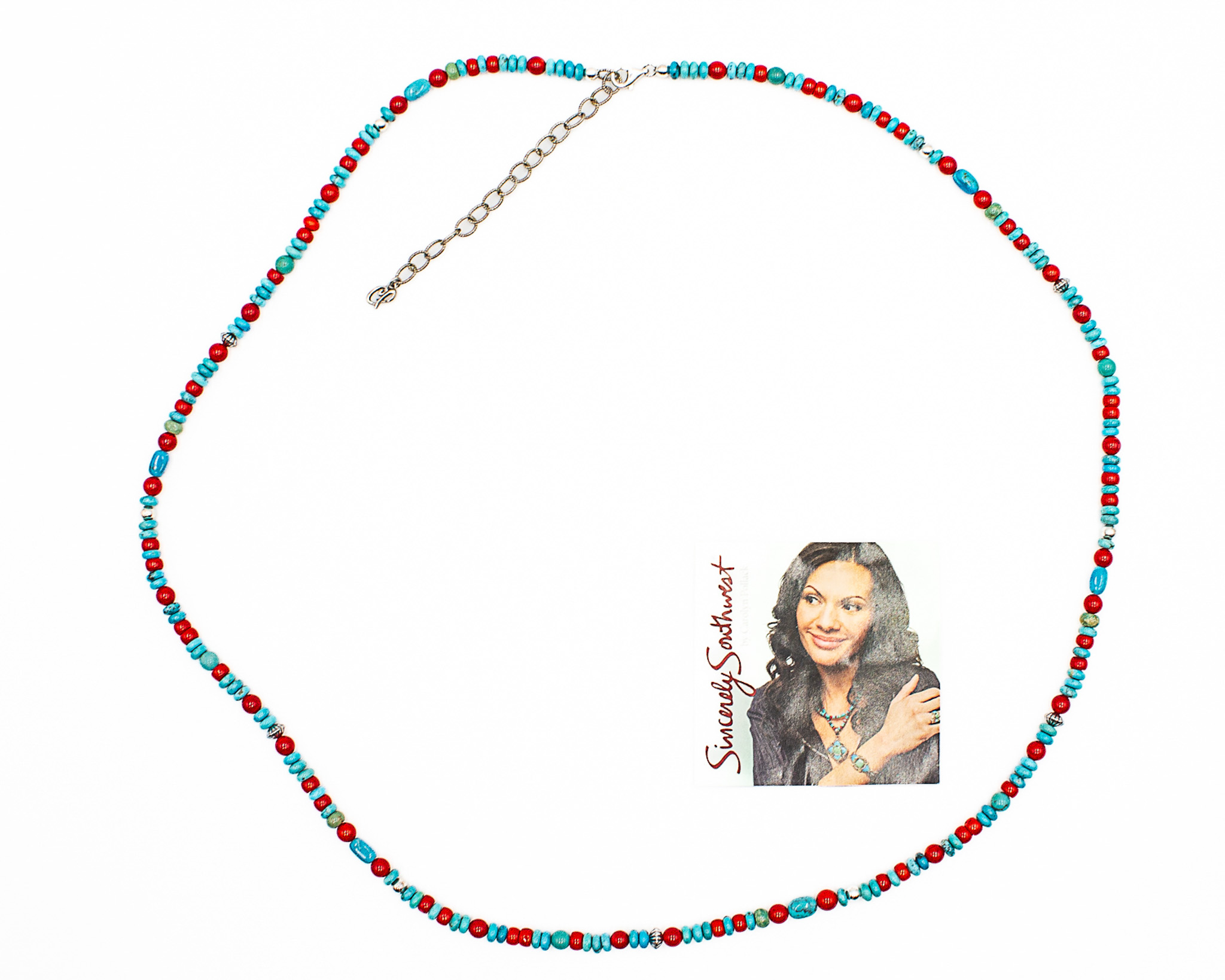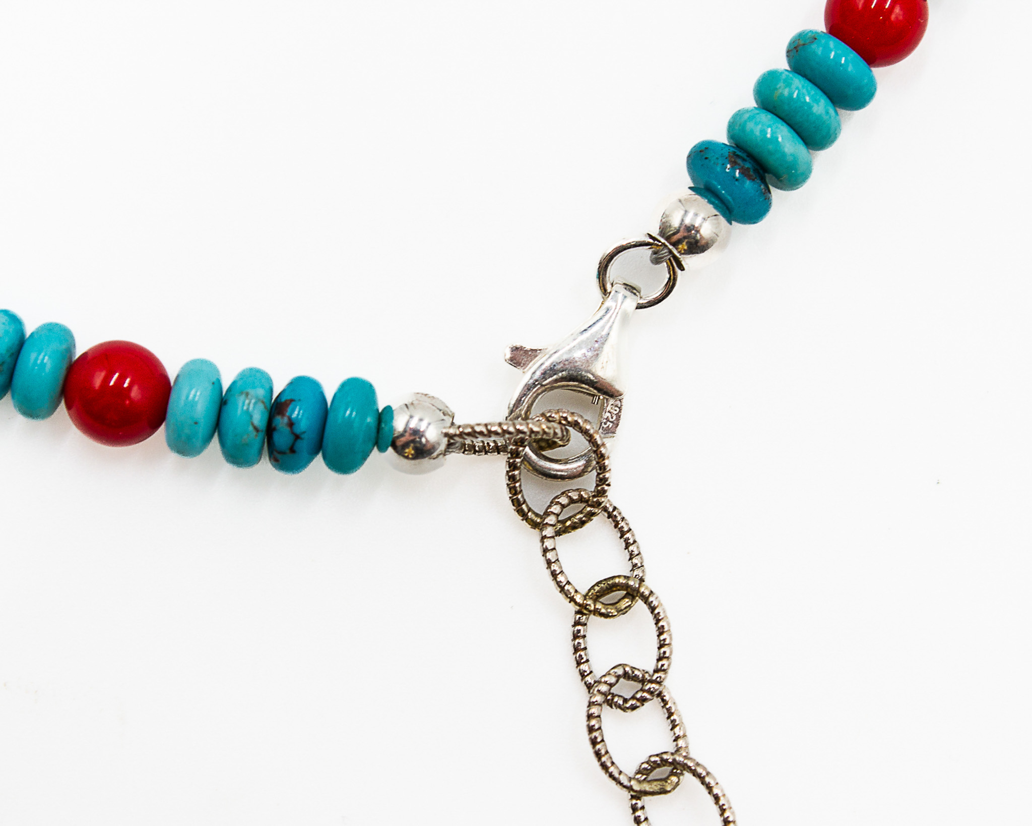 Carolyn Pollack Sincerely Southwestern Sterling Turquoise Coral Necklace, 925, 52.8g