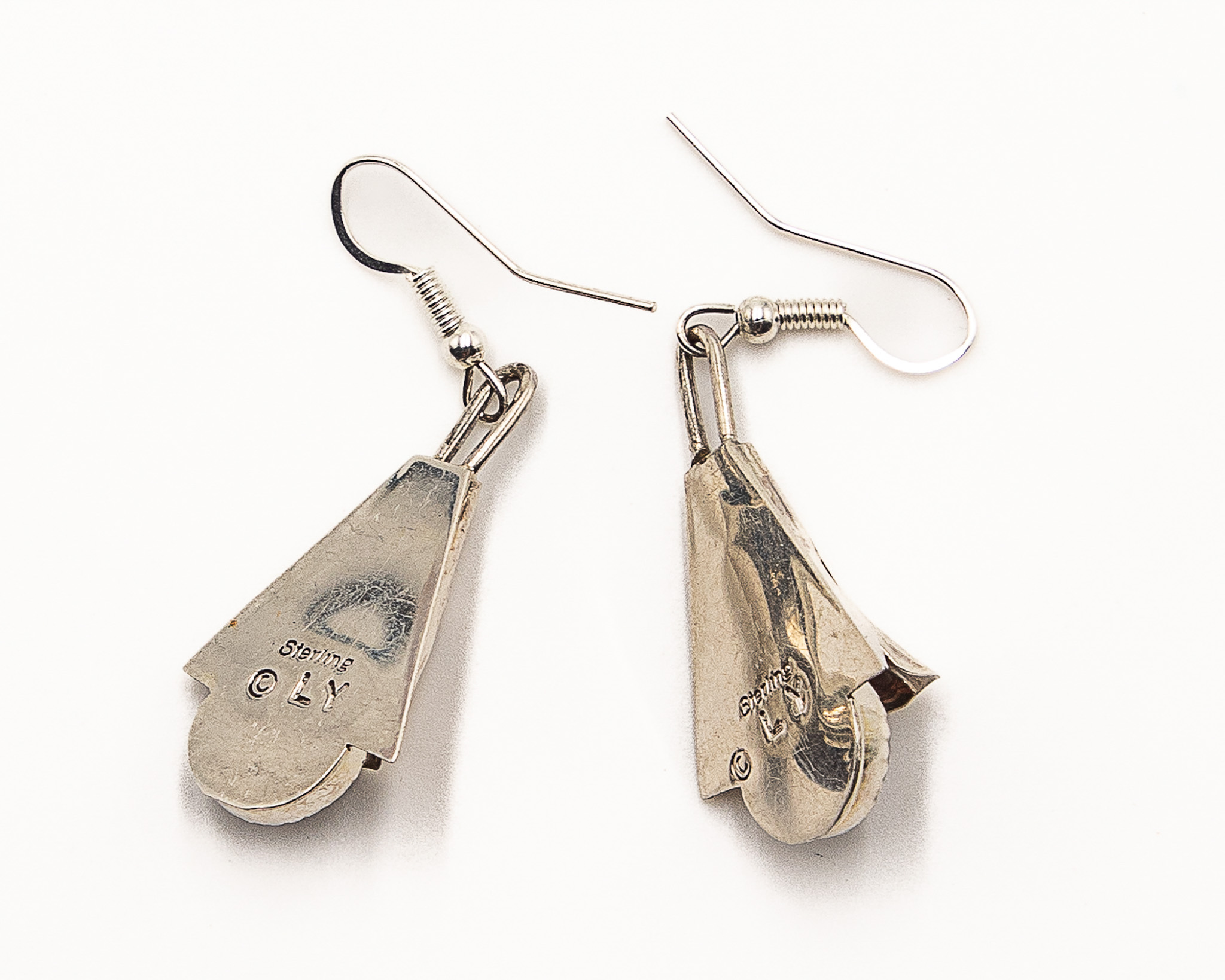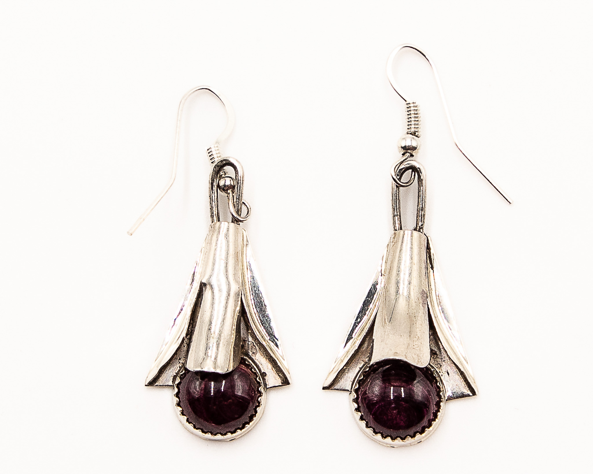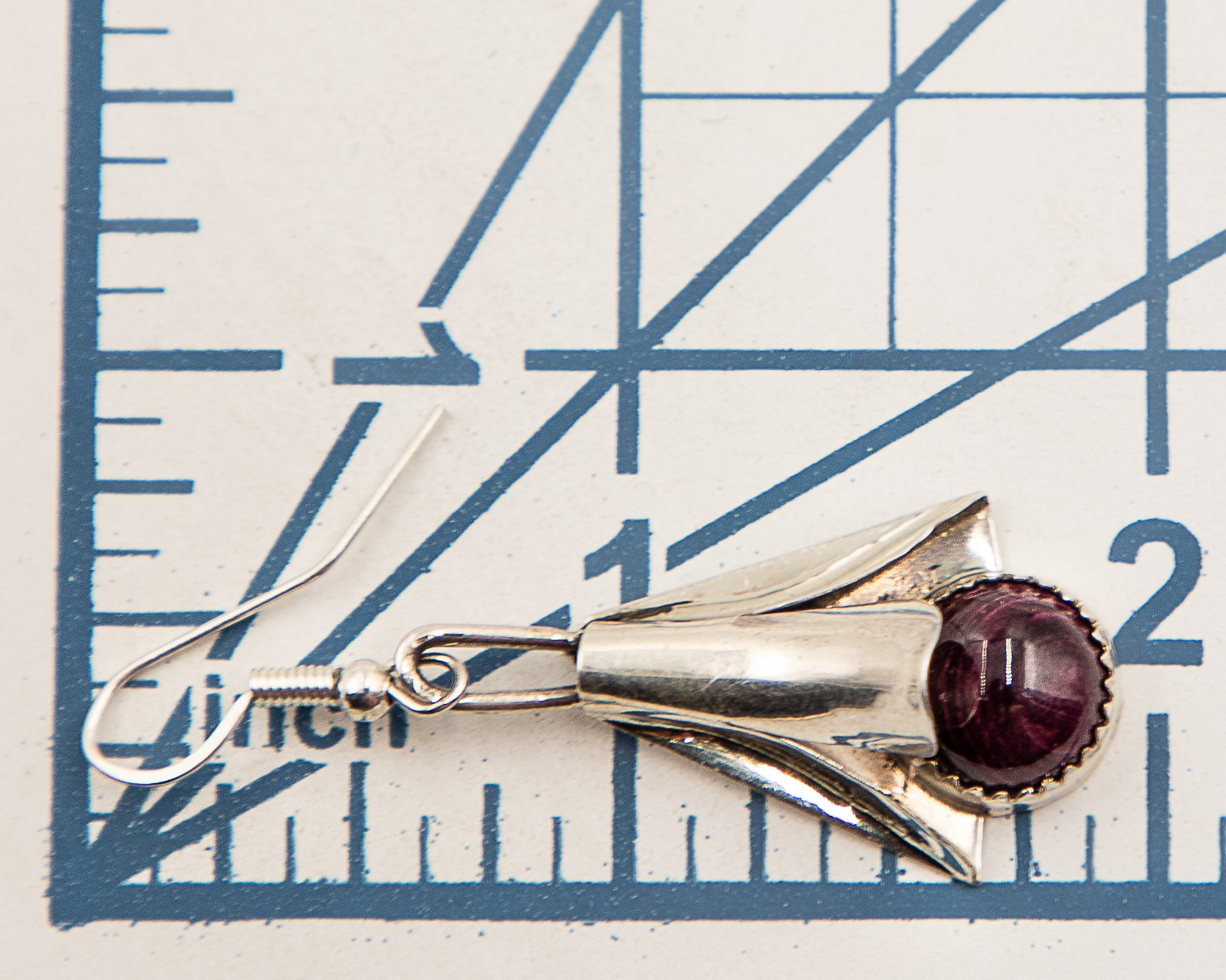 Signed LY Sterling Purple Spiny Oyster Squash Blossom Earrings Like New Condition 7g