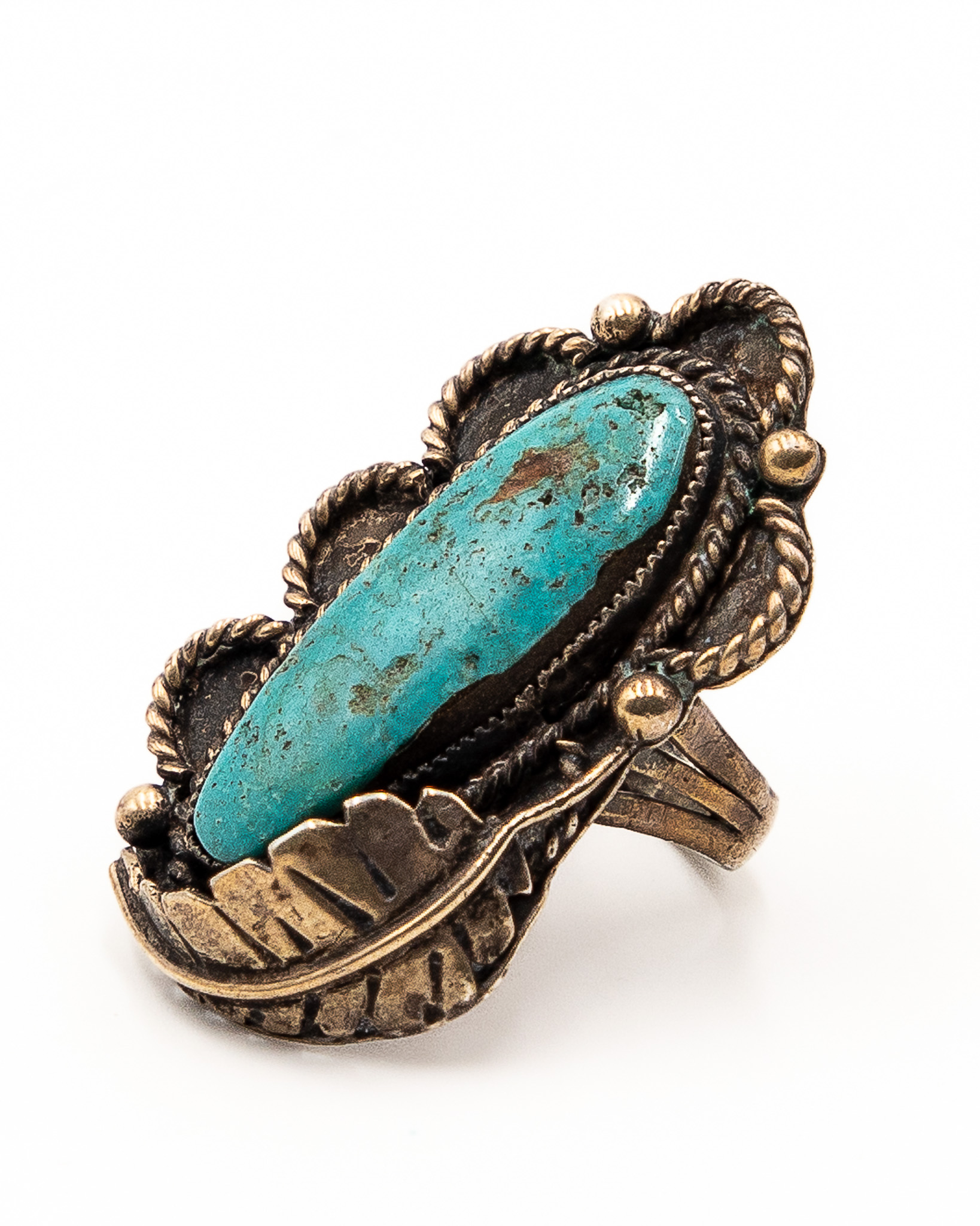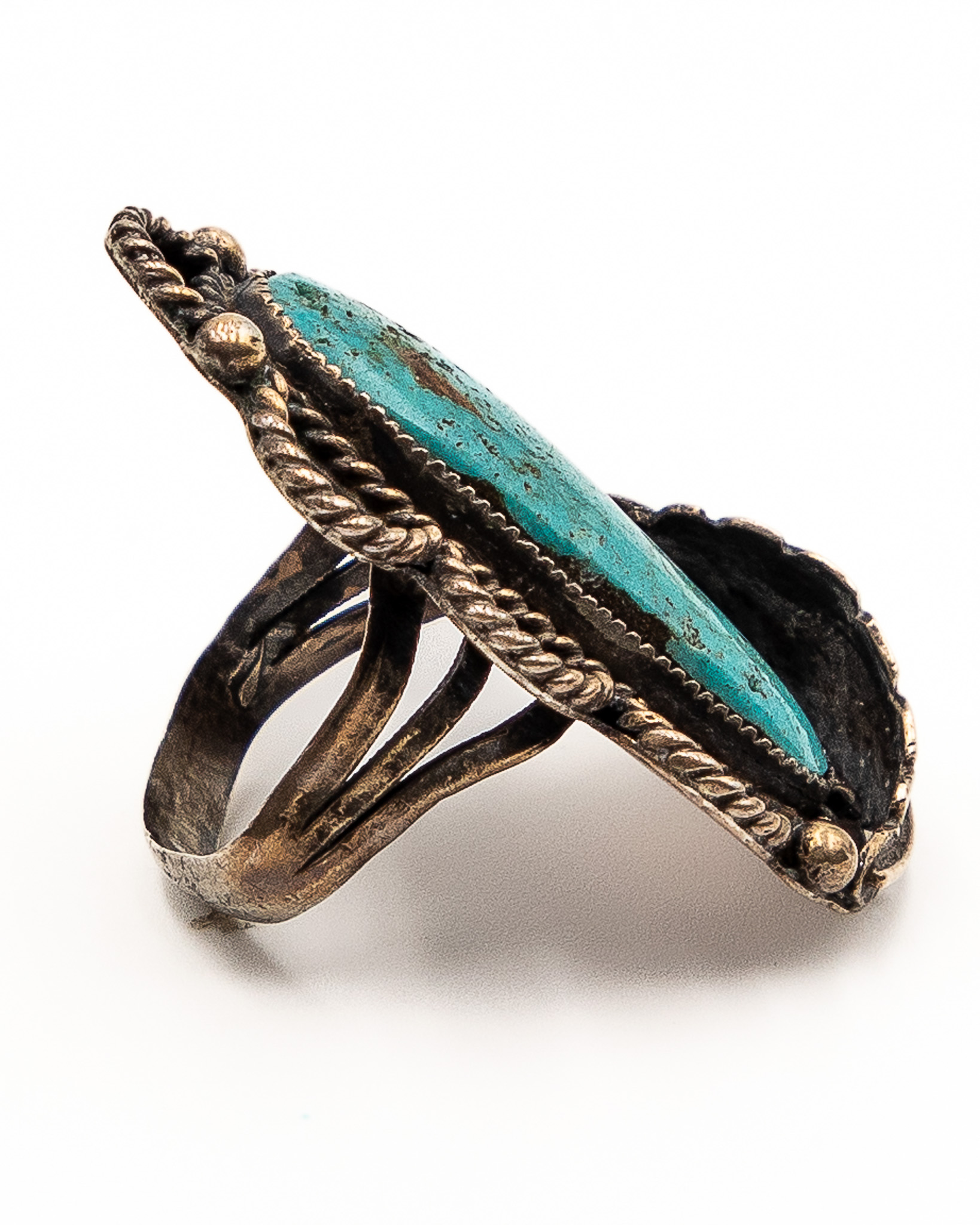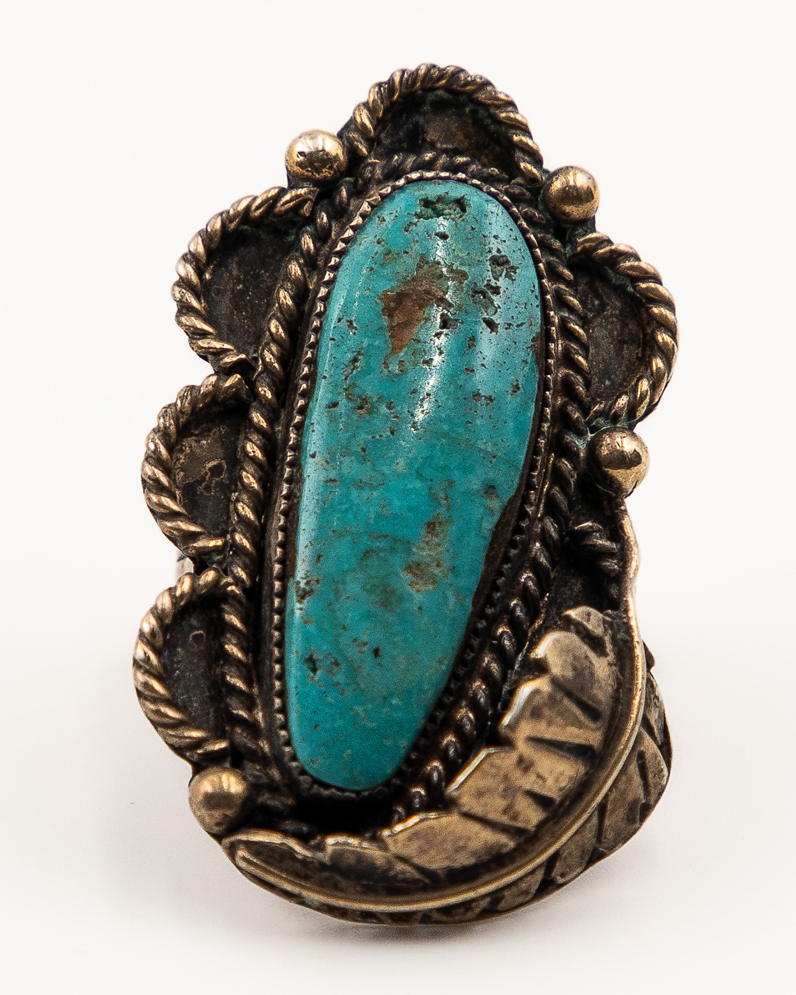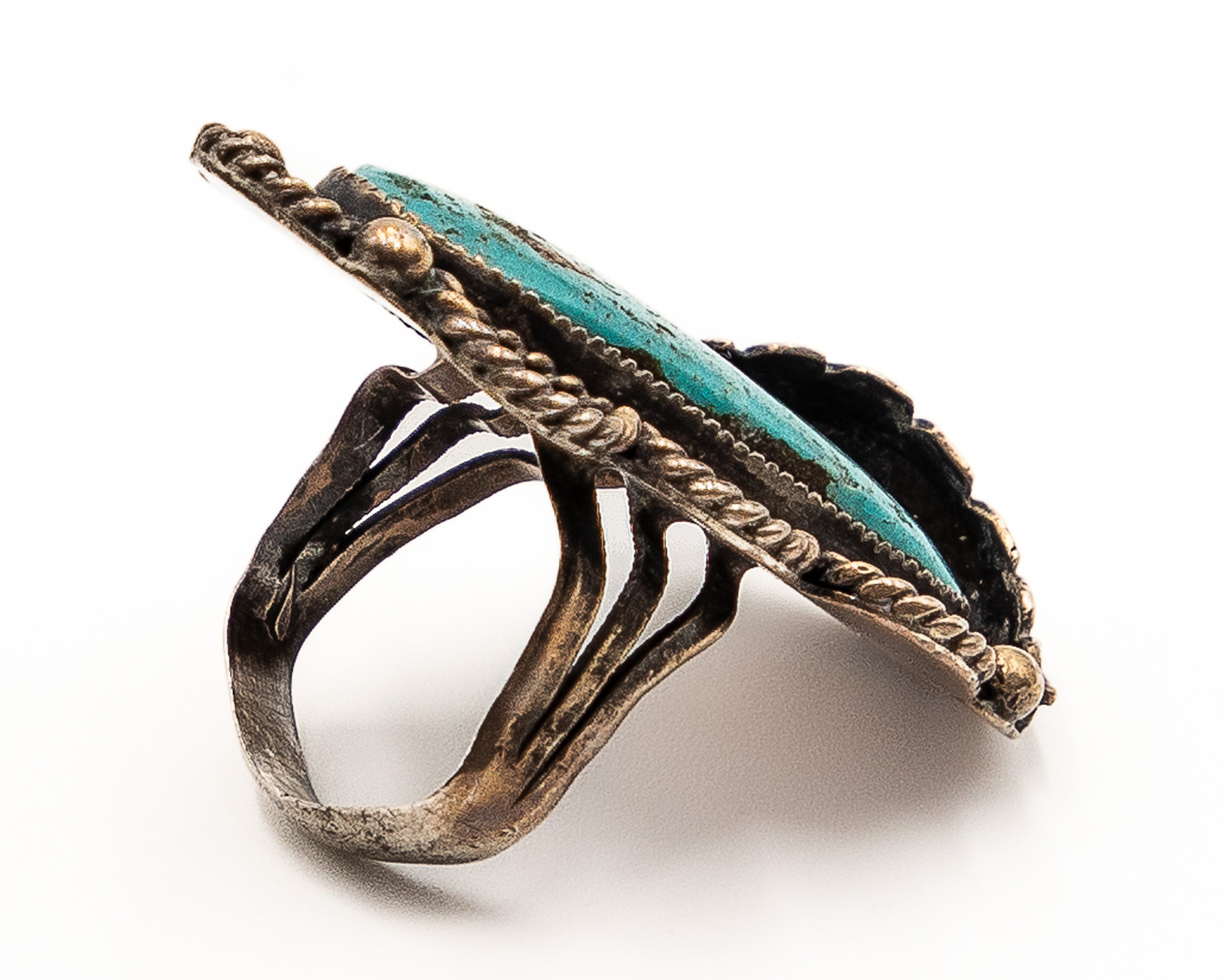 Vintage Navajo Sterling Turquoise Ring Sz. 7.5 15g-Band is bent