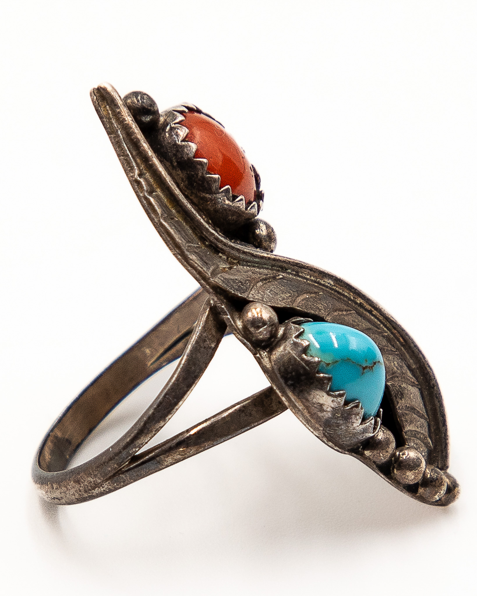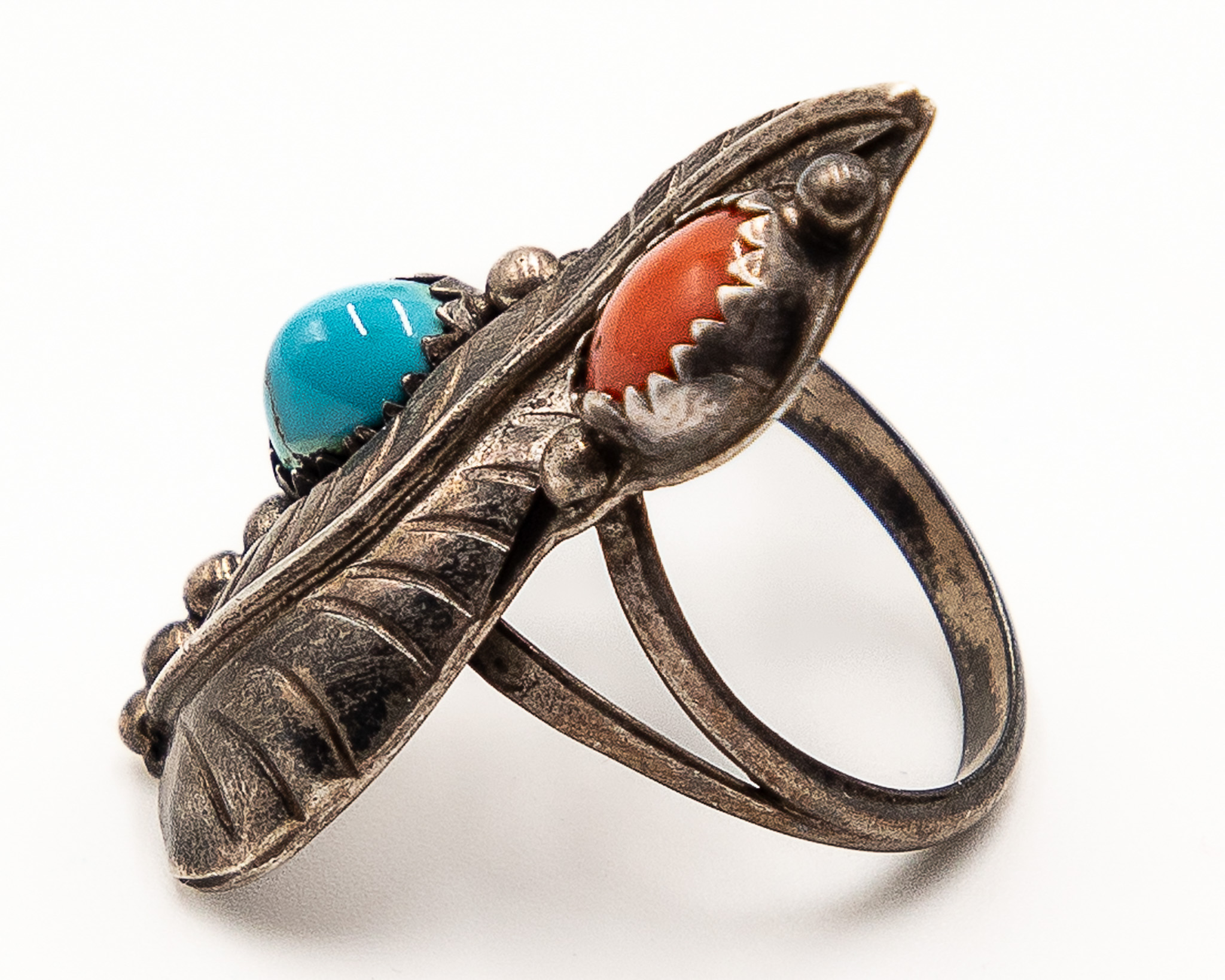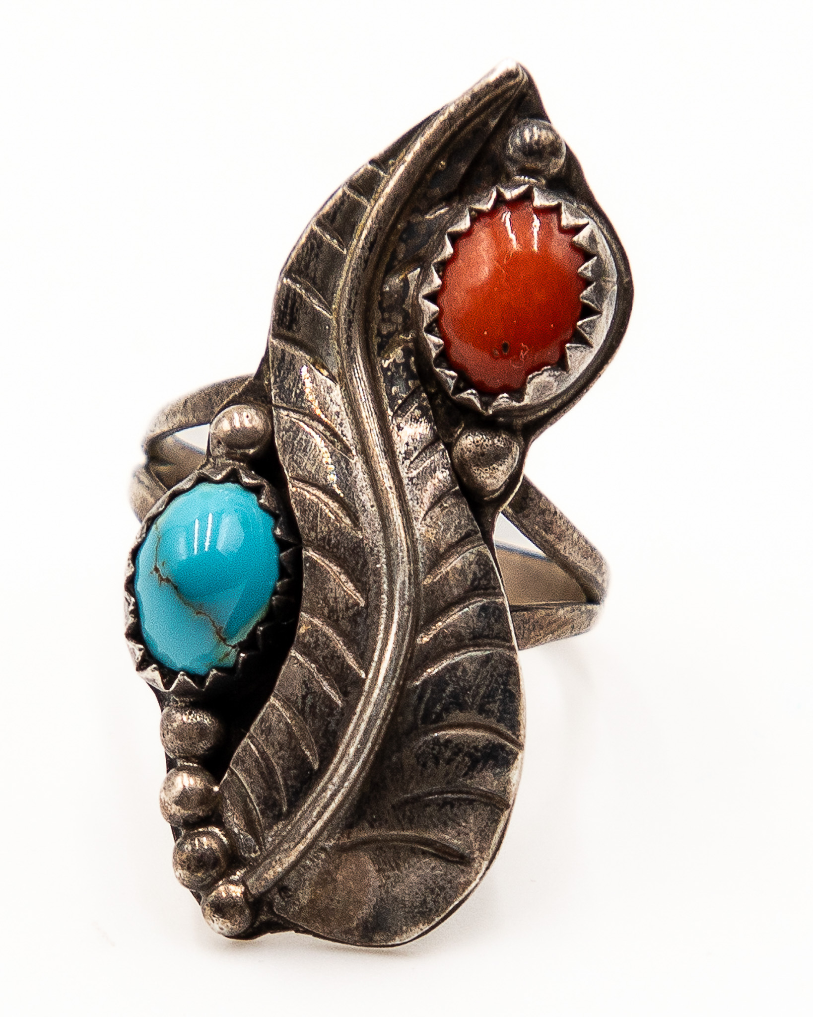 Vintage Navajo Sterling Turquoise Coral Ring Sz. 8, 6.5g