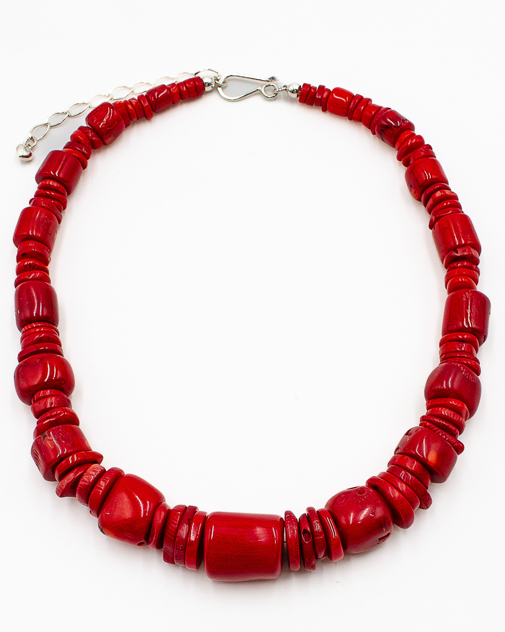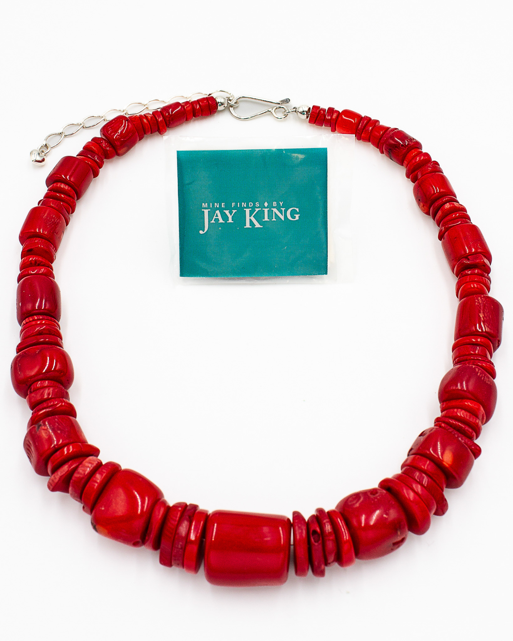 Jay King Mine Finds Sterling Coral Bead & Disk Necklace 131.6g