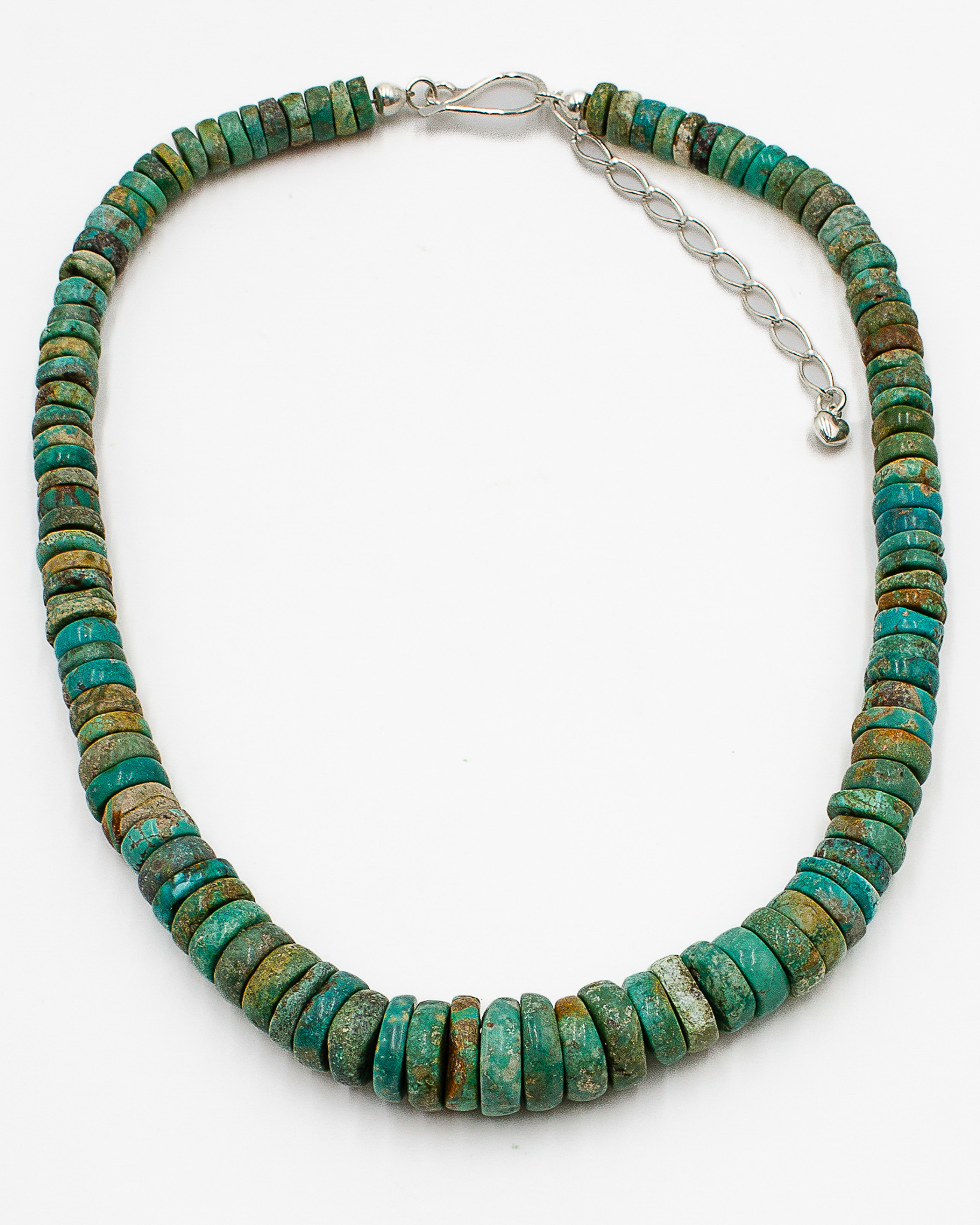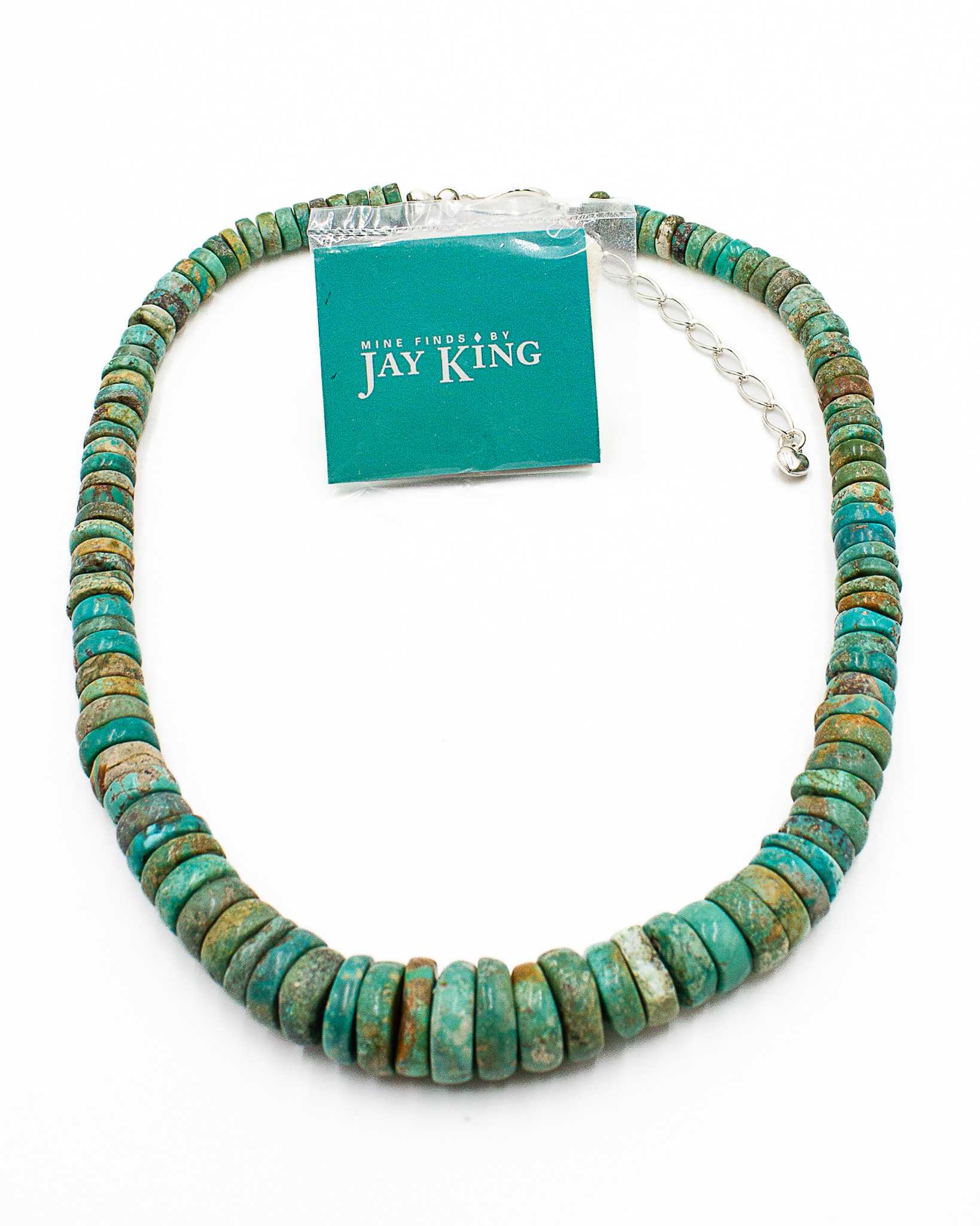 Jay King Mine Finds Graduated Turquoise Disk Sterling Necklace As Is 74.7gCracked stones shown in photo