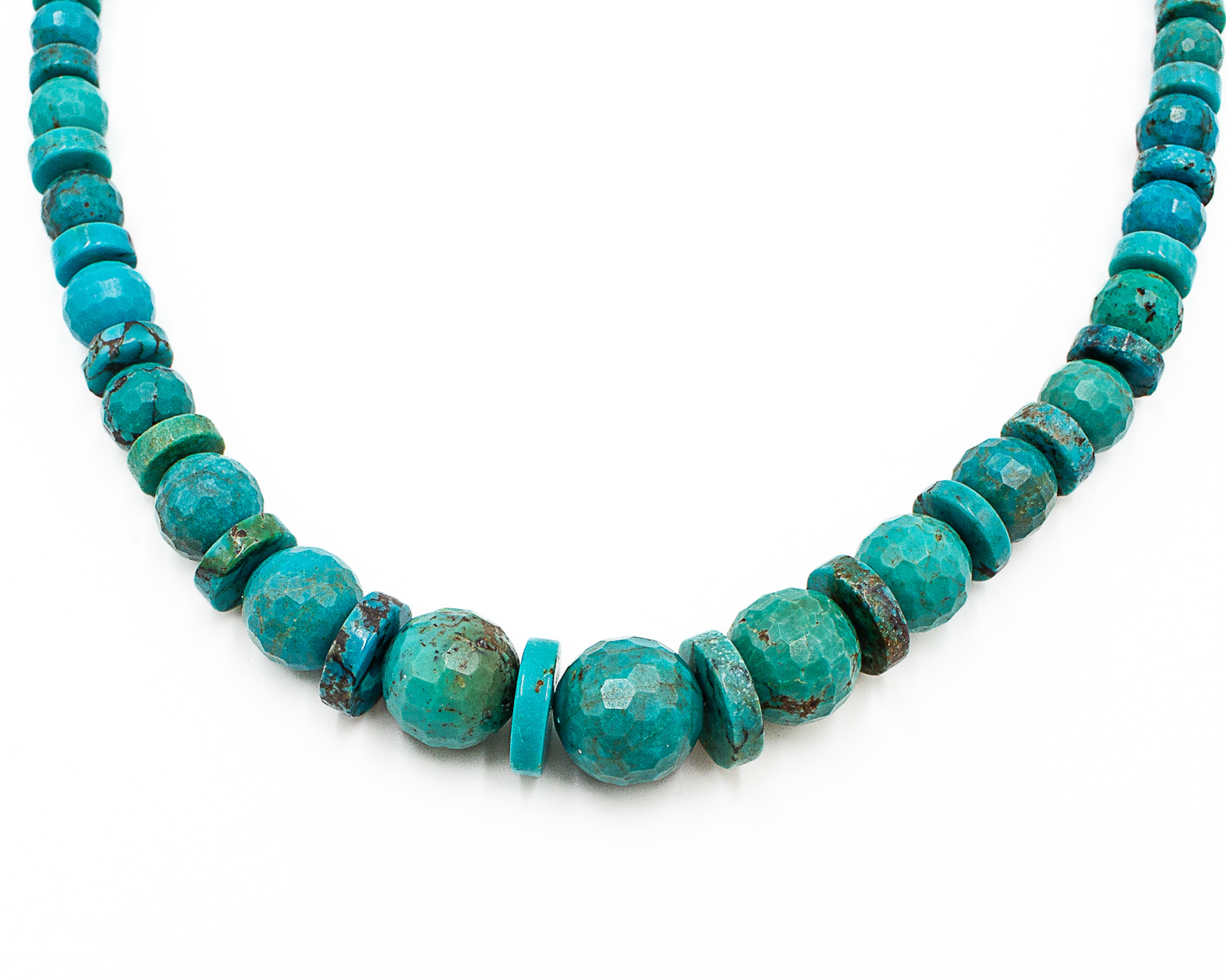 Jay King Mine Finds Sterling Graduated Faceted and Disk Turquoise Necklace 56g