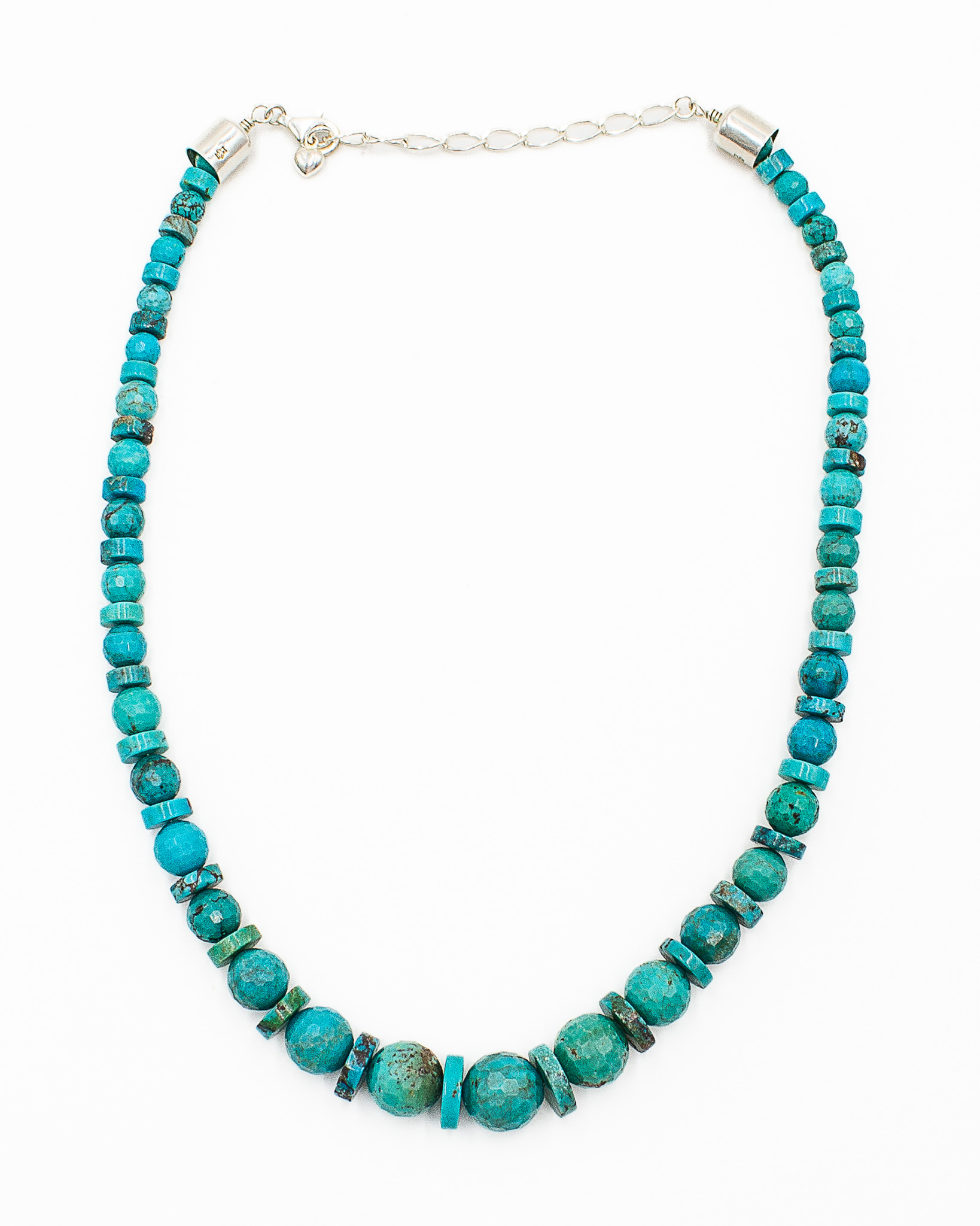 Jay King Mine Finds Sterling Graduated Faceted and Disk Turquoise Necklace