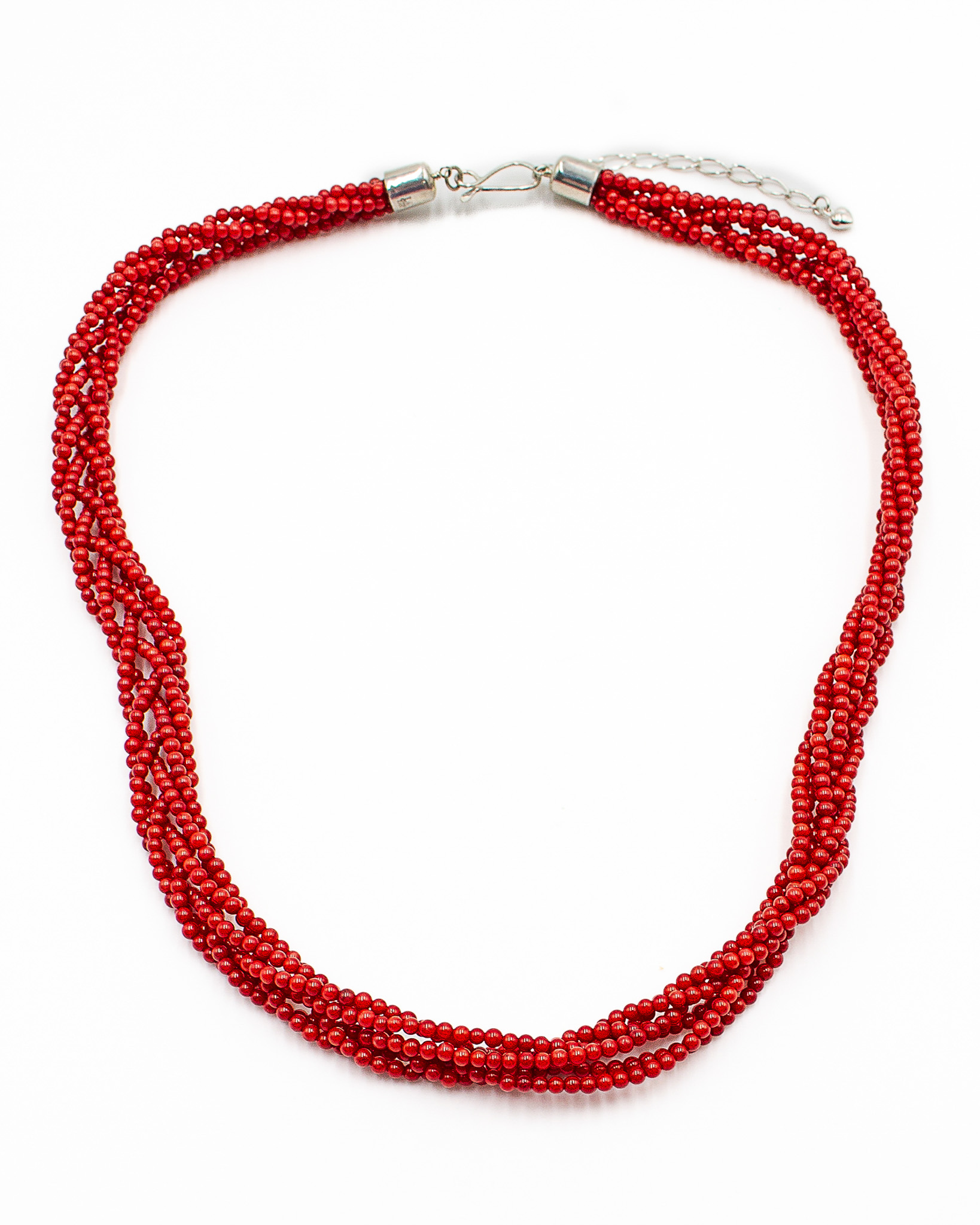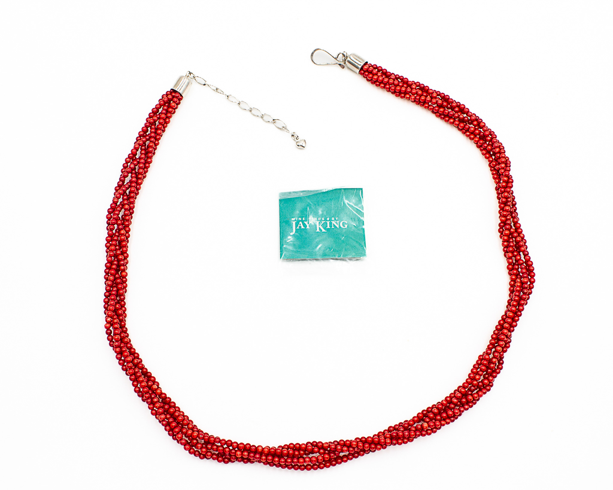Jay King Mine Finds Coral Sterling Multi Strand Braided Necklace 64.1g