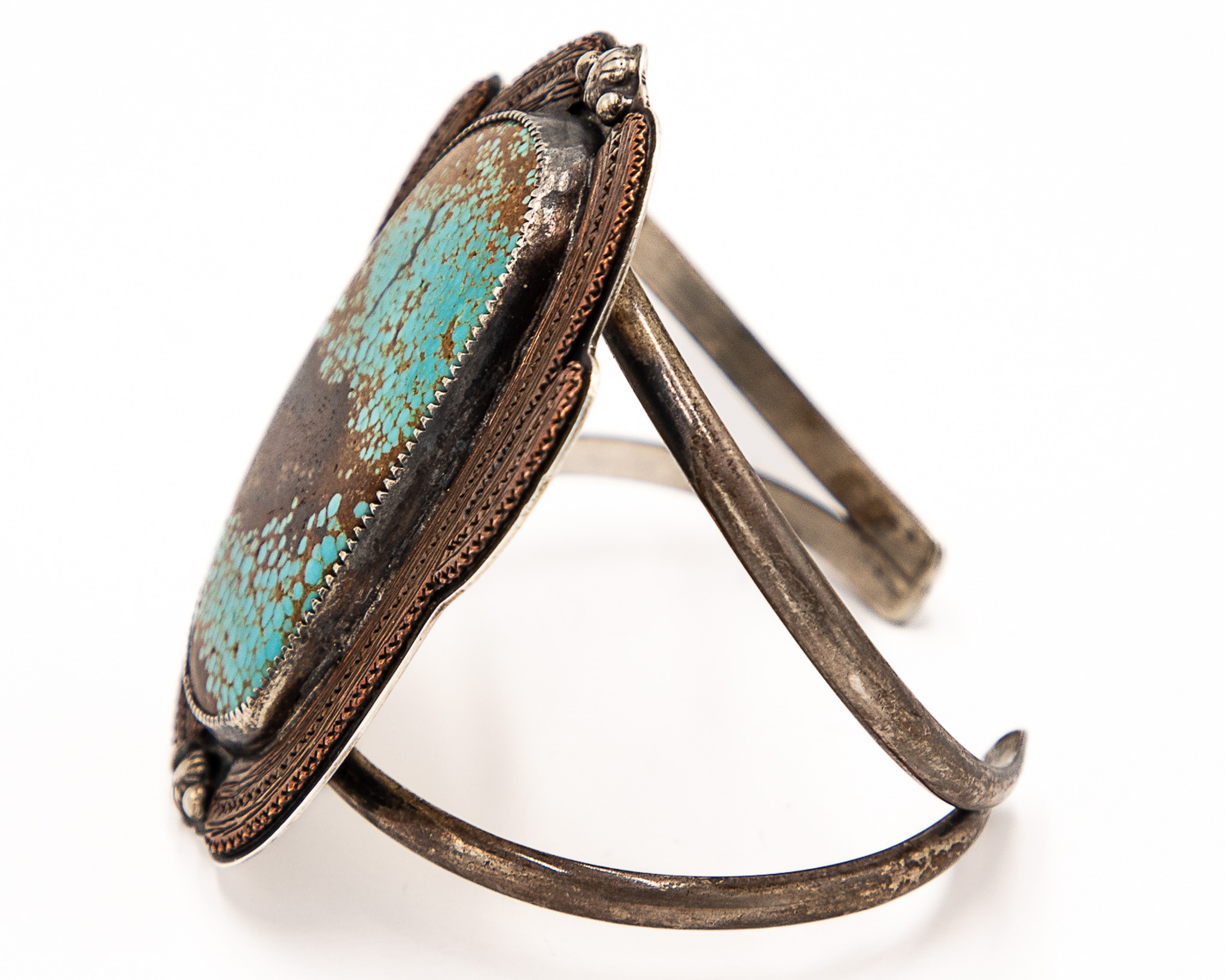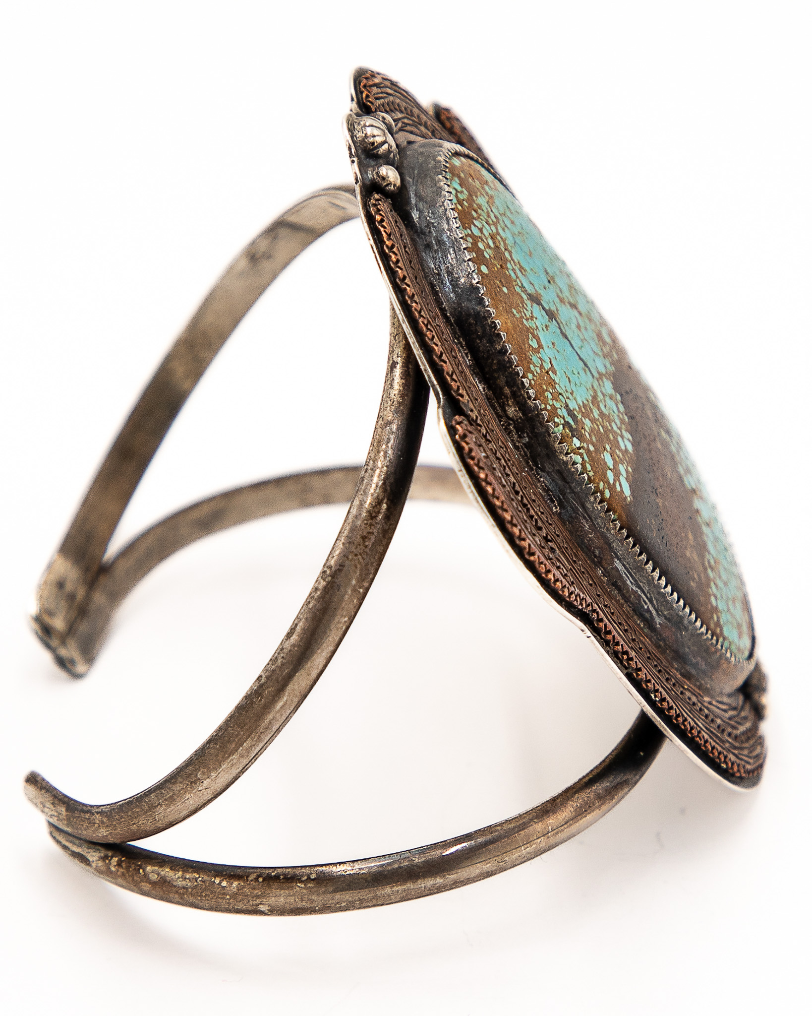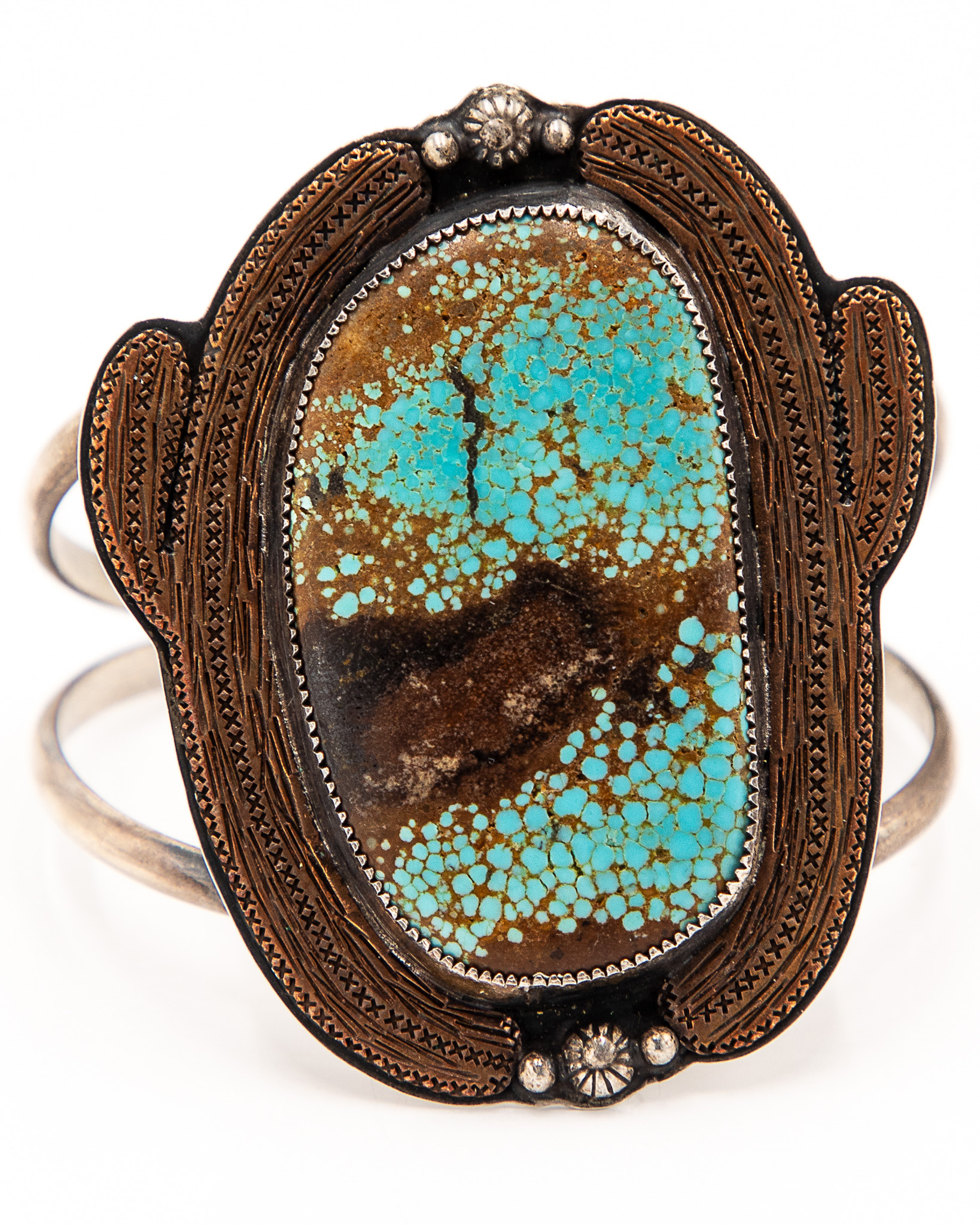 Little Halo Bird Sterling Copper Turquoise Cuff Bracelet 61g