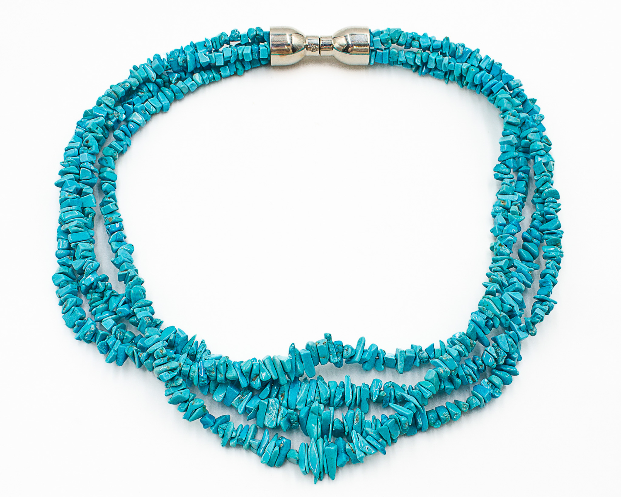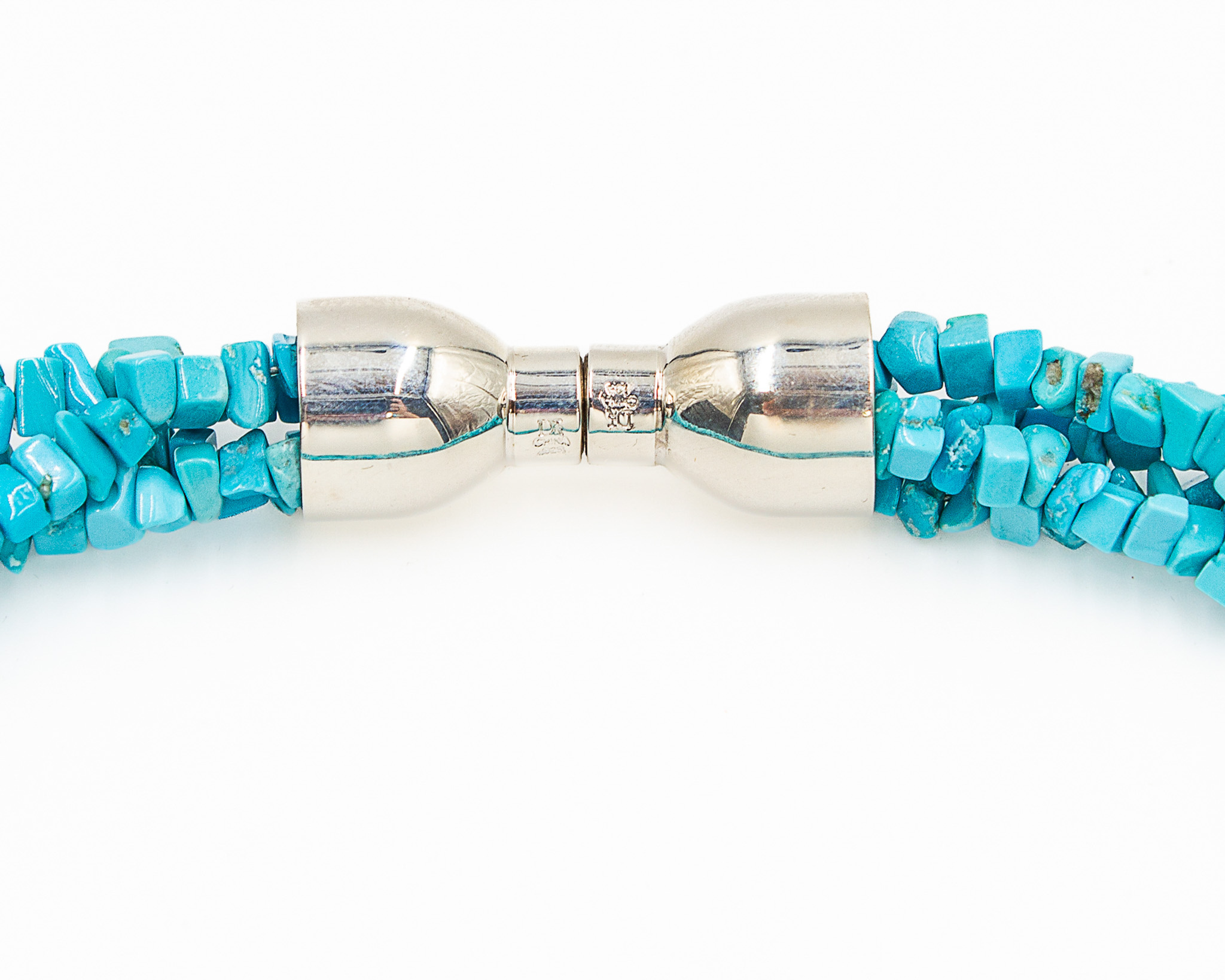 Jay King Mine Finds Mini Chunk Turquoise Sterling 4 Strand Magnetic Necklace