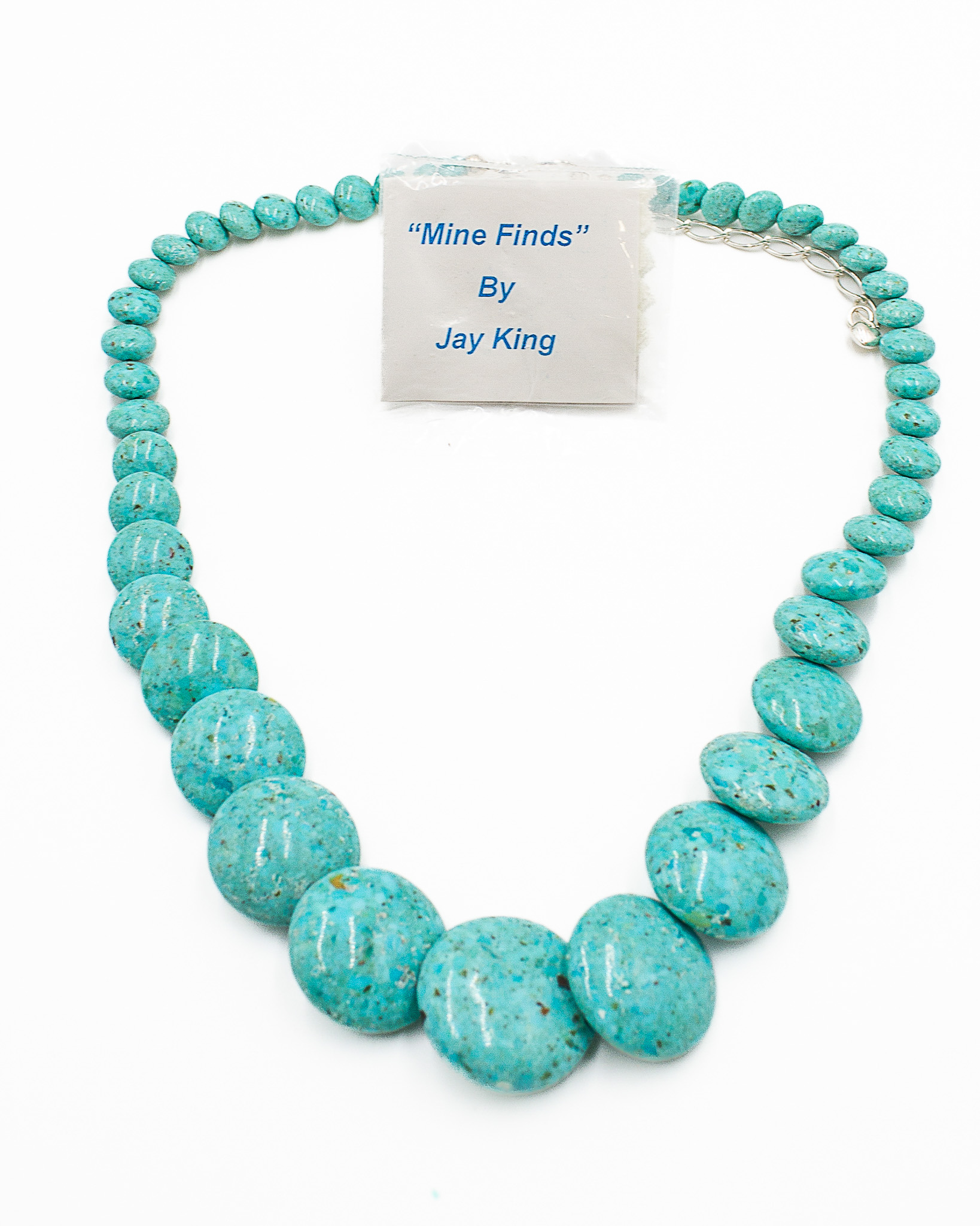 Jay King Mine Finds Graduated Round Disk Turquoise Sterling Necklace 71.2g