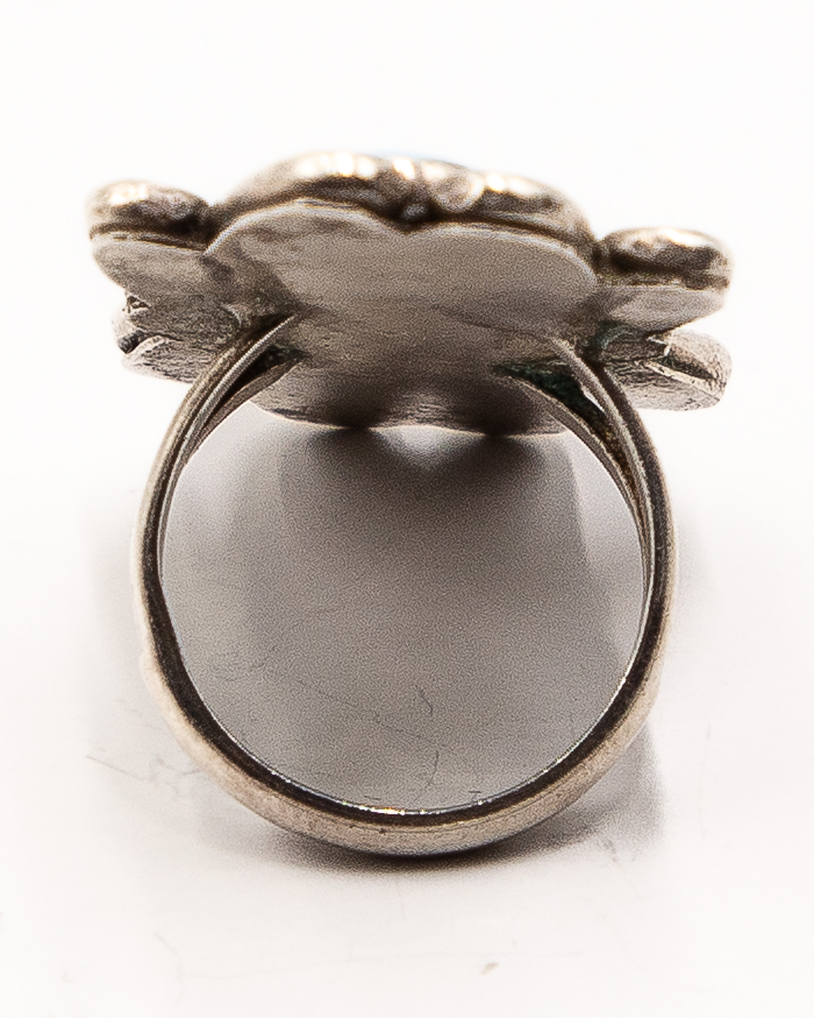 Vintage NavajoTurquoise Mother Of Pearl Jet Inlay Ring Sz. 7.5