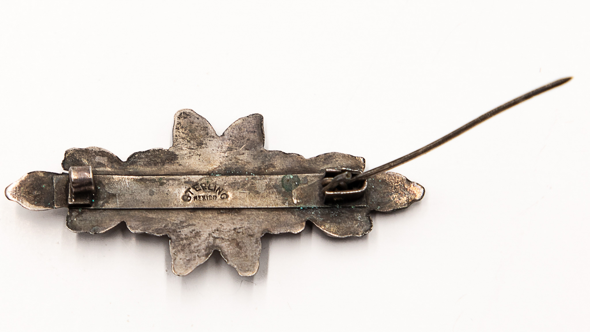 Mid Century Sterling Mexico Floral Brooch Pin 5g