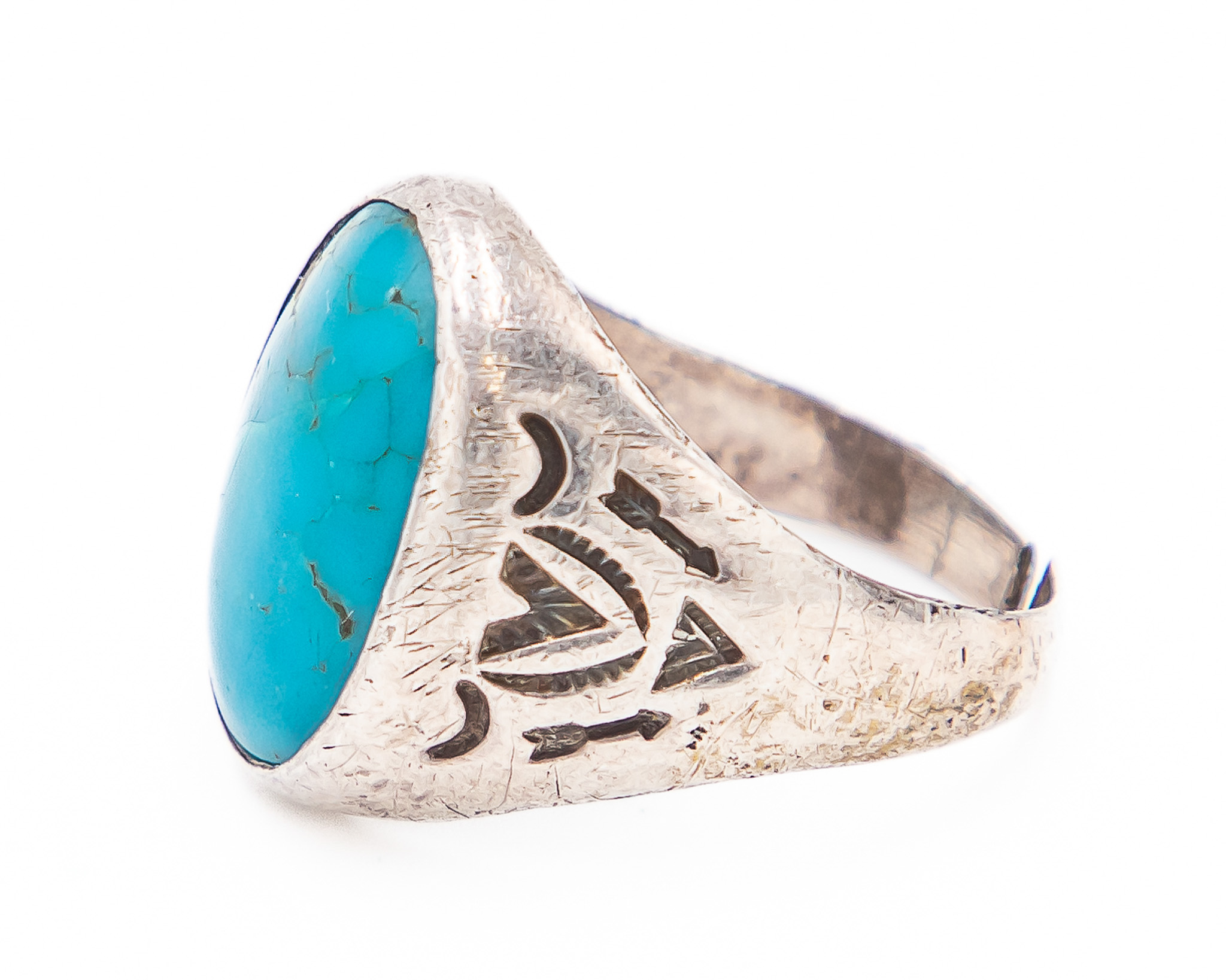 Vintage Bell Trading Post Sterling Turquoise Ring Sz. 10.5 As Is