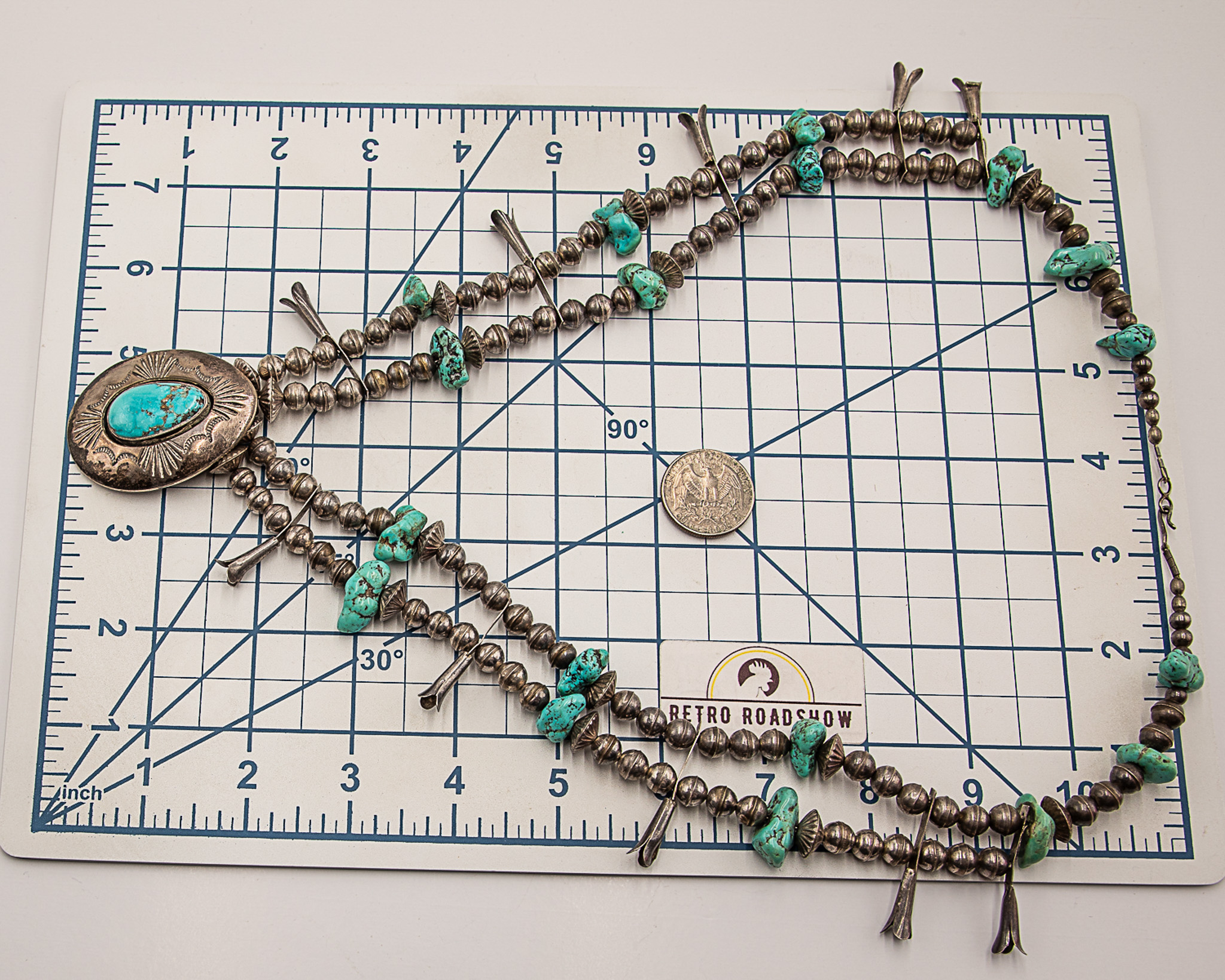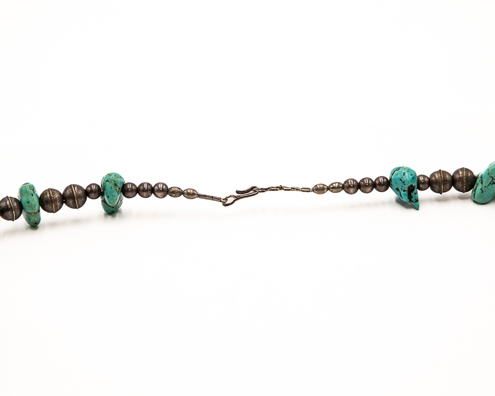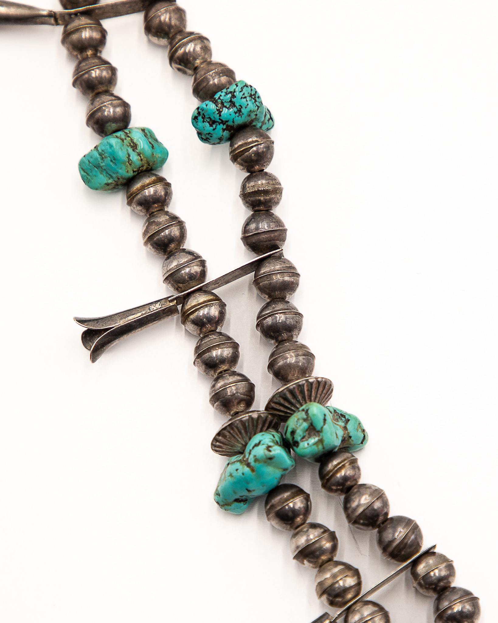 Signed GK Navajo Sterling Chunk Turquoise Squash Blossom Necklace 100g