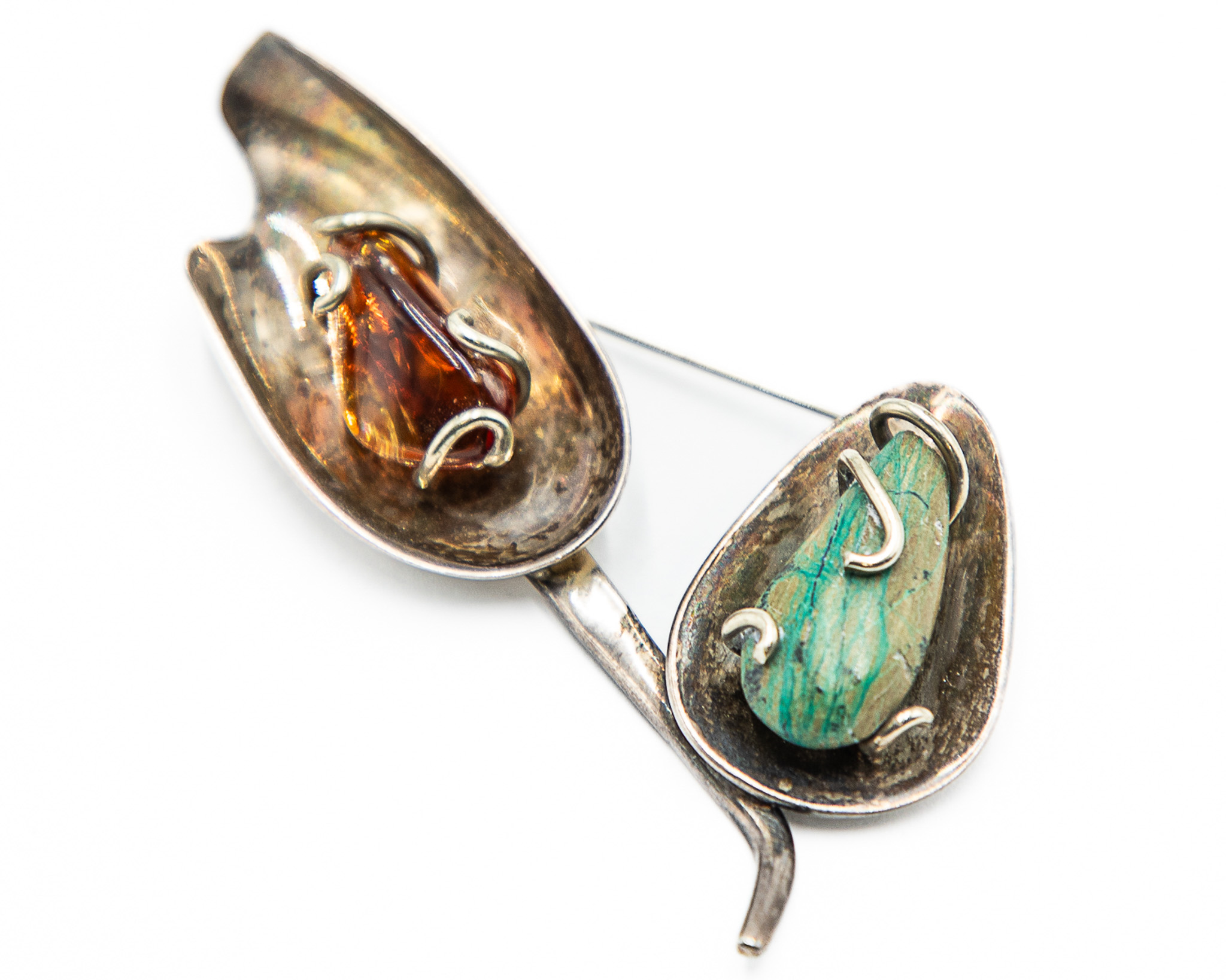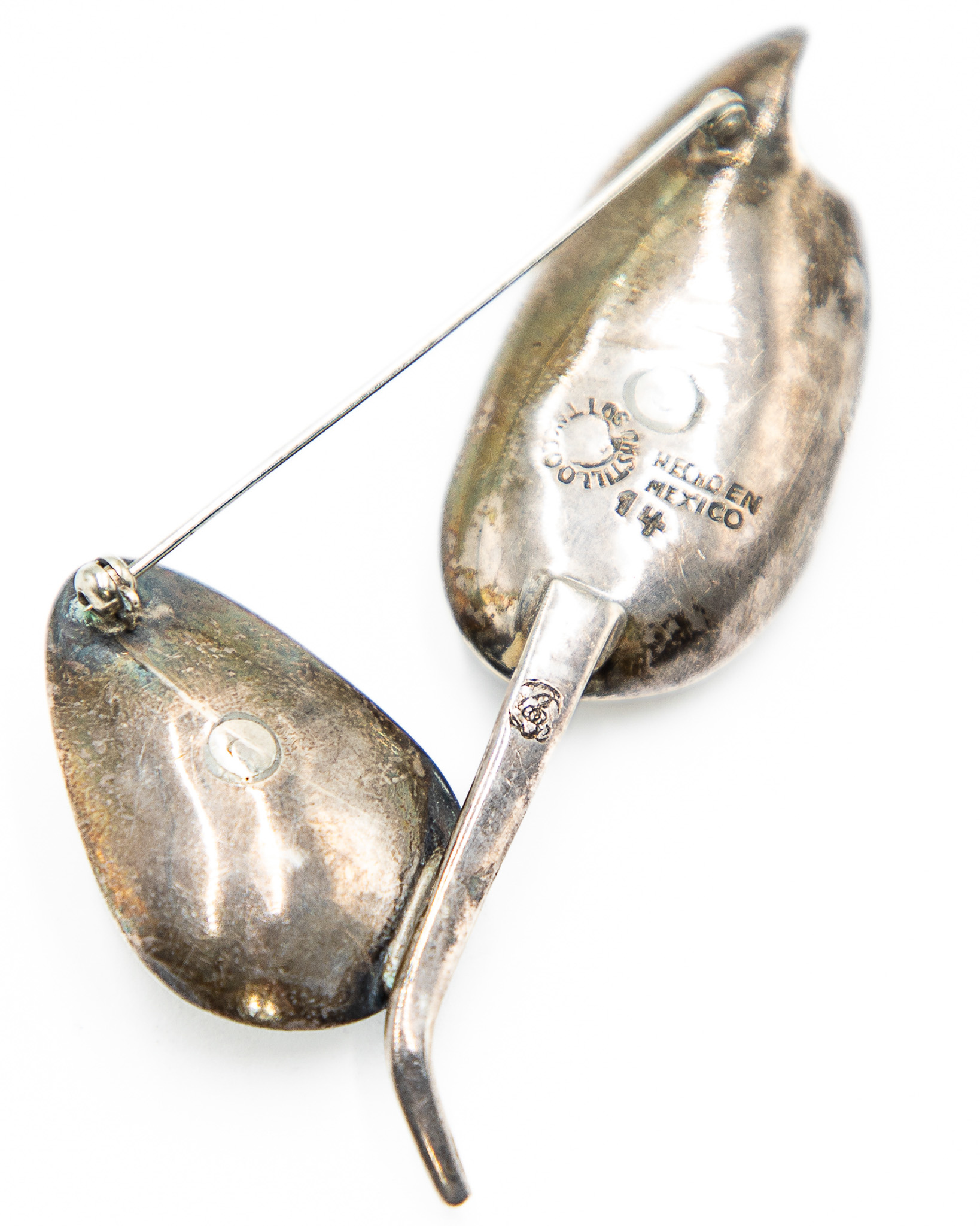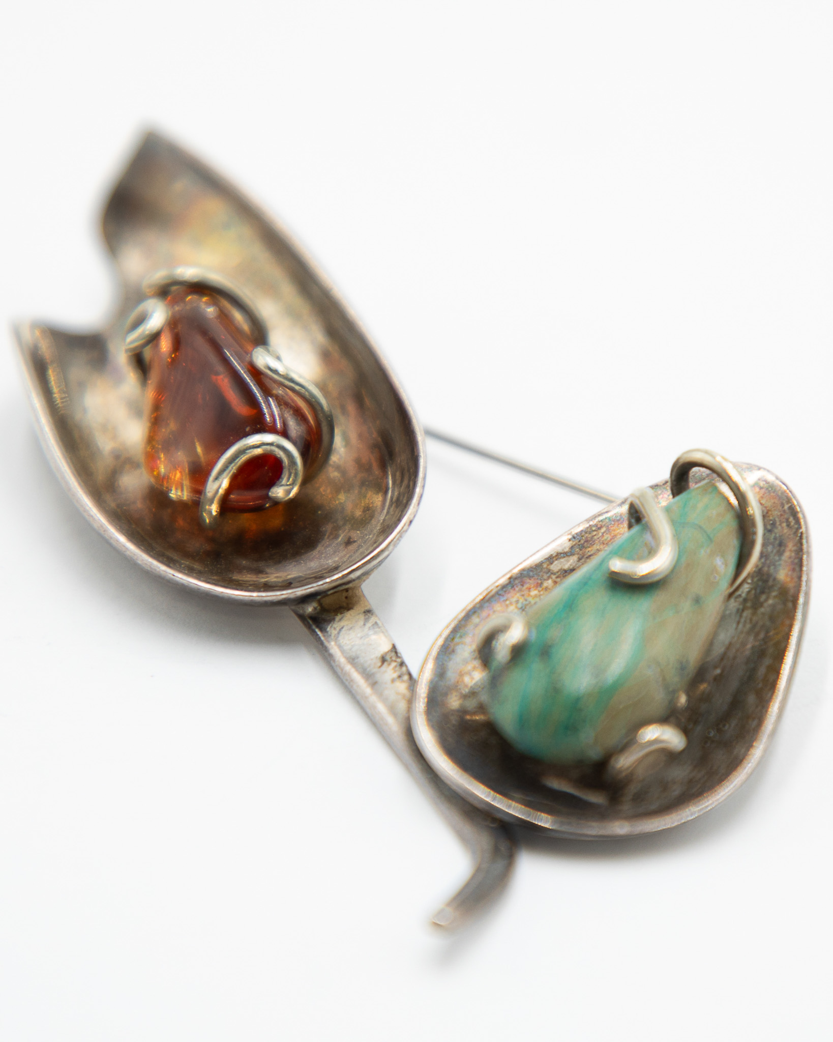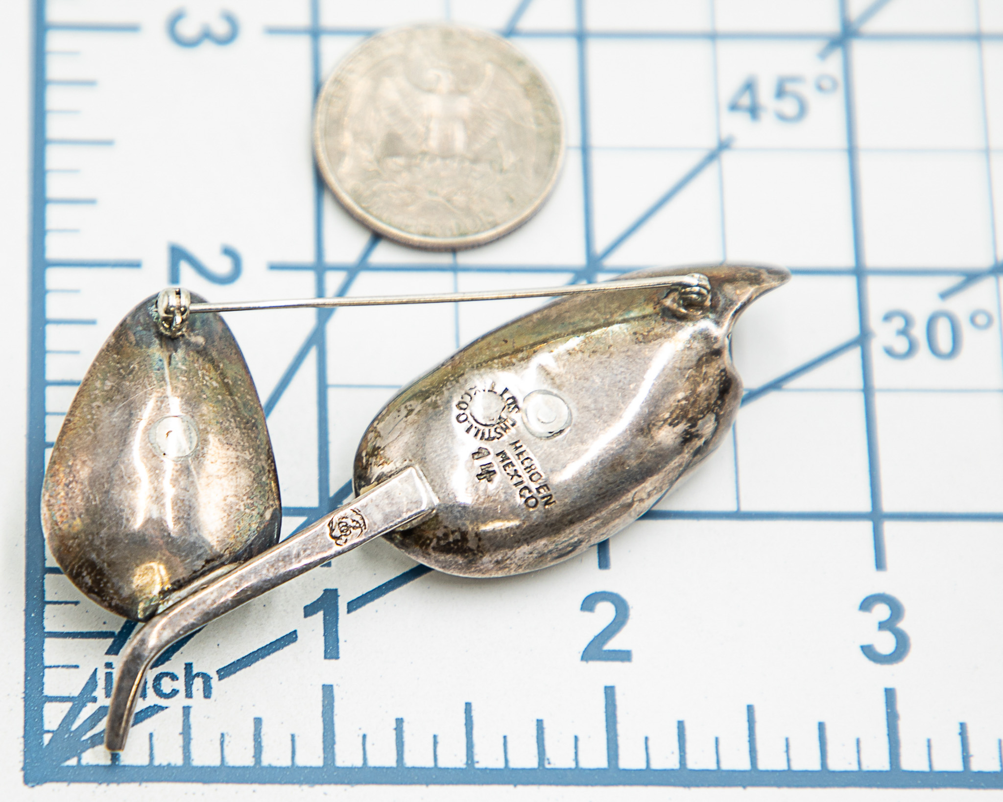 Los Castillo Taxco Mexico Amber Flower Turquoise Leaf Brooch Pin 26g-14 Stamp-Eagle #3 Stamp