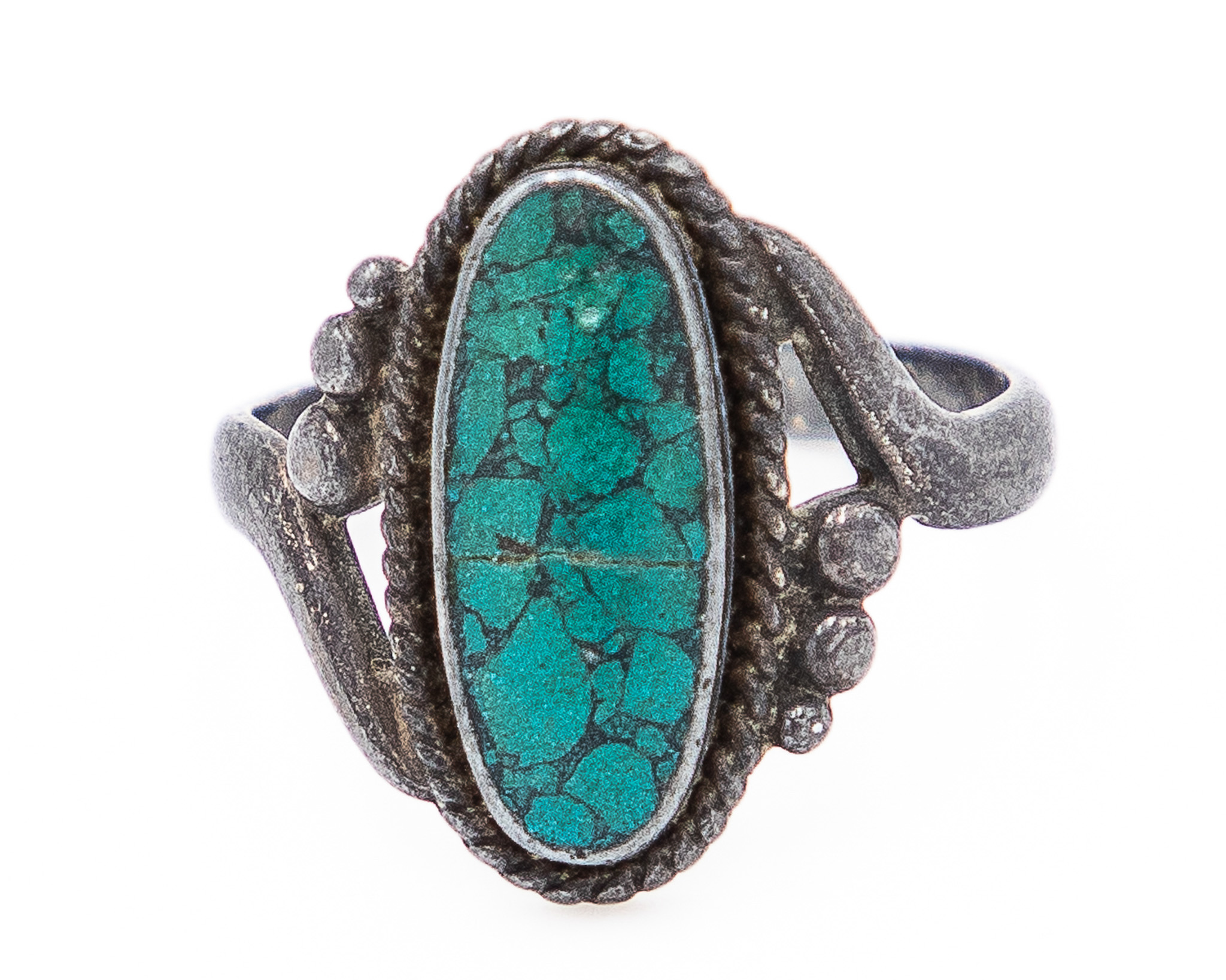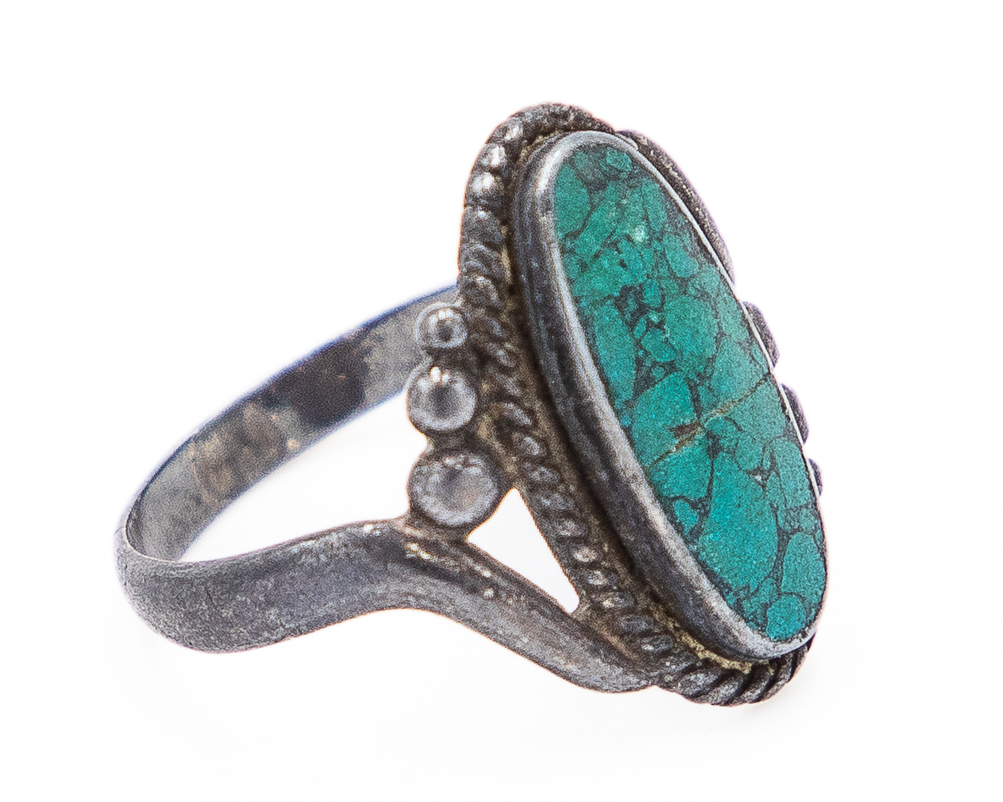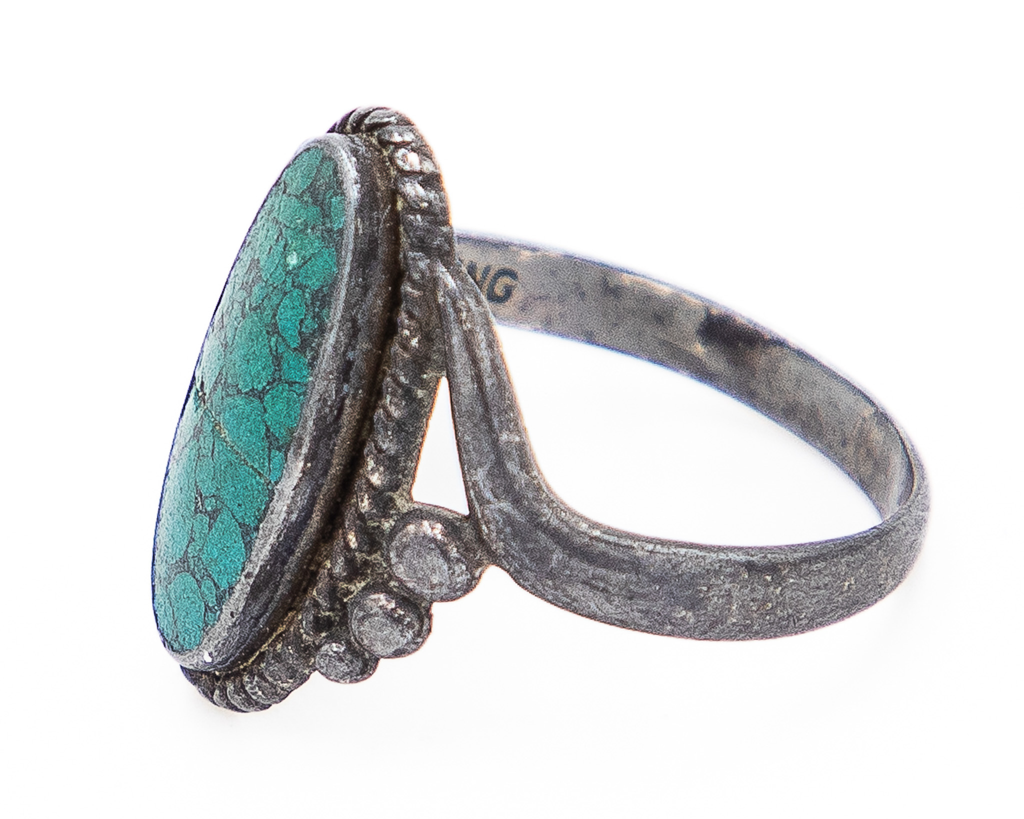 Vintage Navajo Sterling Green Turquoise Ring Sz. 8.5 As Is- crack in stone as shown in photos, 4.2g