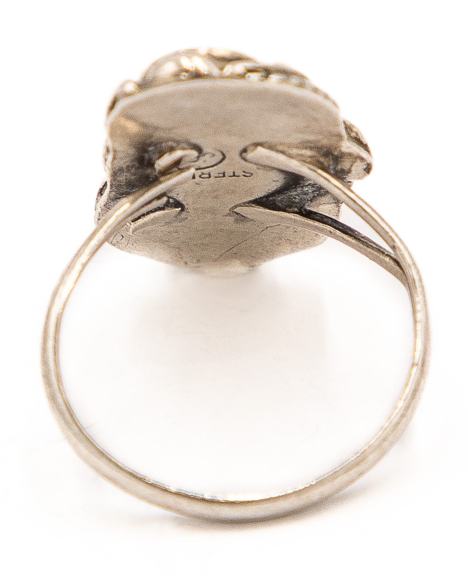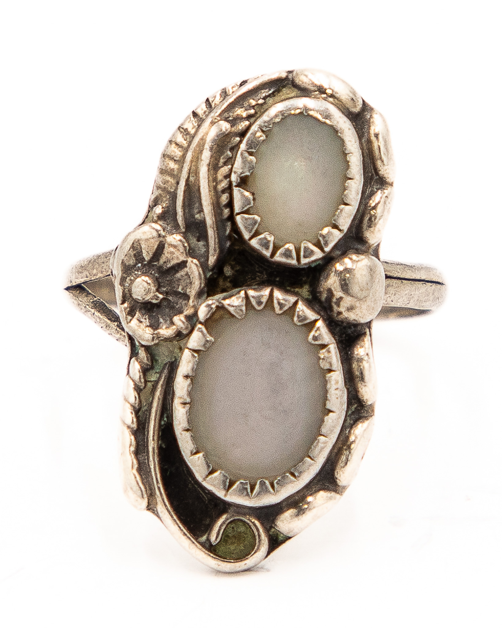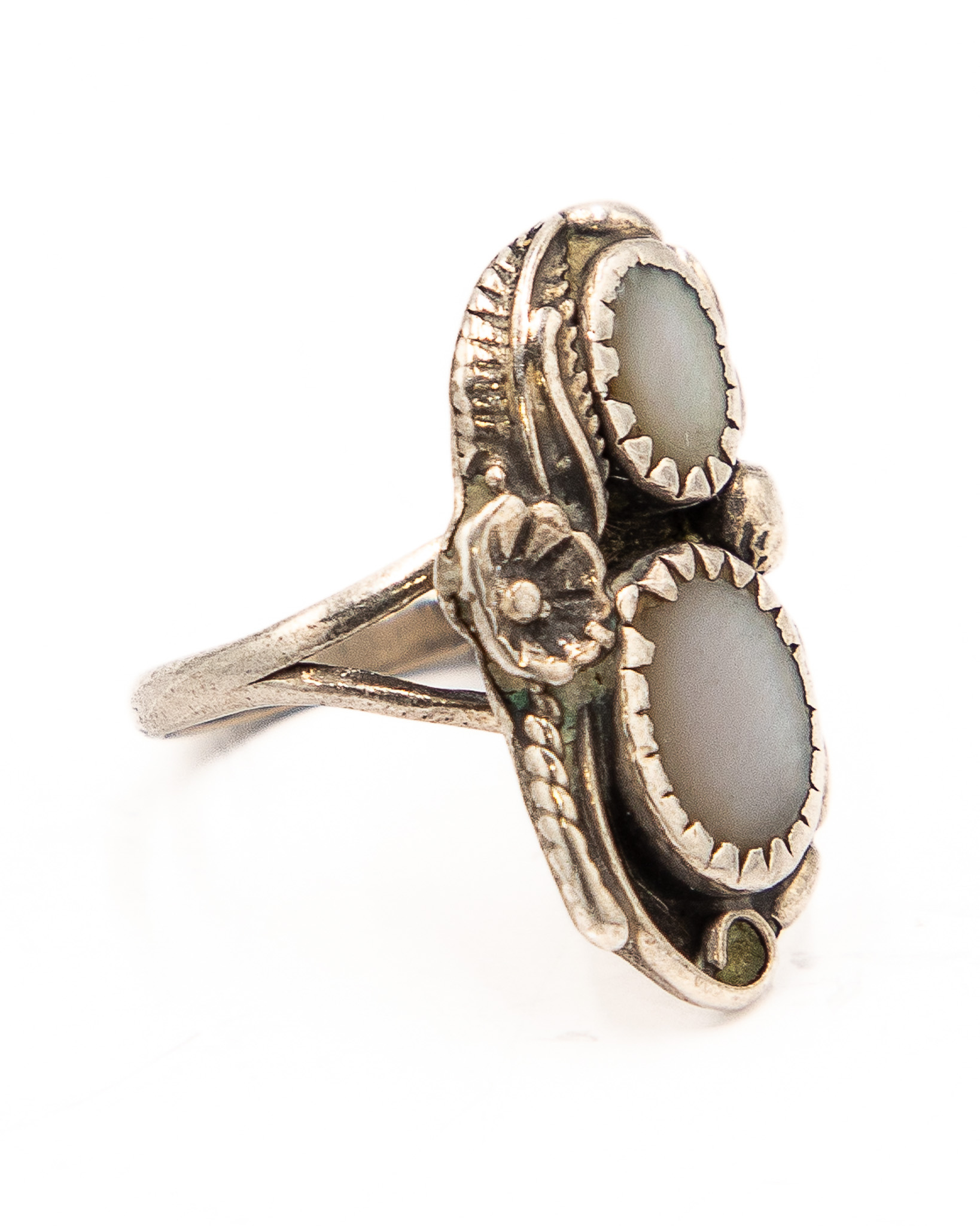 Signed Navajo Sterling Mother Of Pearl Sz. 4, 3g-Signature Covered by ring band